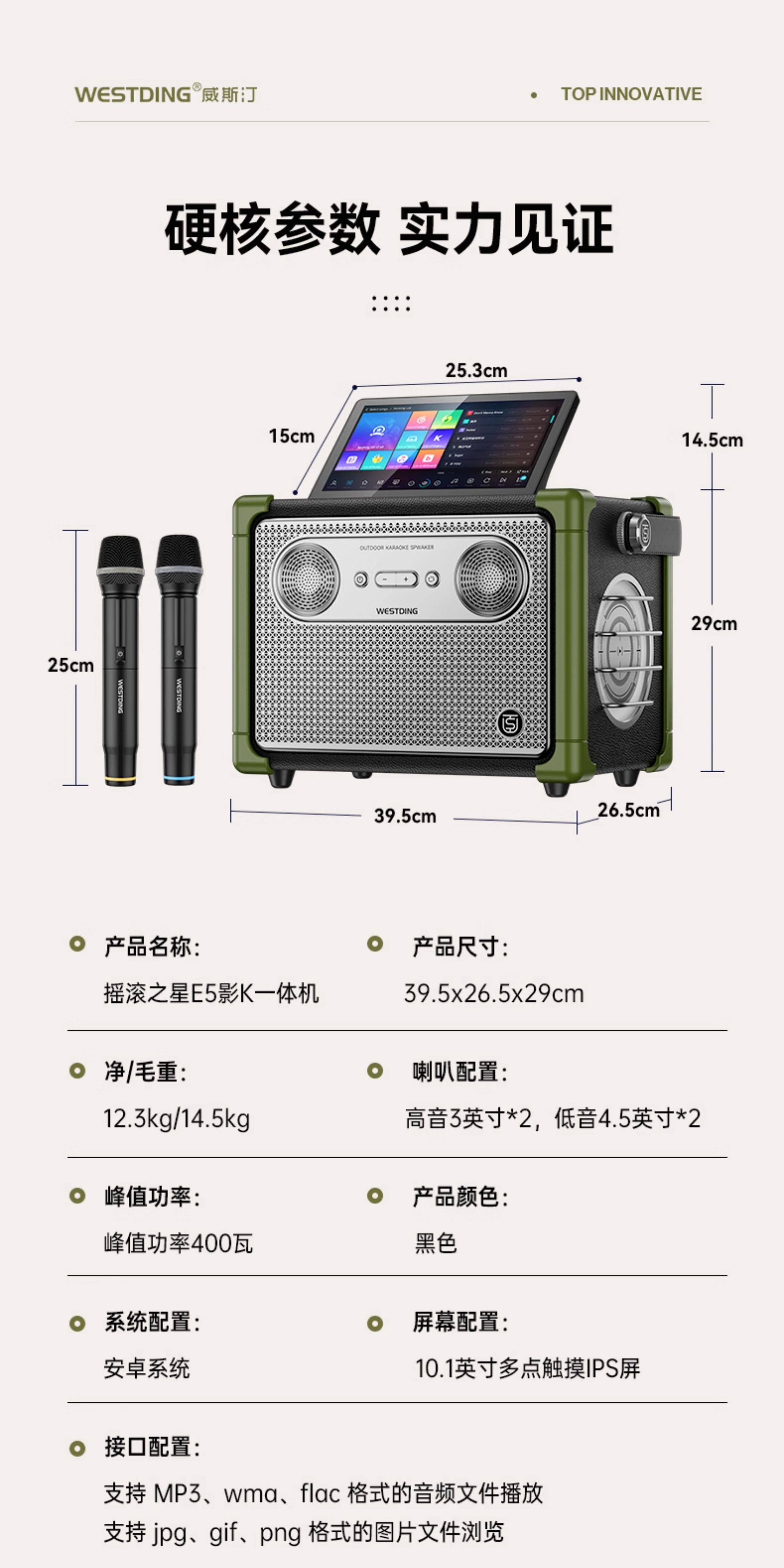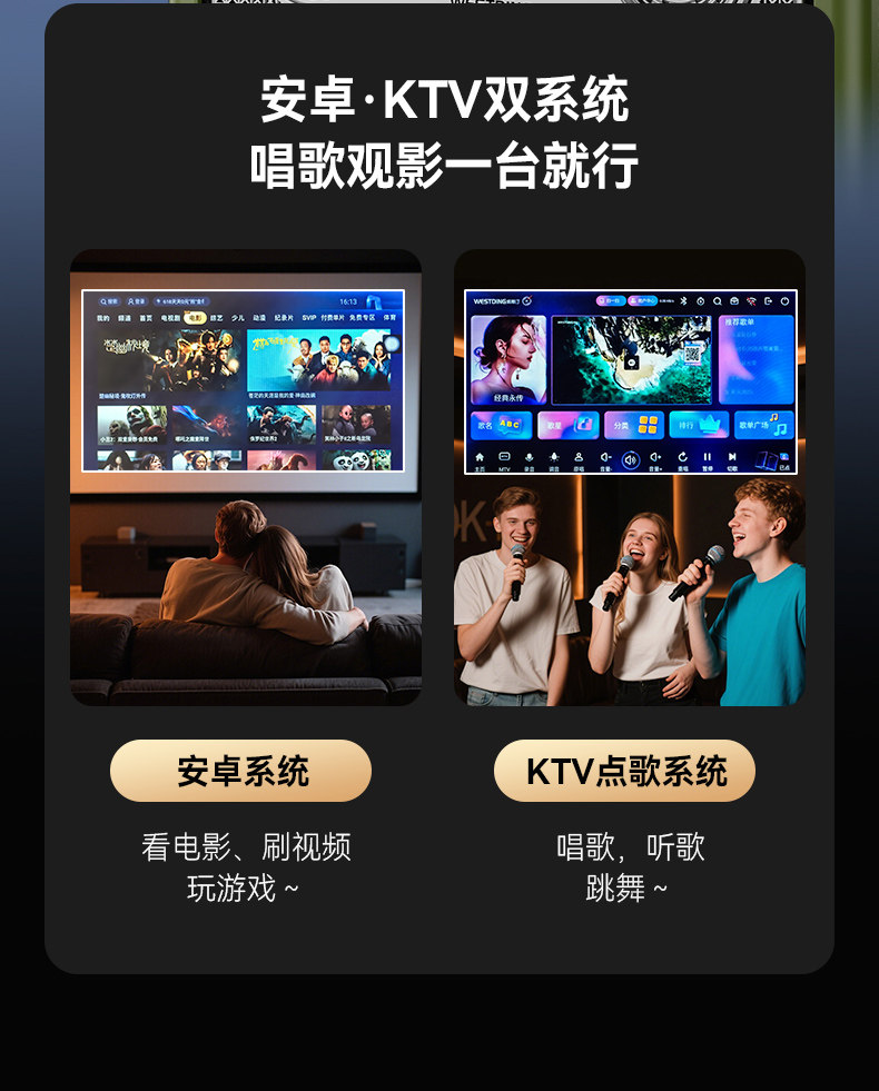 | Color Classification | 【2026 Flagship Edition 1】400W Power + Nationwide Online Music Library + Dual Dynamic Breathing Lights + Professional Uhf Microphone + 360°°Full View,【2026 Flagship Edition 2】400W Power + Nationwide Online Music Library + Dual Dynamic Breathing Lights + Professional Uhf Microphone + 360° ° Full Viewing Angle + Bracket + Built-In 320g Hard Drive,【2026 Flagship Edition 3】400W Power + Nationwide Online Music Library + Dual Dynamic Breathing Lights + Professional Uhf Microphone + 360°°Full Viewing Angle + Stand + Built-In 320g Hard Drive + Trolley Bag,【Add to Favorites + Add to Cart】Contact Customer Service for New Product Discounts + Free Shipping,✅Innovative Upgrade✅Wooden Large Cavity✅The Light Changes with the Song✅2.2 Channels Make Singing Easier Than 2.0 Channels, and the Sound Effect Is Improved by 30%-50% |