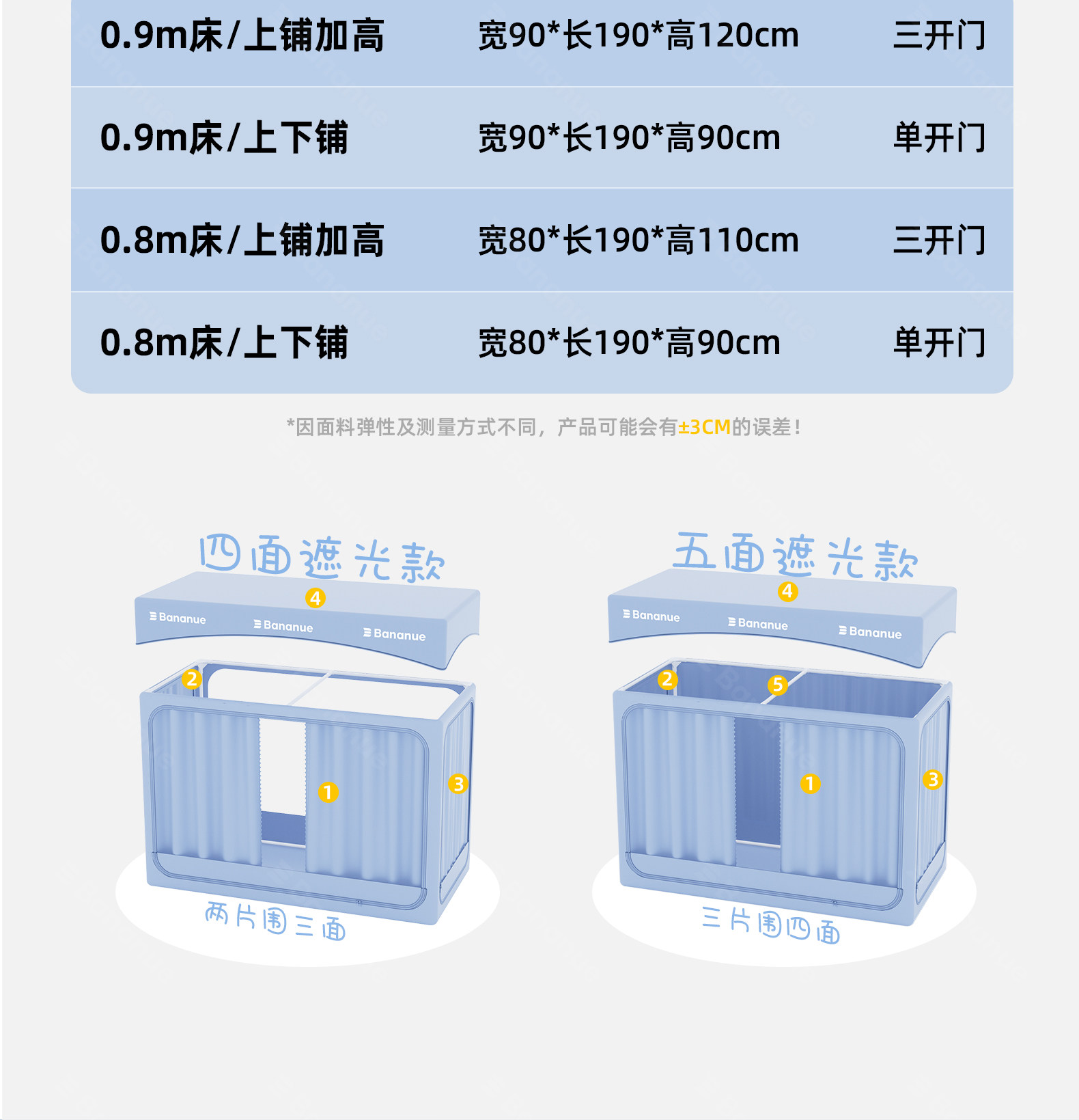 | Color Classification | No. 1 for Three Consecutive Years! Crescent 100% Blackout Uncoated Bed Curtains,✅Beware of Low-Quality Coated Dorm Bed Curtains on the Market! Half-Moon! Only Make Uncoated Strong Shading,Add to Your Favorites and Cart for a Free Gift! Get a $68 Ip Collaboration Keychain + DIY Stickers,Look for the 15% National Subsidy! Having the National Subsidy Means It's Nationally Verified as Authentic!,[Yue Mian Soft Blue] Four-Sided Shading - 100% Uncoated Strong Shading,【Light Cloud Custard】Four-Sided Blackout - 100% Uncoated, Superior Light Blocking,[Yue Mian Soft Blue] Four-Sided Shading + Storage Box - 100% Uncoated Strong Shading,【Light Cloud Custard】Four-Sided Blackout + Storage Box - 100% Uncoated, Superior Blackout,【Moonlight Blue】Five-Sided Full Coverage - 100% Uncoated Blackout - Blackout Villa,【Light Cloud Custard】Five-Sided Full Coverage - 100% Uncoated Blackout - Blackout Villa,【Moonlight Blue】Five-Sided Full Coverage + Storage Box - 100% Uncoated Blackout - Blackout Villa,【Light Cloud Custard】Five-Sided Full Coverage + Storage Box - 100% Uncoated Blackout - Blackout Villa,---The Following Is the Bold Bracket Model-Click on the Picture to Refer to the Size------------.,[Yue Mian Soft Blue] Four-Sided Shading + Bracket Thickened by 30%,【Light Cloud Custard】Four-Sided Blackout + 30% Thicker Frame,[Yue Mian Soft Blue] Four-Sided Shading + Bracket Thickened by 30% + Storage Box,【Light Cloud Custard】Four-Sided Blackout + 30% Thicker Reinforced Frame + Storage Box,[Yue Mian Soft Blue] Five-Sided All-Inclusive + Bracket Thickened by 30% - Light-Blocking Small Villa,【Light Cloud Custard】Five-Sided Full Coverage + Reinforced Stand 30% Thicker - Blackout Mini Villa,[Yue Mian Soft Blue] Five-Sided All-Inclusive + Bracket Thickened by 30% + Storage Box - Light-Blocking Small Villa,【Light Cloud Custard】Five-Sided Full Coverage + 30% Thicker Stand + Storage Box - Blackout Villa |