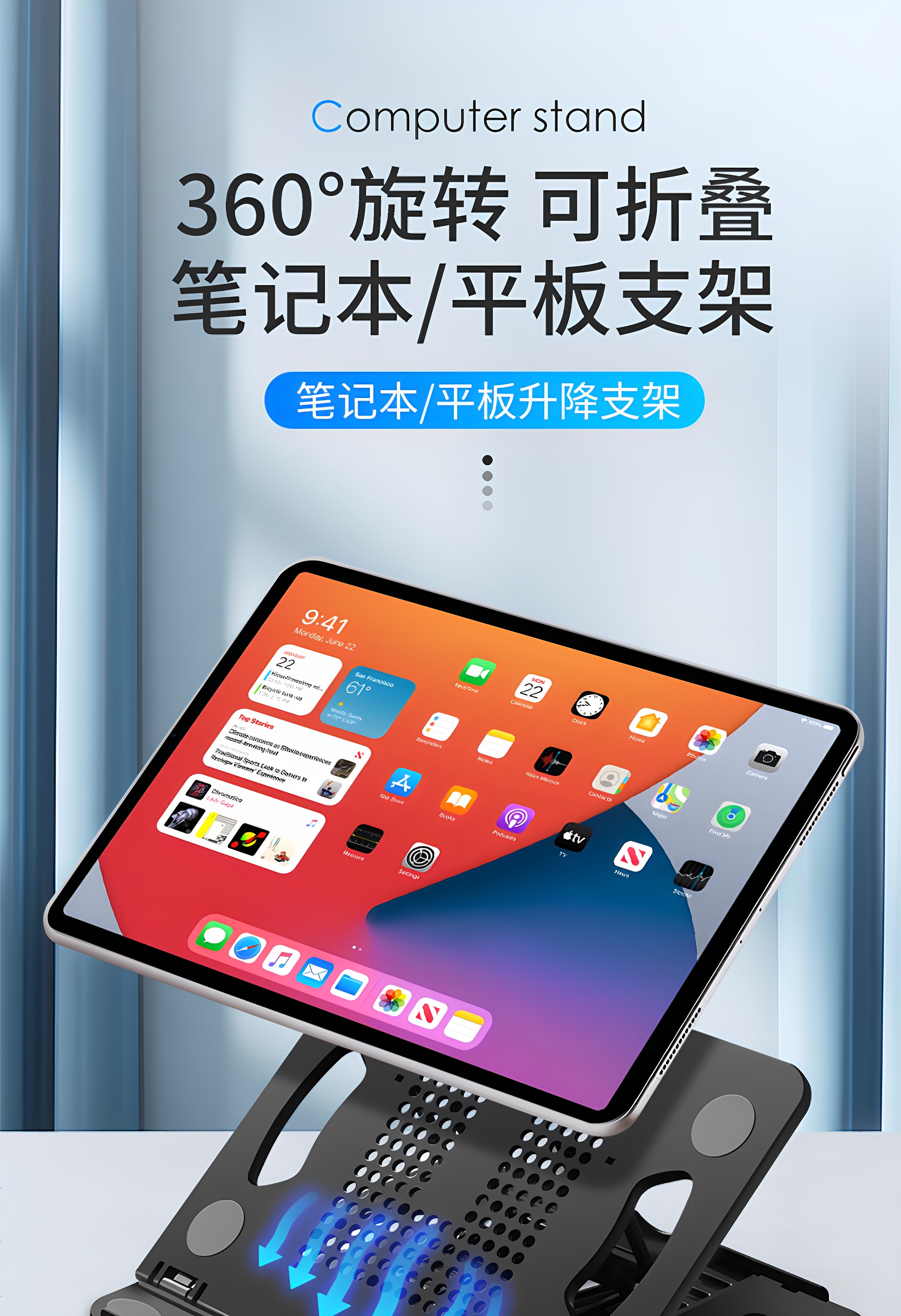 Laptop Tablet Stand Desktop Lazy Support Stand Foldable Cooling Adjustable Height 360-Degree Rotation