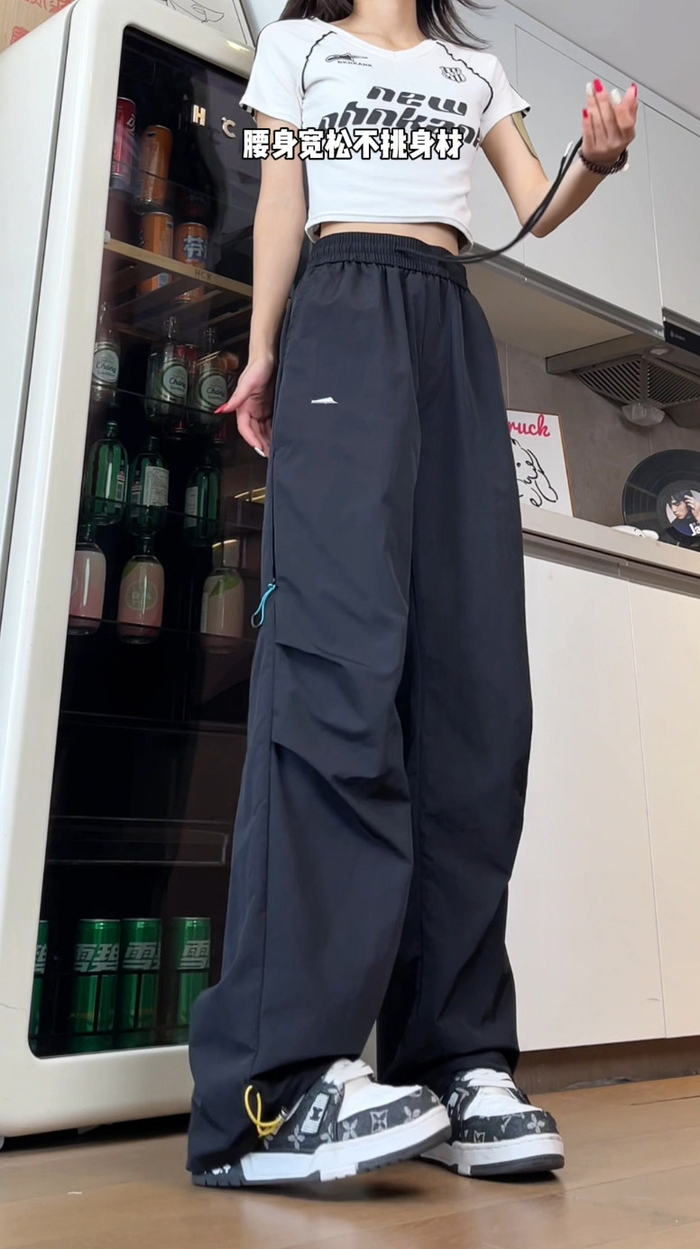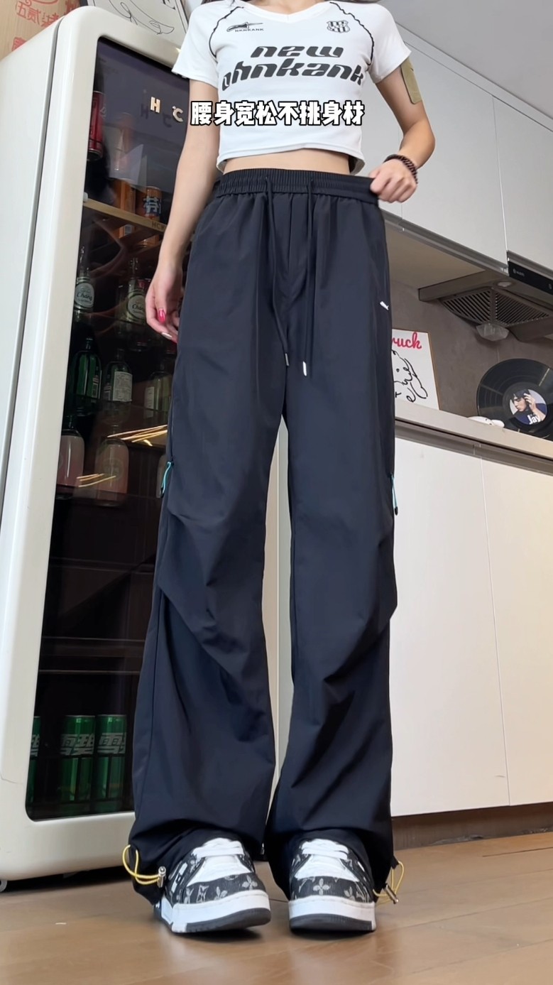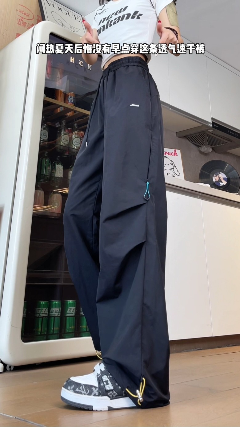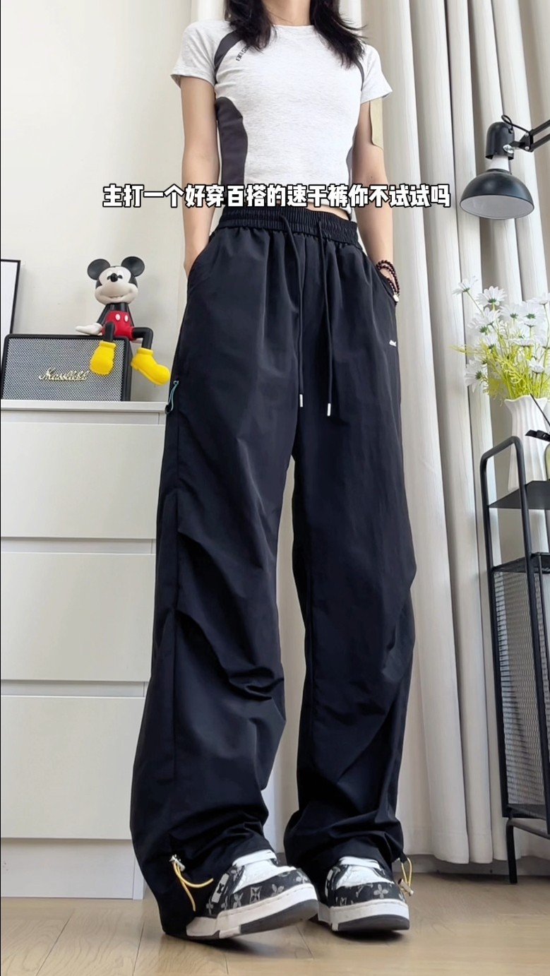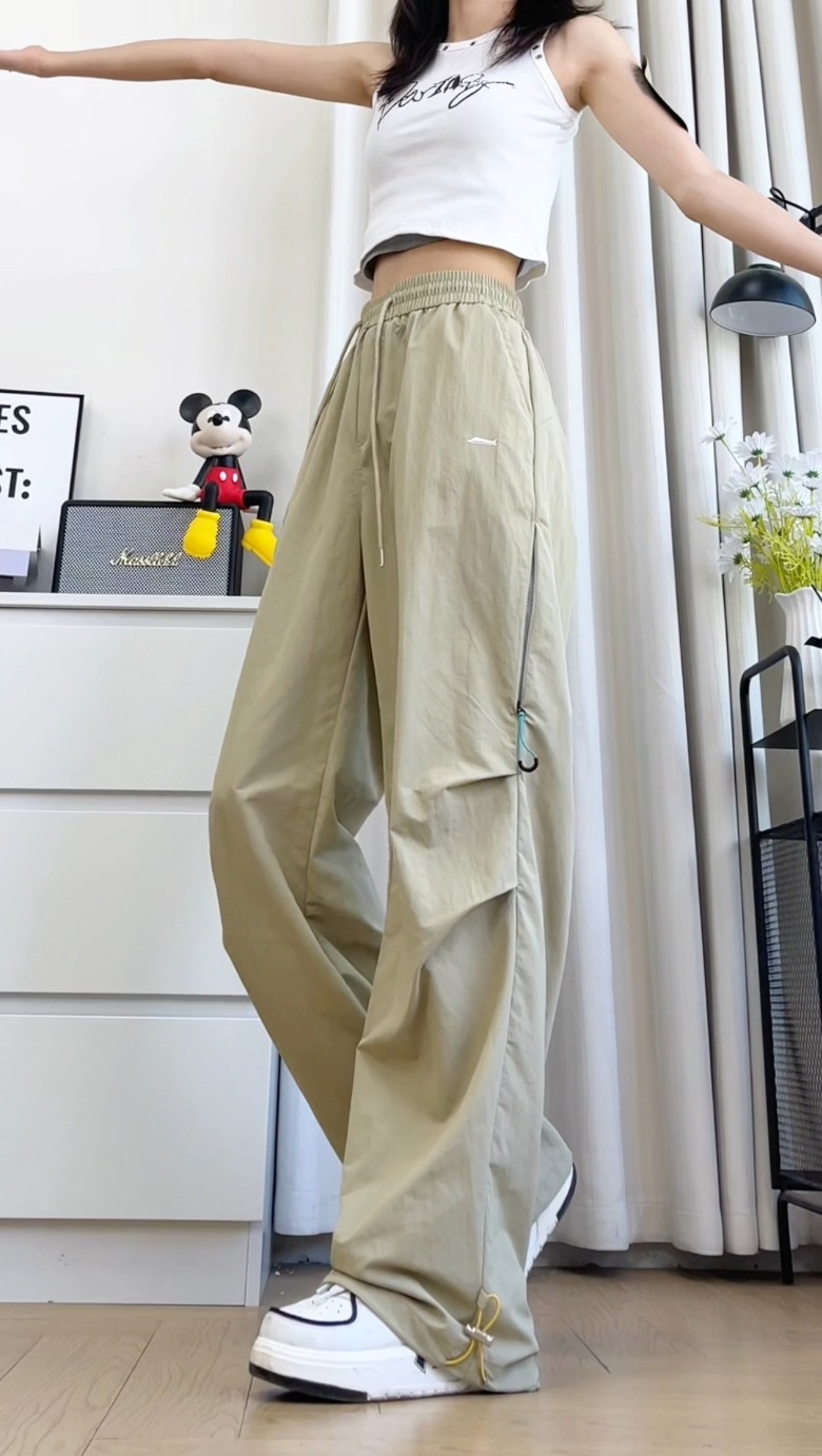 Autumn and Winter Quick-Drying Breathable Sun-Protective Sports Pants for Female Junior High School Students, Loose Straight-Leg Casual Large-Size Wide-Leg Work Pants