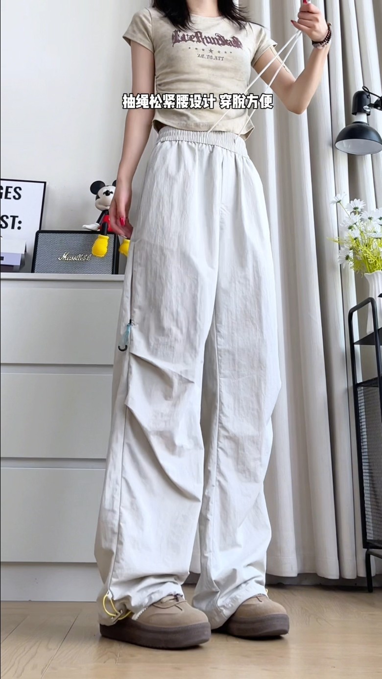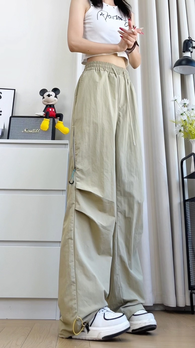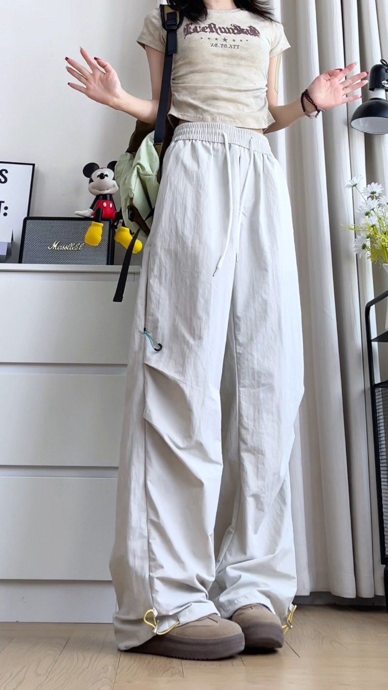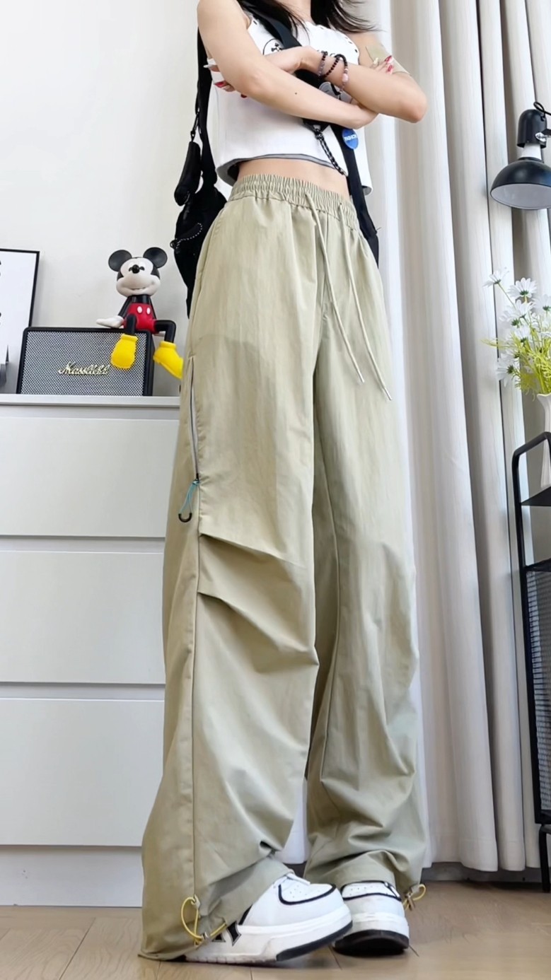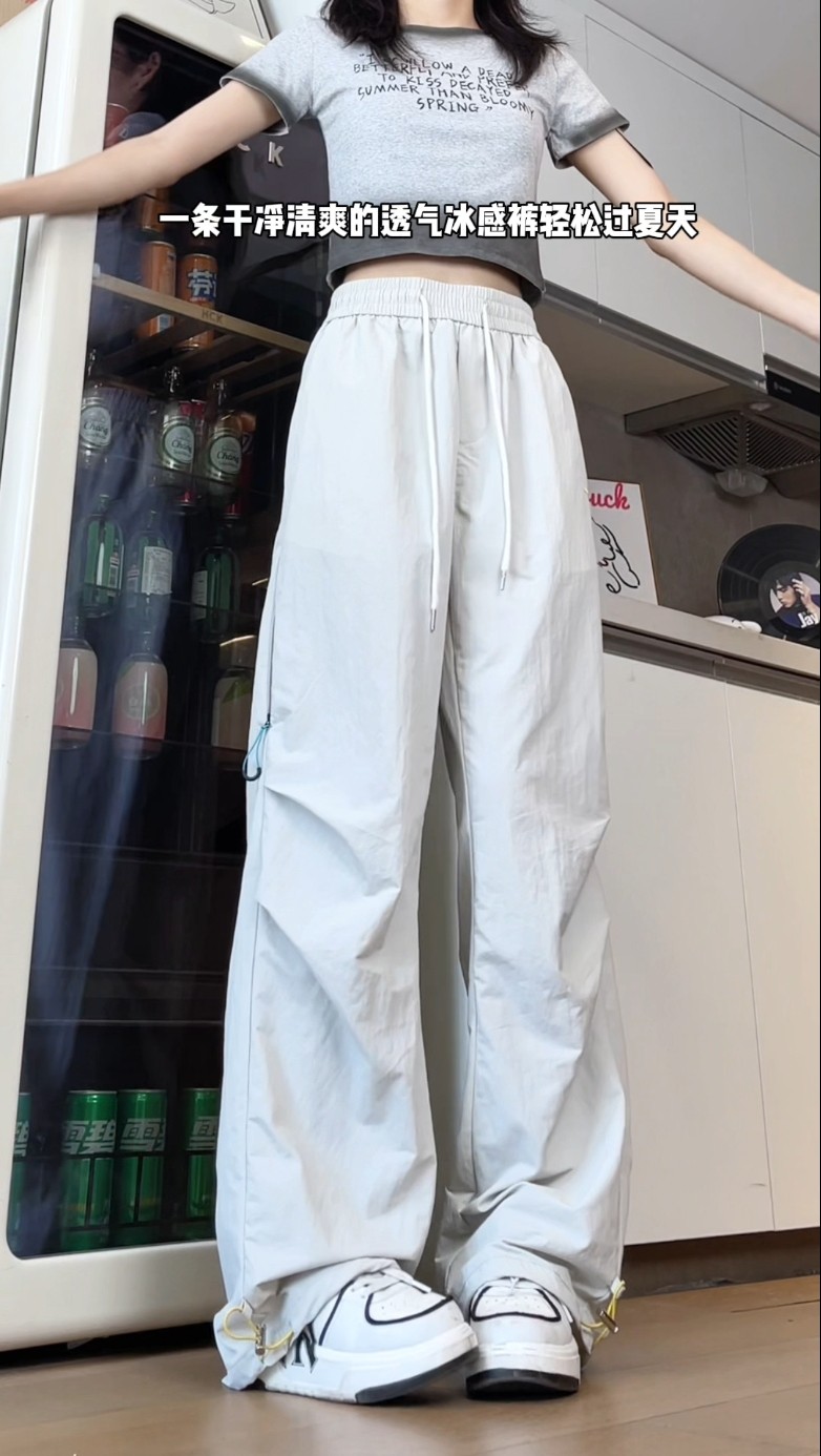 Autumn and Winter Quick-Drying Breathable Sun-Protective Sports Pants for Female Junior High School Students, Loose Straight-Leg Casual Large-Size Wide-Leg Work Pants