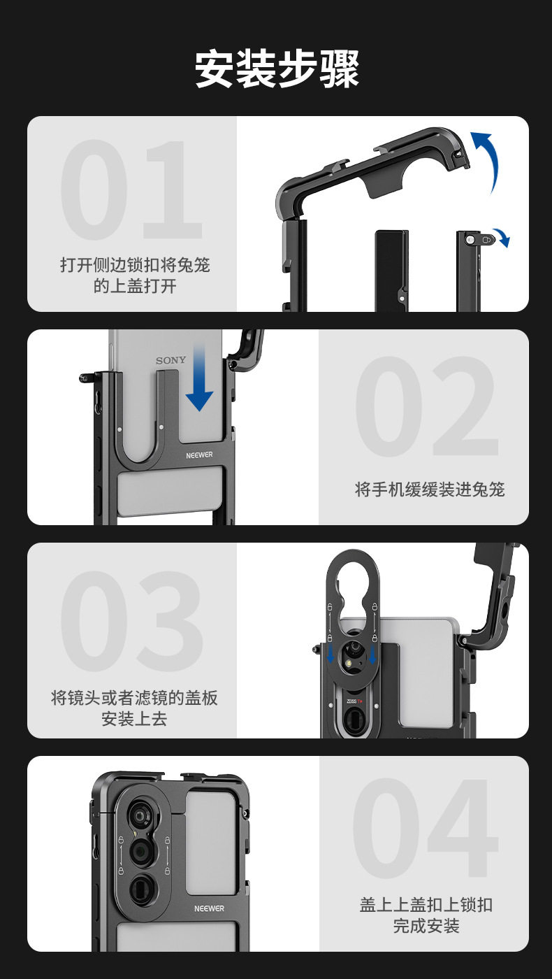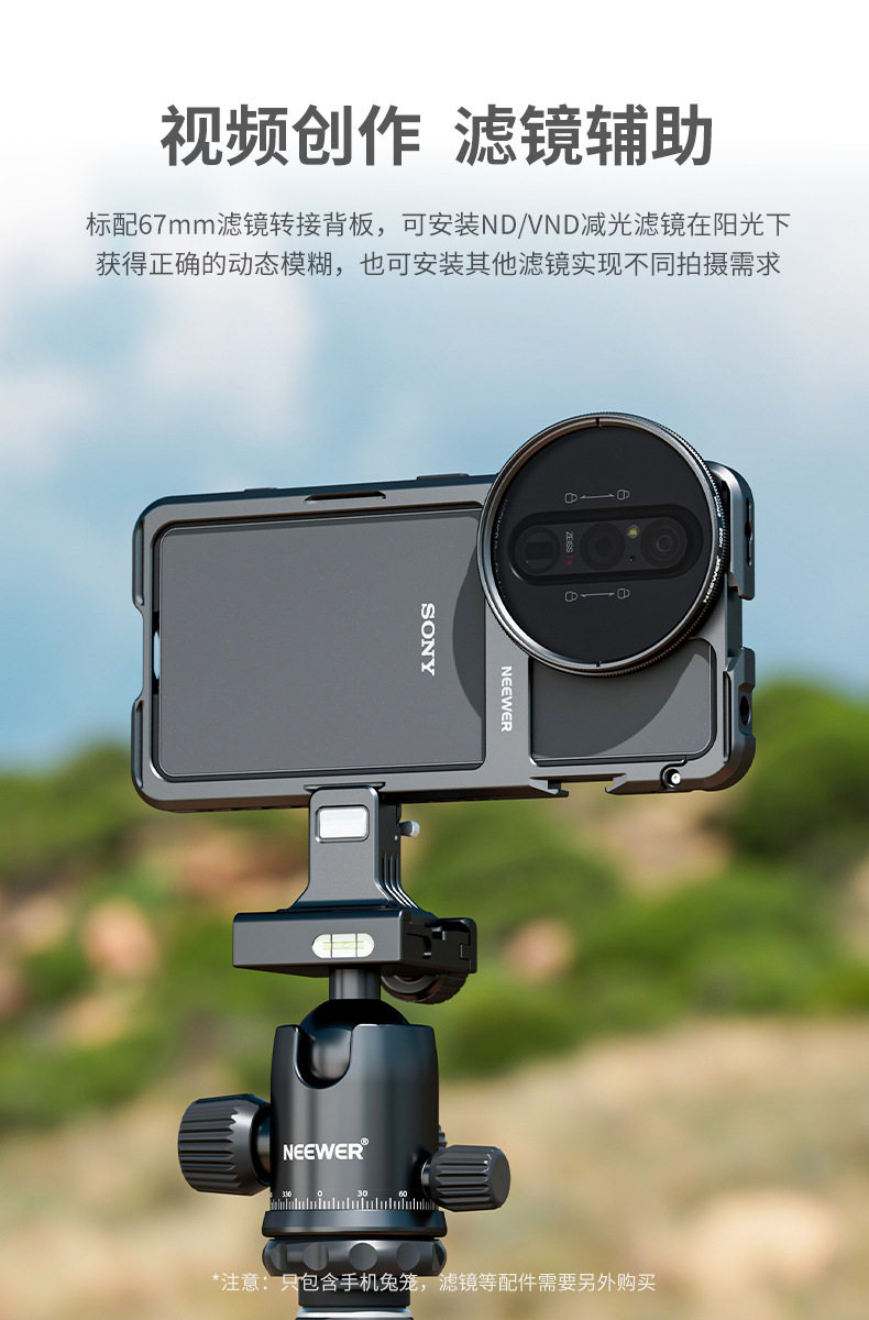 Newer Xperia Pro I Professional Mirrorless Phone Cage with External 17mm Phone Lens Filter Expansion for Photography, Lens Case, 67mm Filter Case, Quick-Release Handle