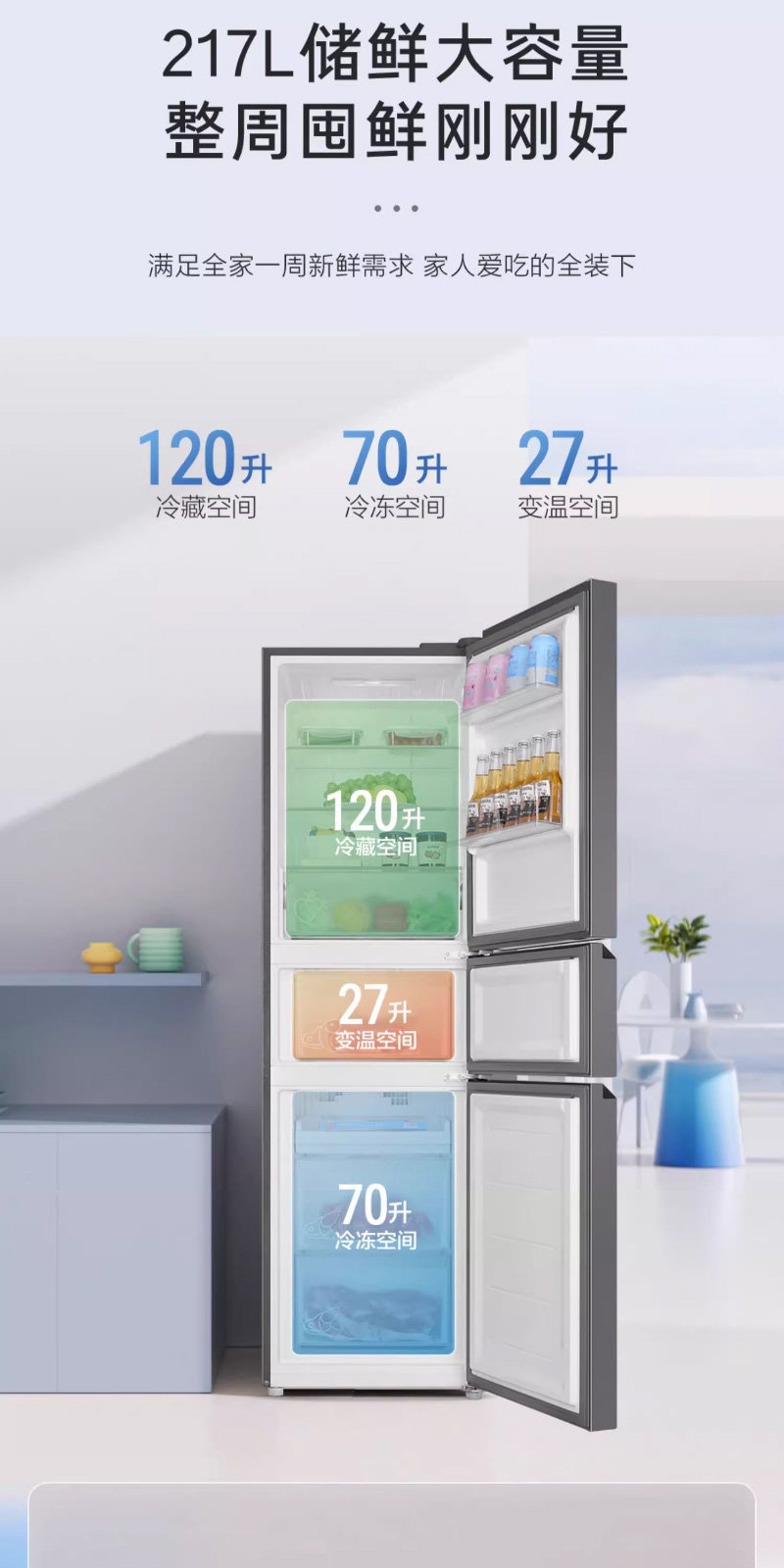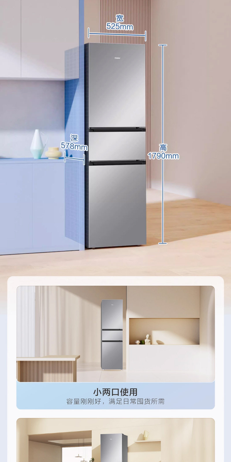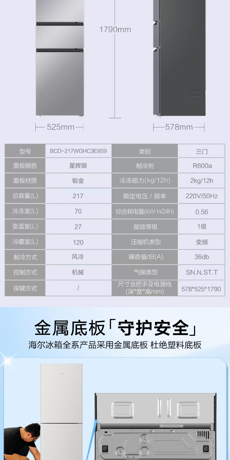 Haier Bcd-217Wghc3E9S9 Air-Cooled Frost-Free Small Refrigerator Dual Inverter First-Class Dormitory New Model