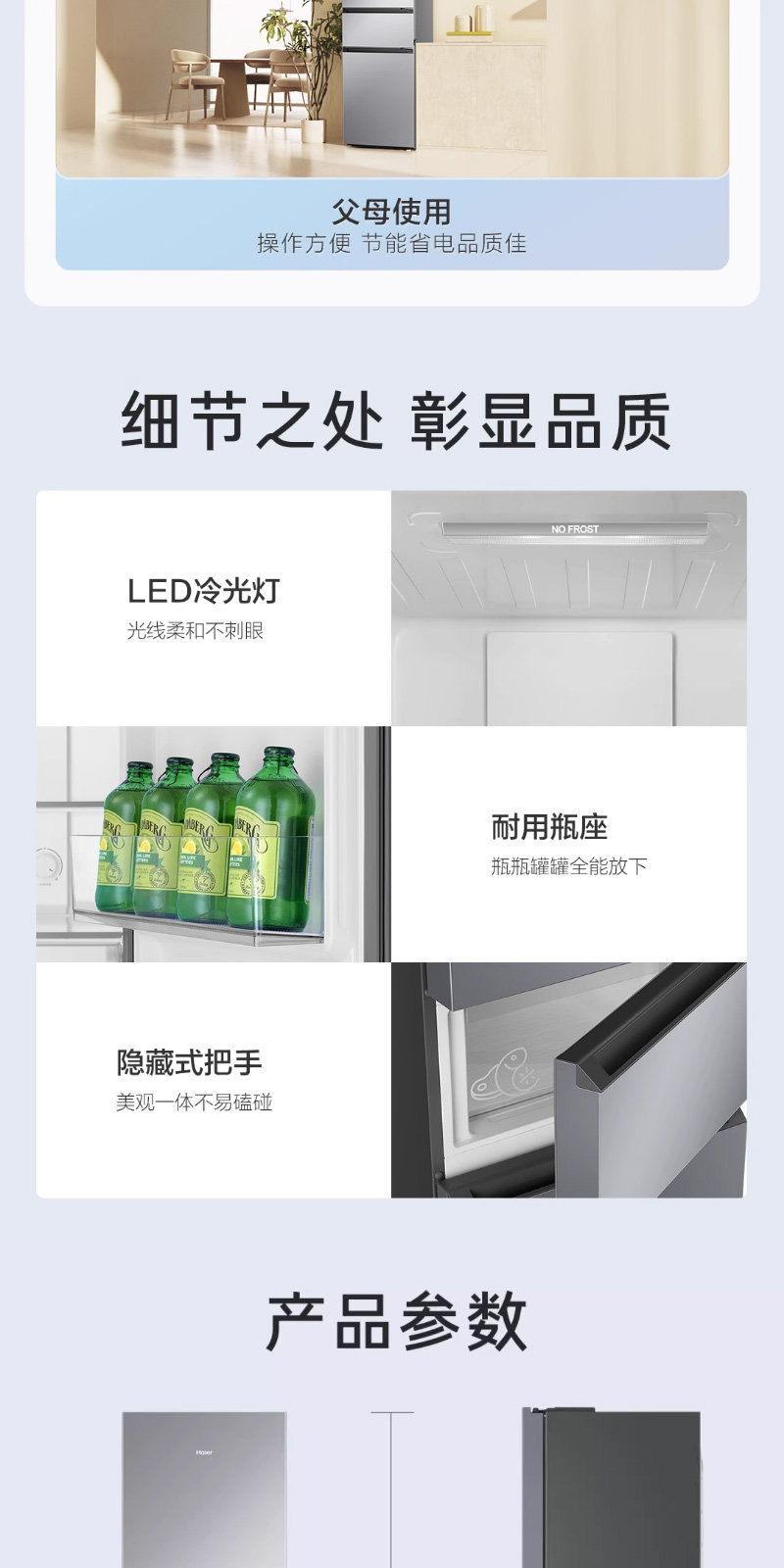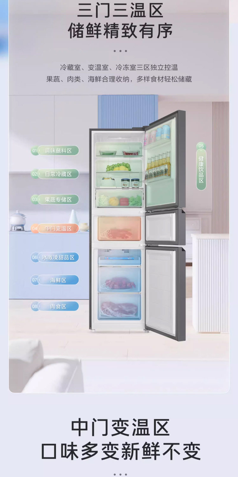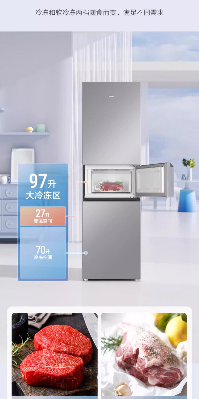 Haier Bcd-217Wghc3E9S9 Air-Cooled Frost-Free Small Refrigerator Dual Inverter First-Class Dormitory New Model