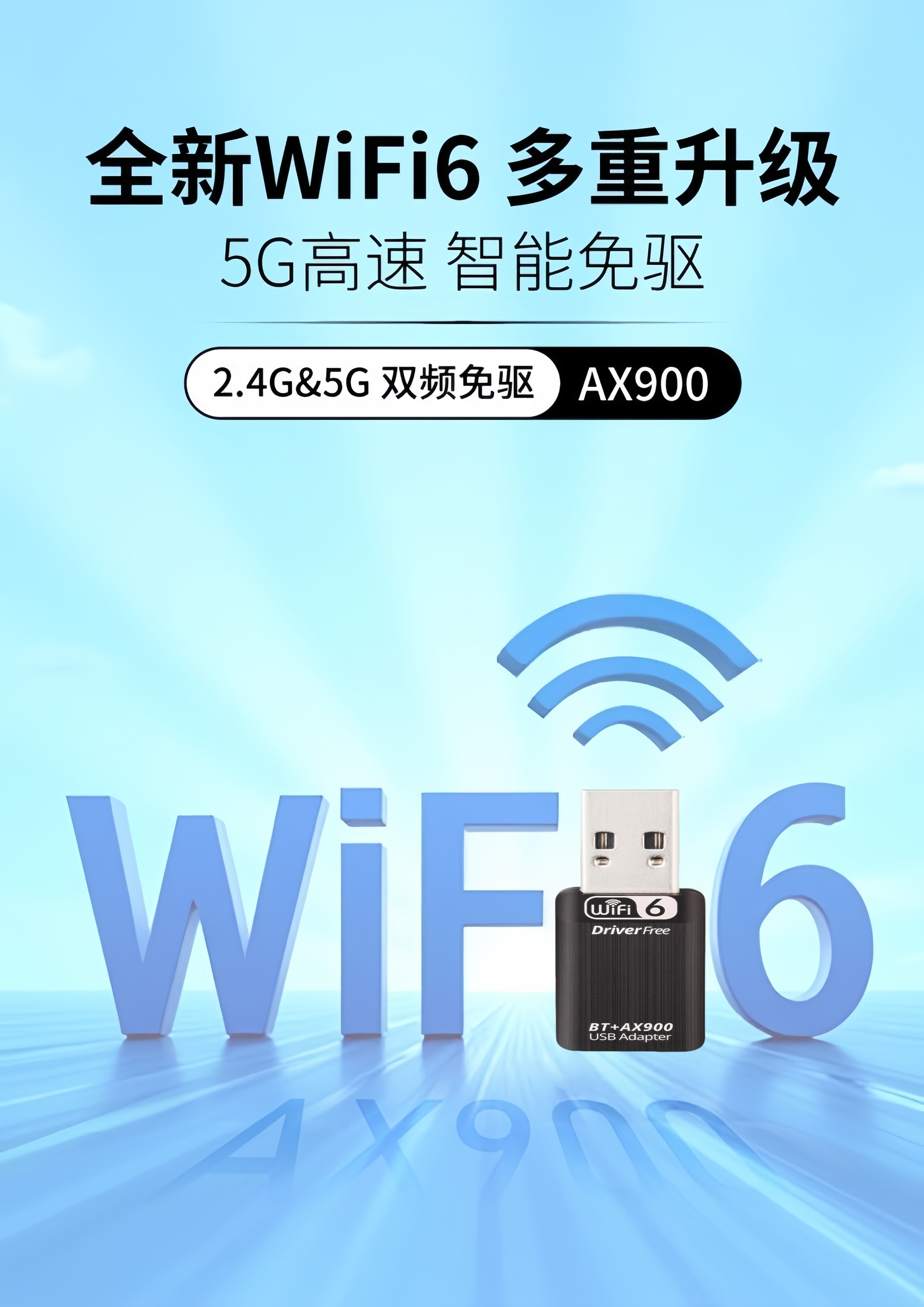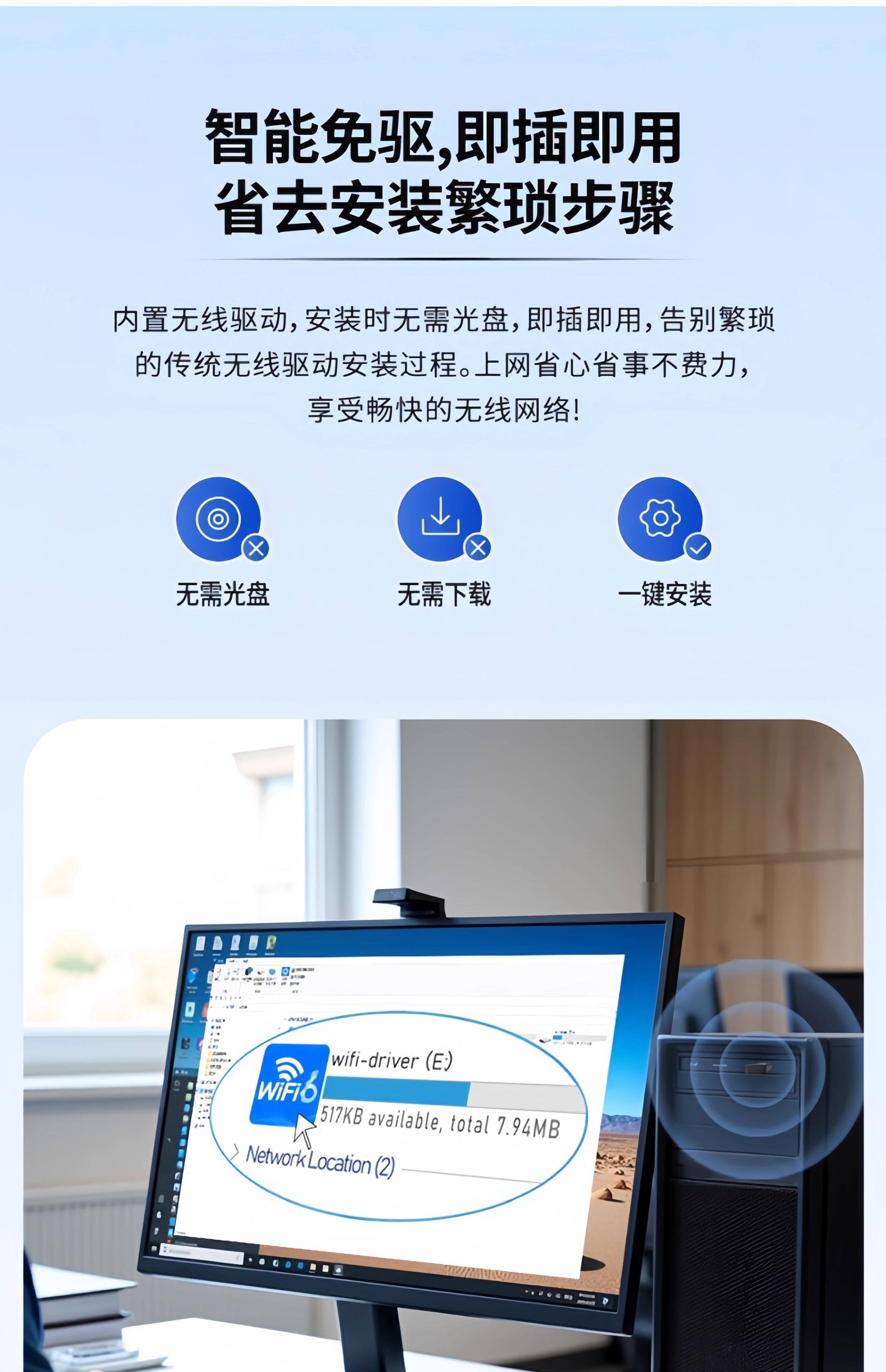 USB Wireless Network Card Driver-Free 5G+Bluetooth 5.4 Dual-Band Wifi6 Desktop Laptop Desktop Computer Receiver