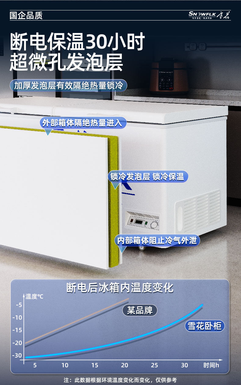 Snowflake First-Class Energy-Efficiency Freezer Commercial Large-Capacity Horizontal Freezer Dual-Temperature Refrigeration and Freezing Household Freezer