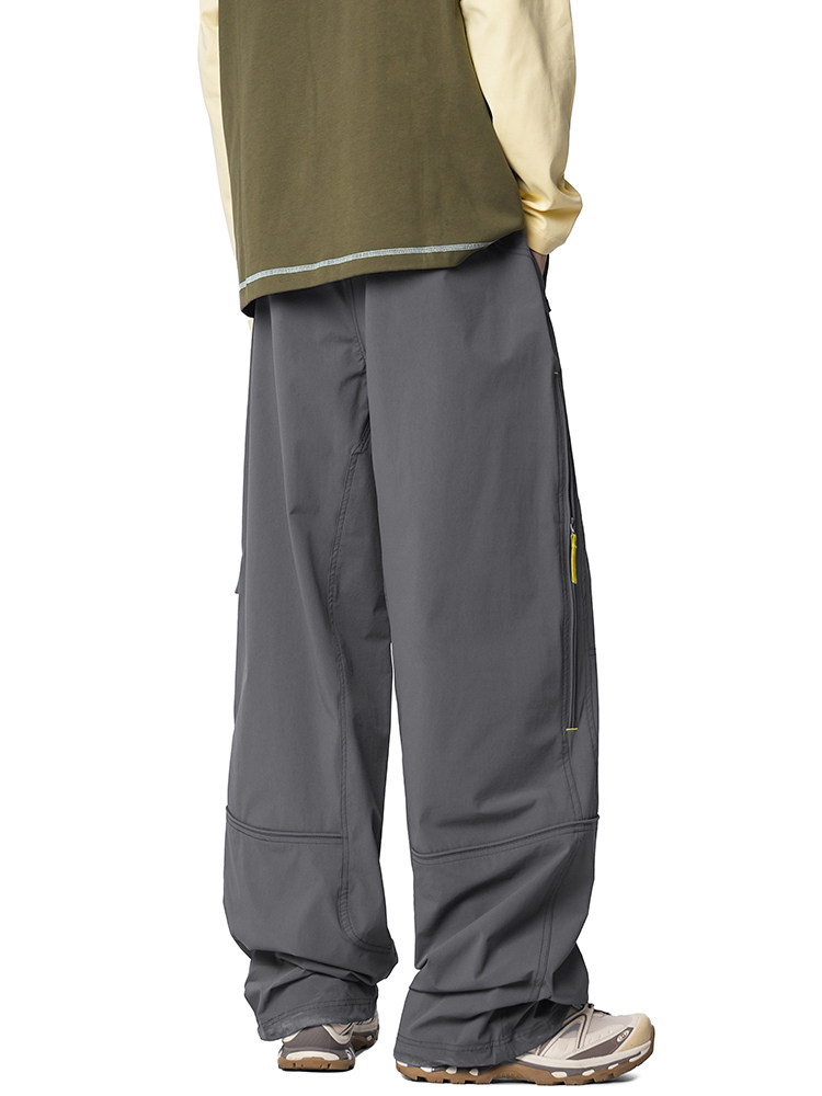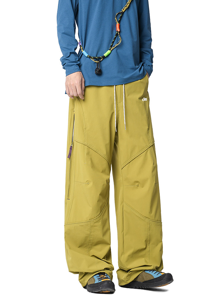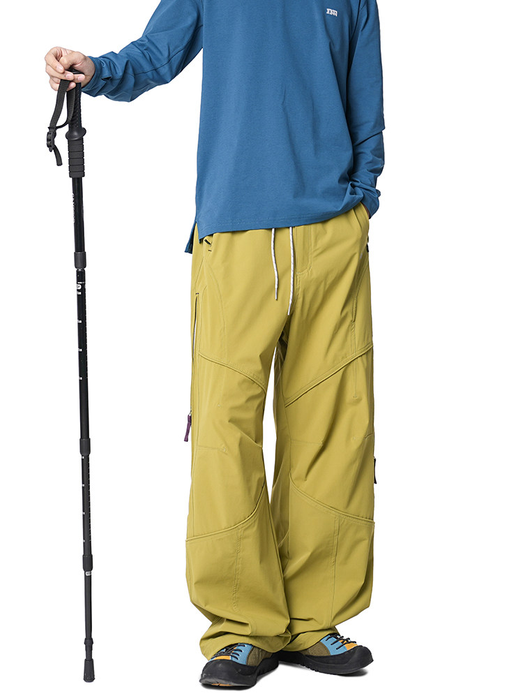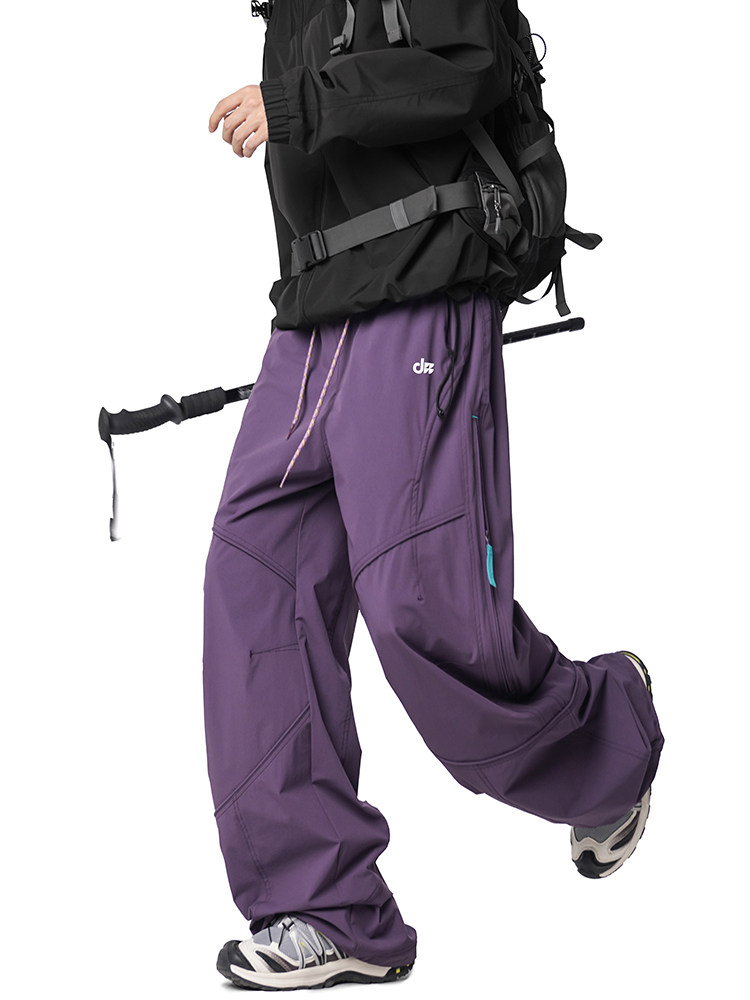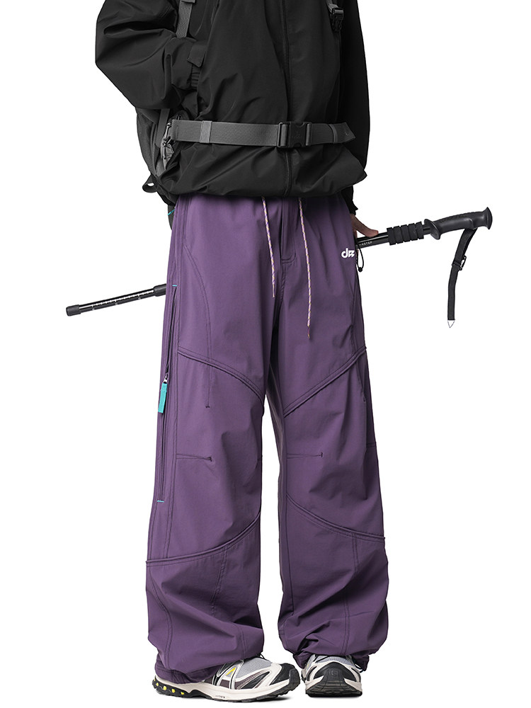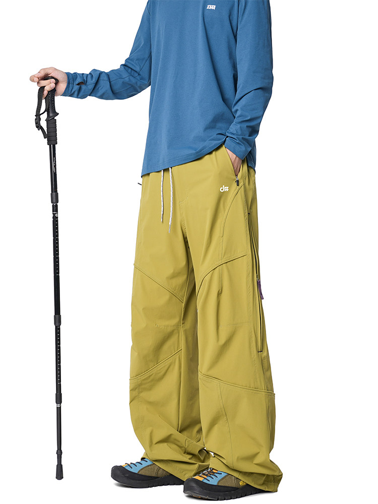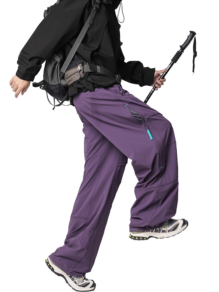 Mountain-Style Water-Repellent Hiking Pants for Men, Autumn and Winter Fleece-Lined Lightweight Sports Casual Pants, Loose Paratrooper Wide-Leg Pants