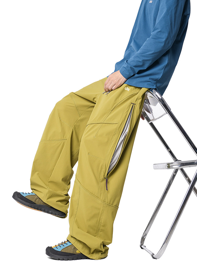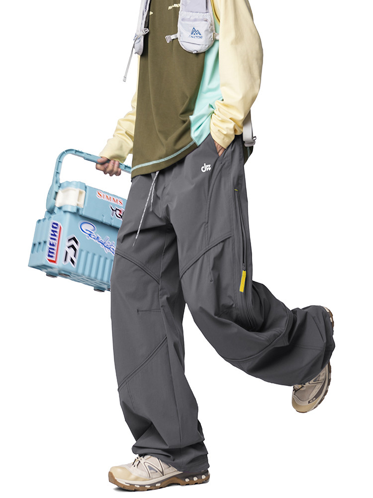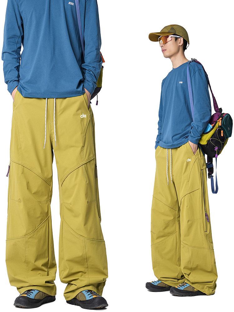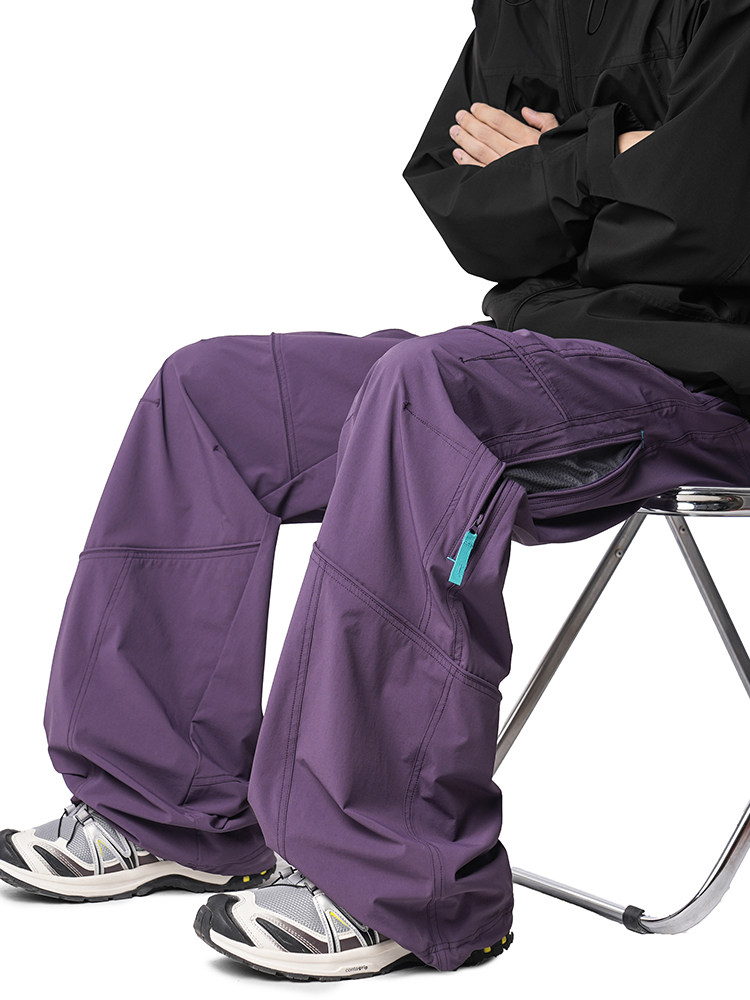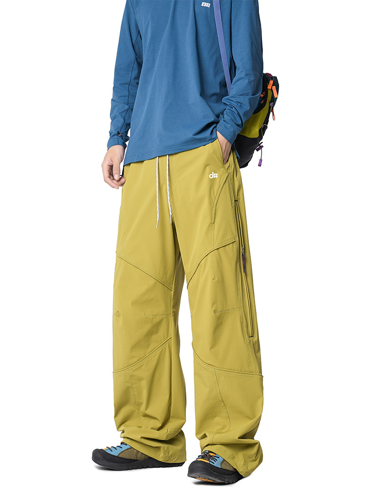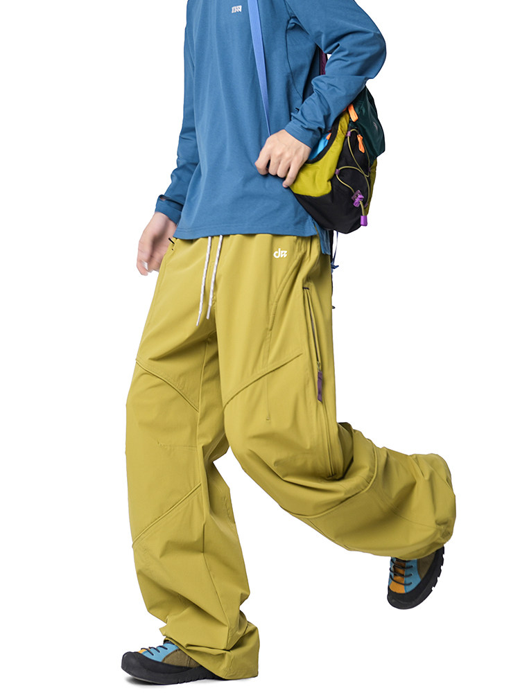 Mountain-Style Water-Repellent Hiking Pants for Men, Autumn and Winter Fleece-Lined Lightweight Sports Casual Pants, Loose Paratrooper Wide-Leg Pants