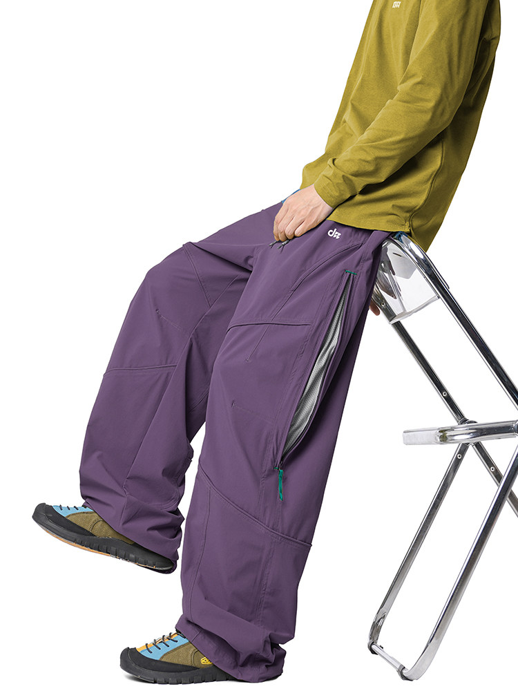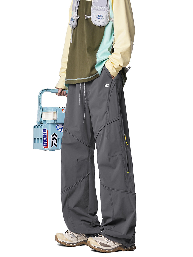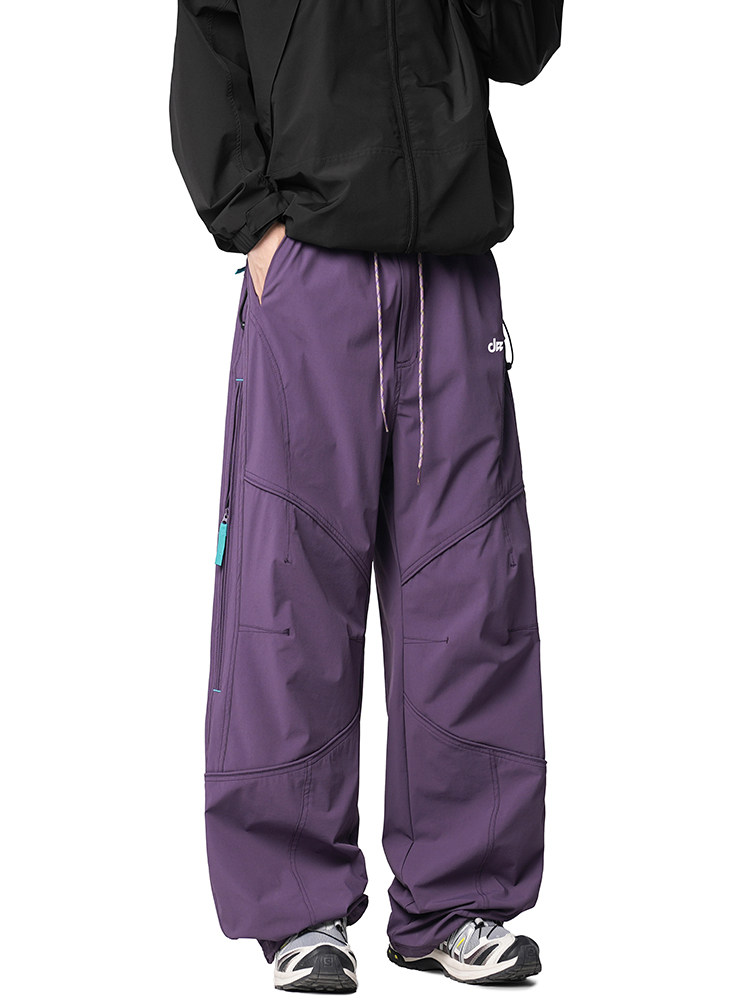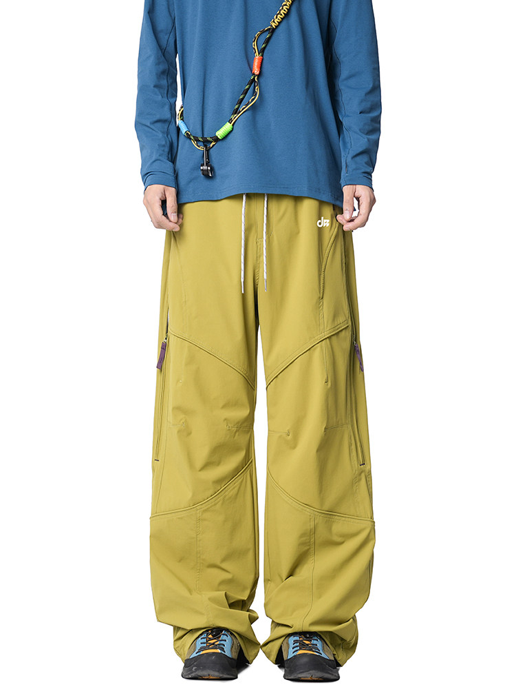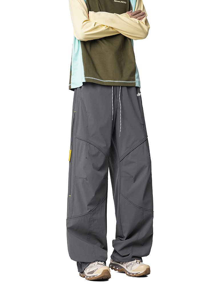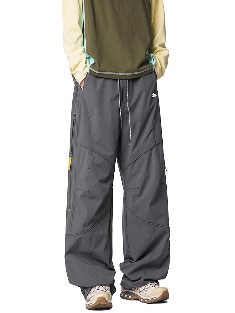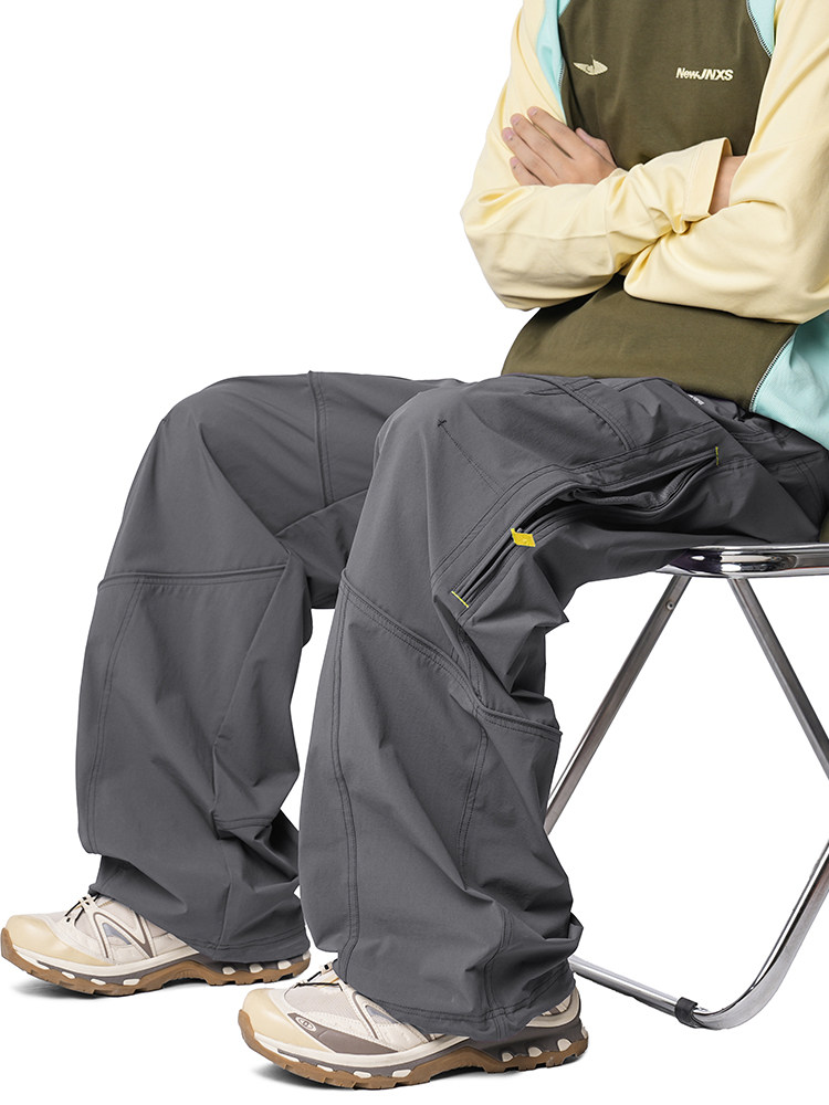 Mountain-Style Water-Repellent Hiking Pants for Men, Autumn and Winter Fleece-Lined Lightweight Sports Casual Pants, Loose Paratrooper Wide-Leg Pants