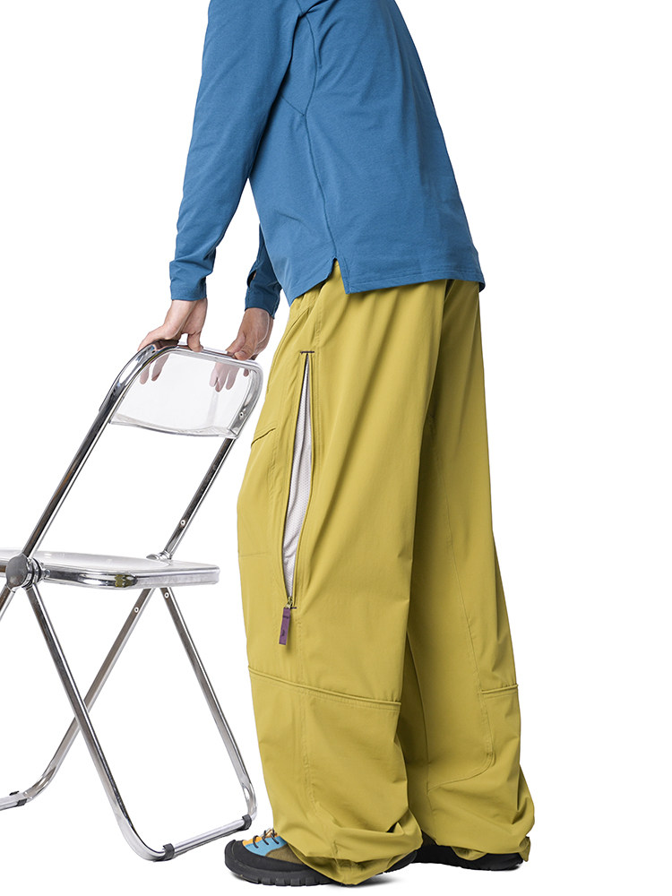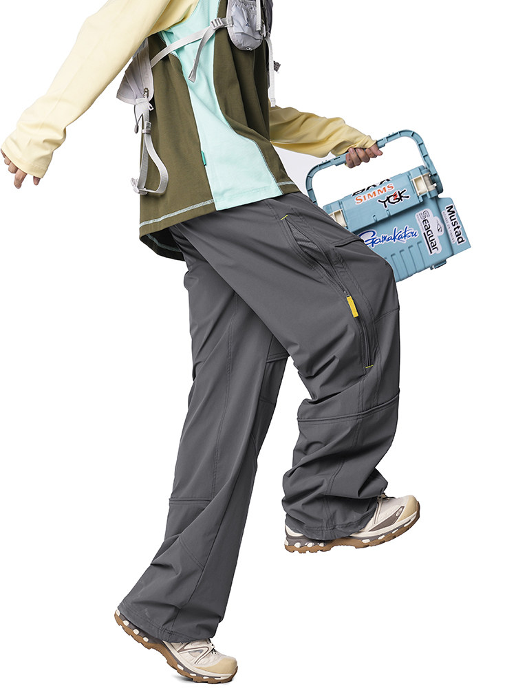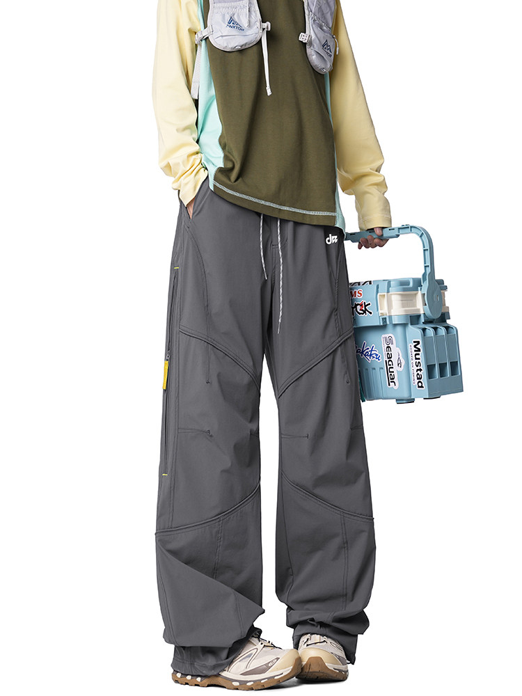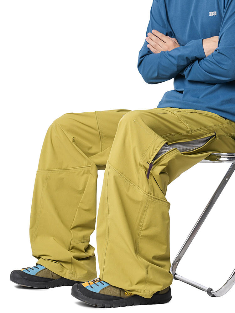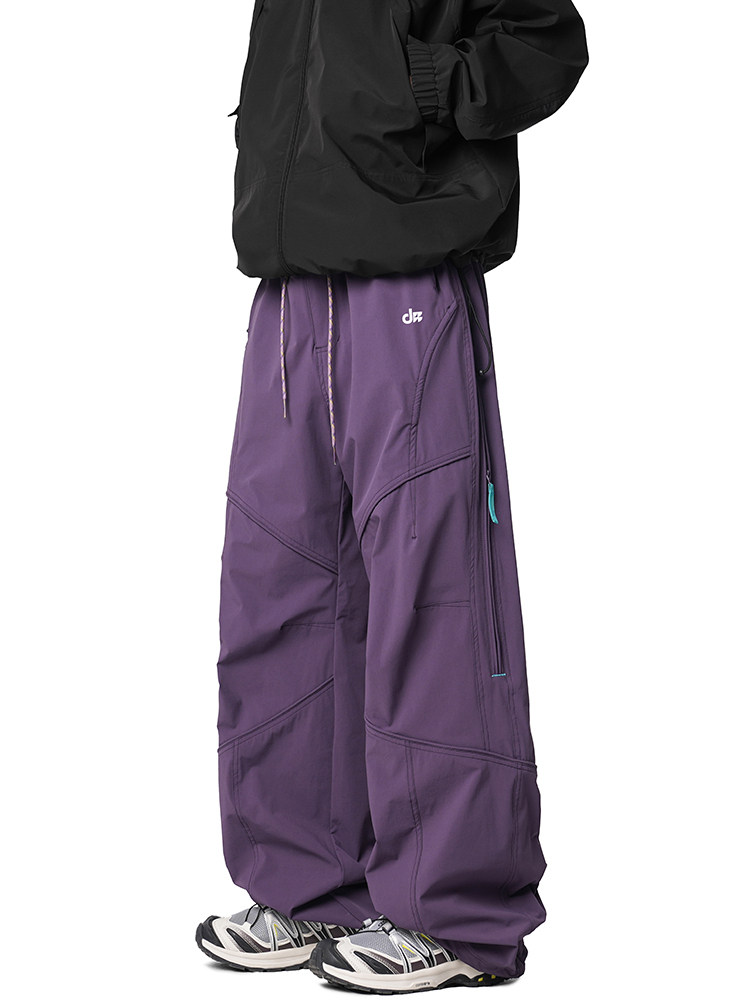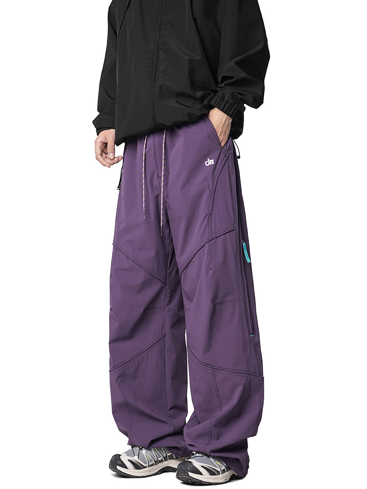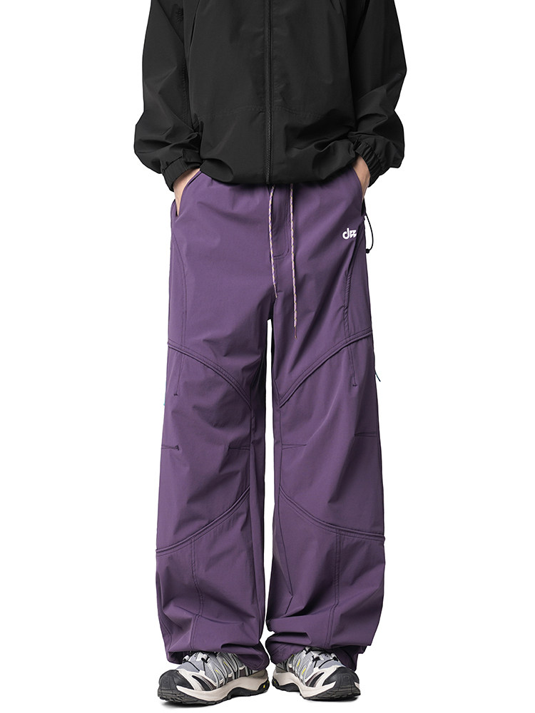 Mountain-Style Water-Repellent Hiking Pants for Men, Autumn and Winter Fleece-Lined Lightweight Sports Casual Pants, Loose Paratrooper Wide-Leg Pants