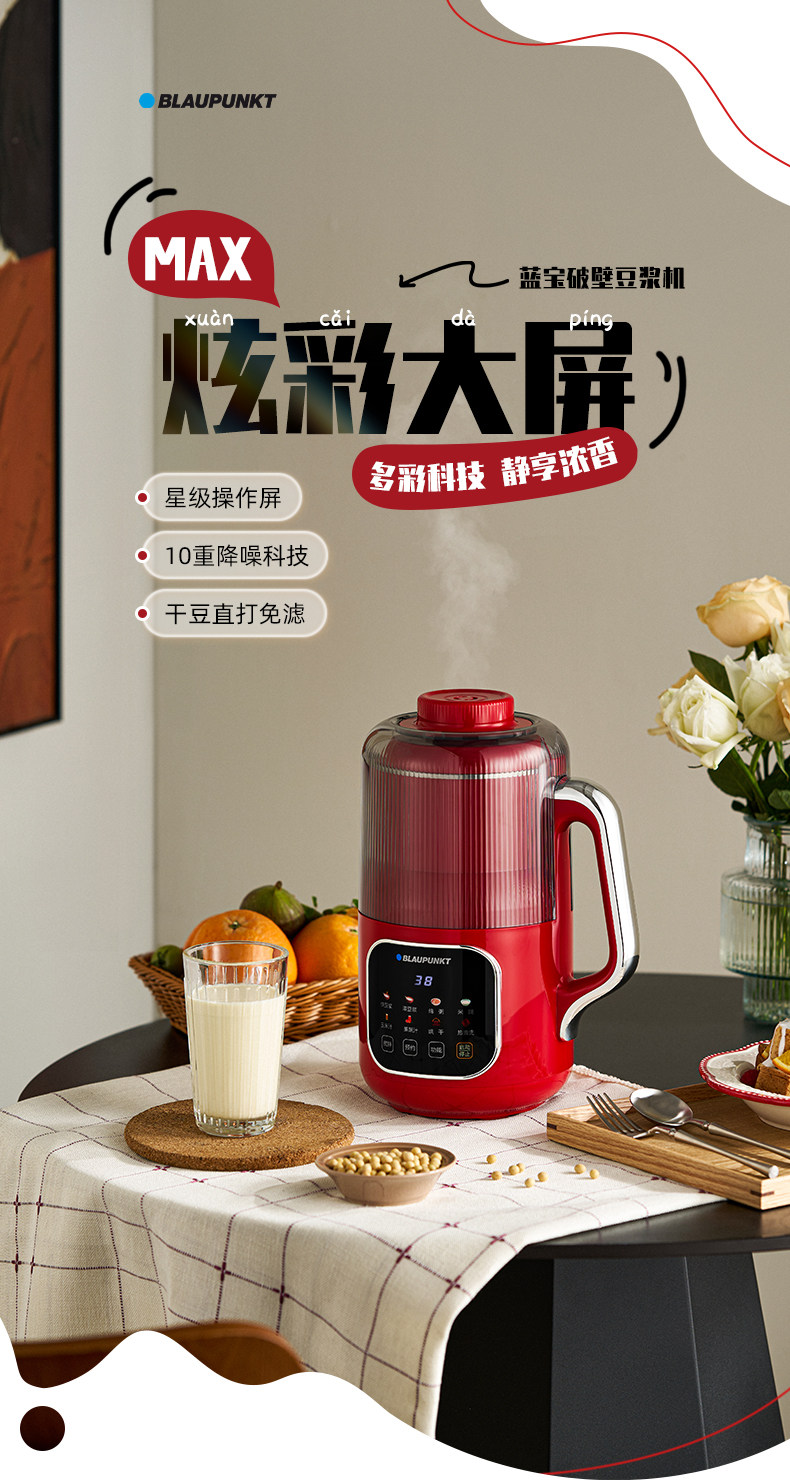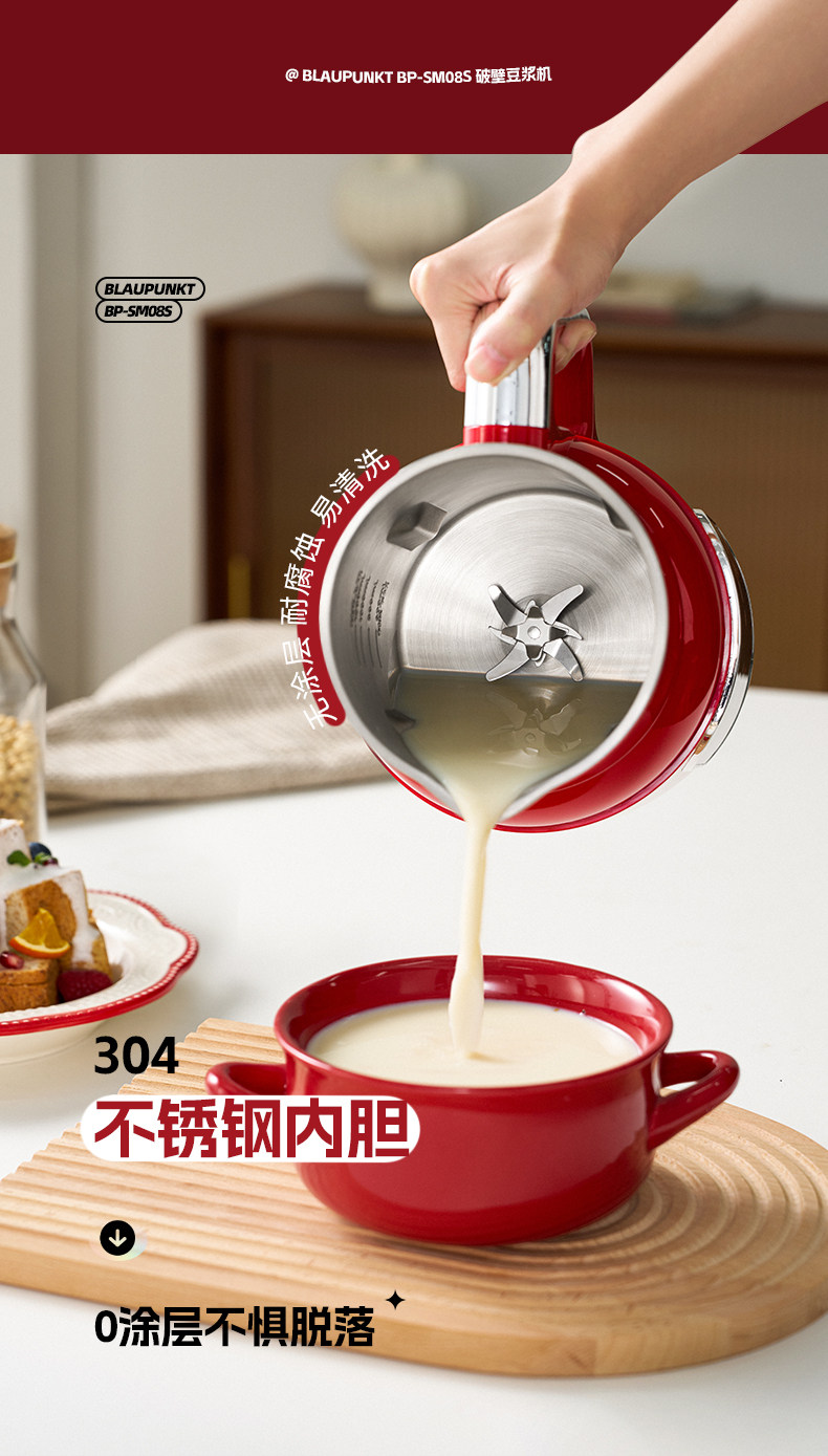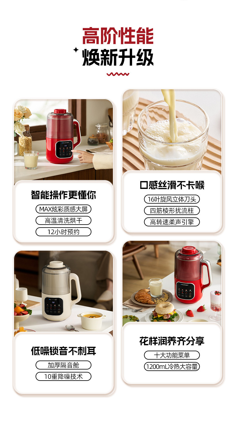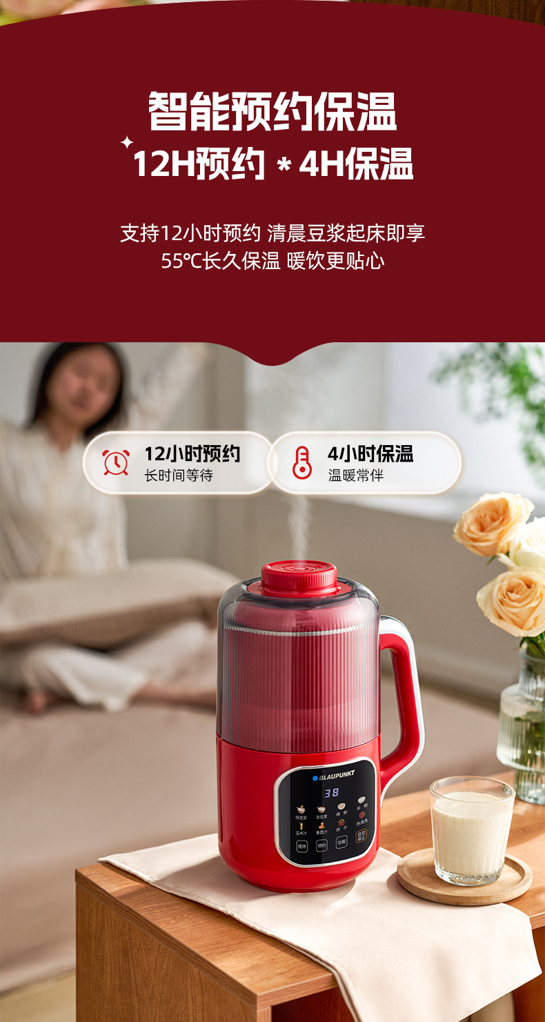 German Blaupunkt Soy Milk Maker, Household Blender, Fully Automatic, Low Noise, No Cooking, No Filtering, Cooking and Juicing Machine