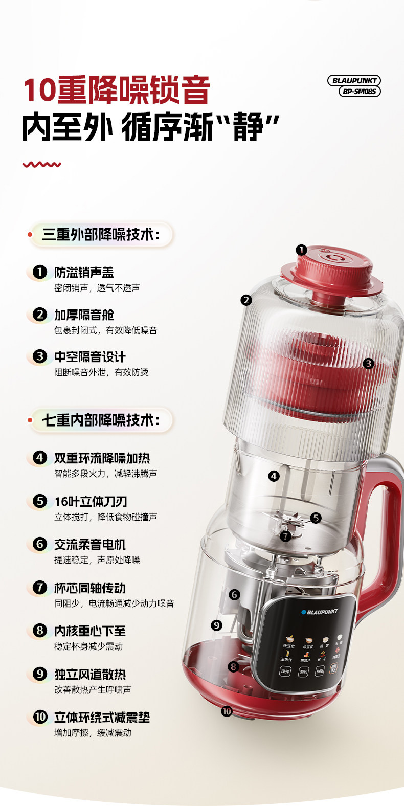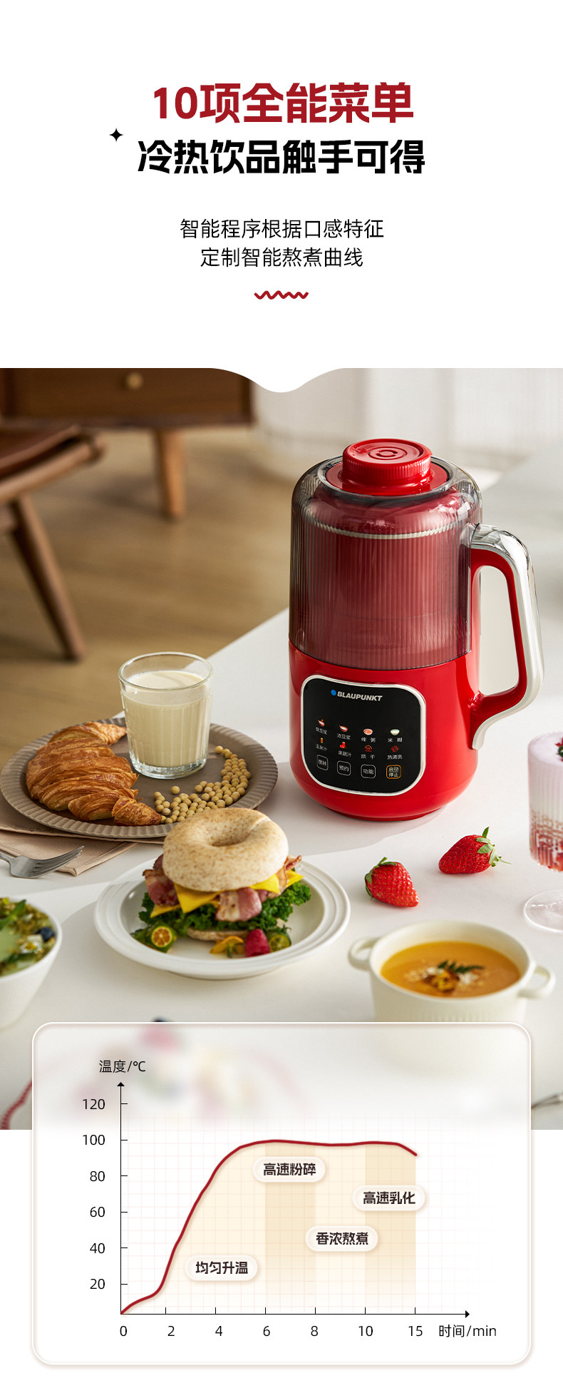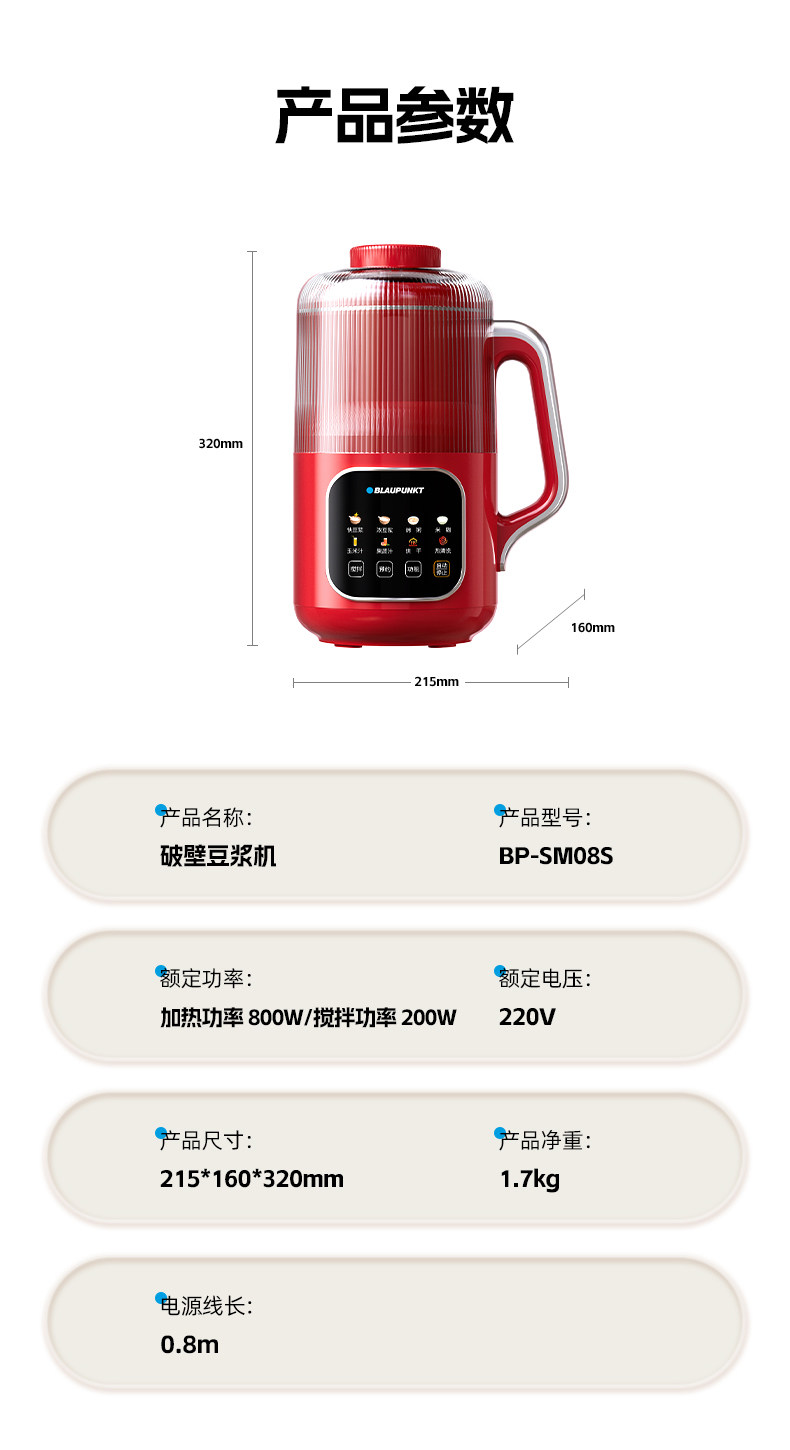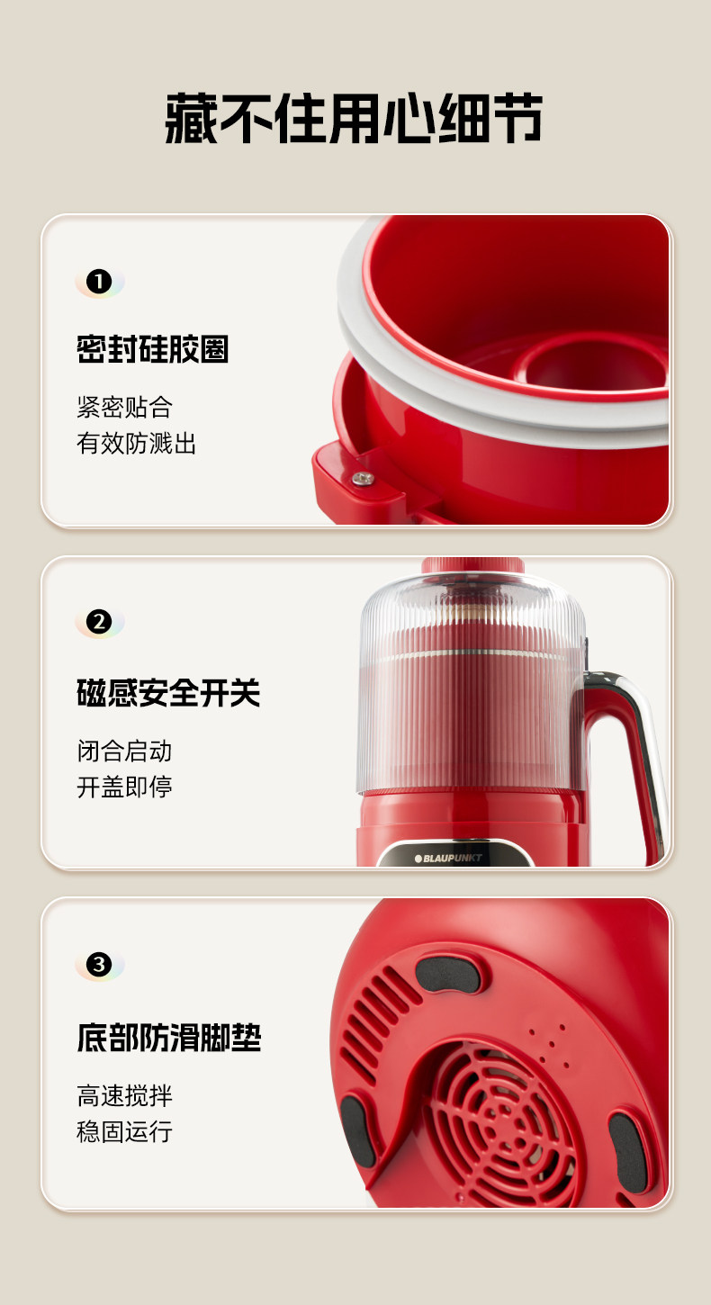 German Blaupunkt Soy Milk Maker, Household Blender, Fully Automatic, Low Noise, No Cooking, No Filtering, Cooking and Juicing Machine