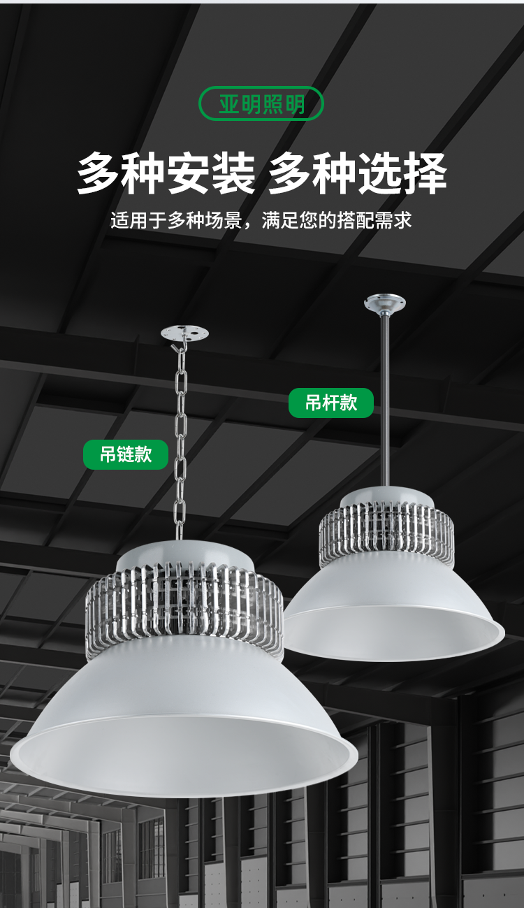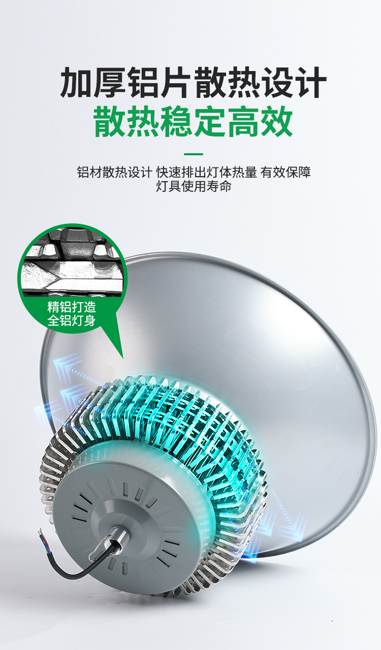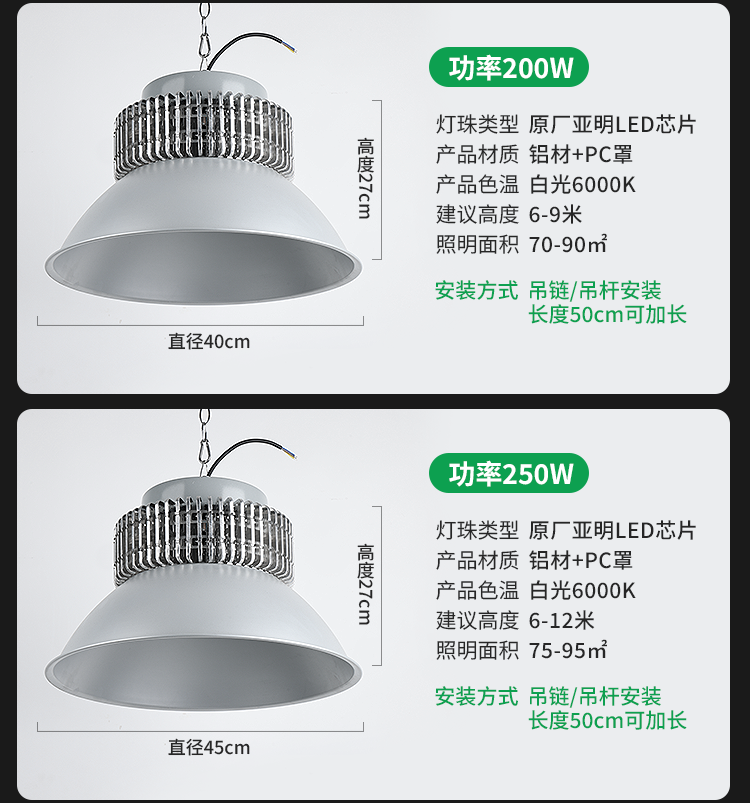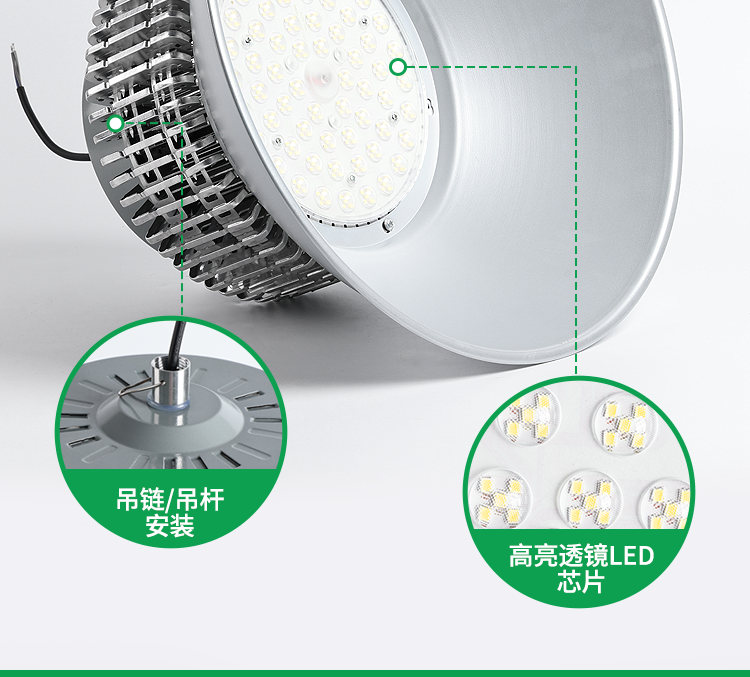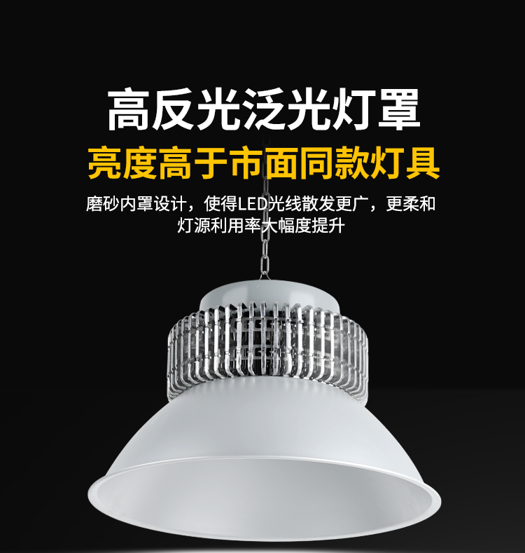 Full-Watt Led Industrial and Mining Light with Finned Heatsink for Factory, Warehouse, and Workshop Lighting, 200W Ultra-Bright Industrial High-Power Pendant Light
