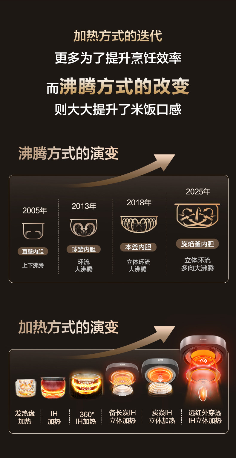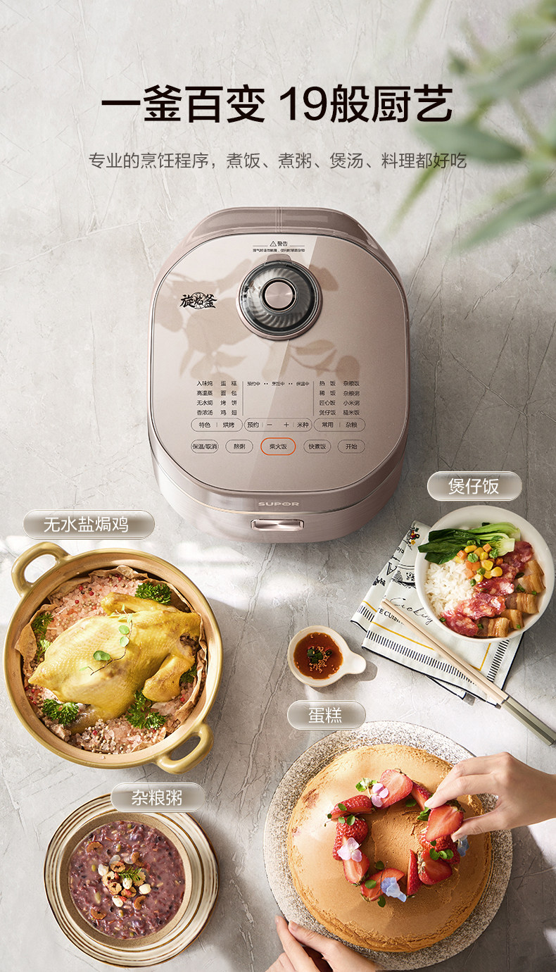 Supor Rotary Flame Cooker, Multi-Functional Non-Stick Rice Cooker for Home Use, Ih Far-Infrared, Large Capacity Cooking Pot