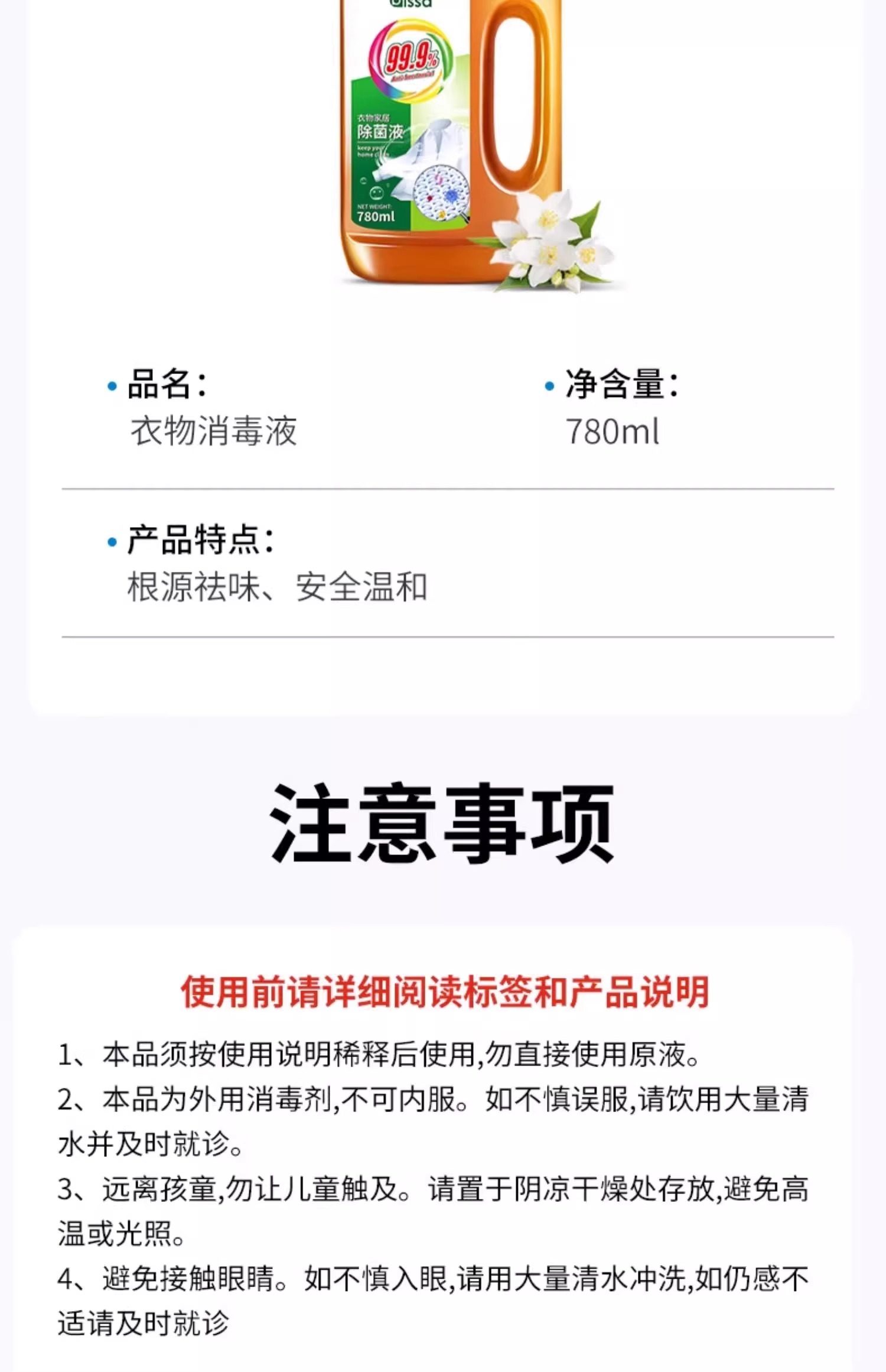 | Fragrance | [Trial Pack]1 Bottle*780Ml✅The Most Important Thing Is Express Delivery,[Hot Selling Items]2 Bottles*780Ml✅Support Trial,[Best Value for Money]3 Bottles*780Ml✅Laundry + Disinfection,[Stock up with Peace of Mind]5 Bottles*780Ml✅Worry-Free All Year Round |