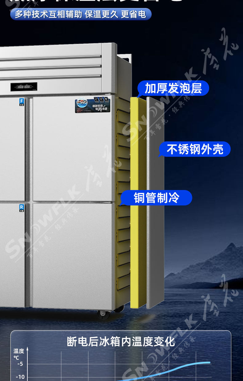 Snowflake First-Class Energy-Efficiency Four-Door Refrigerator Commercial Four-Door Freezer Kitchen Refrigeration and Freezing Six-Door Upright Freezer