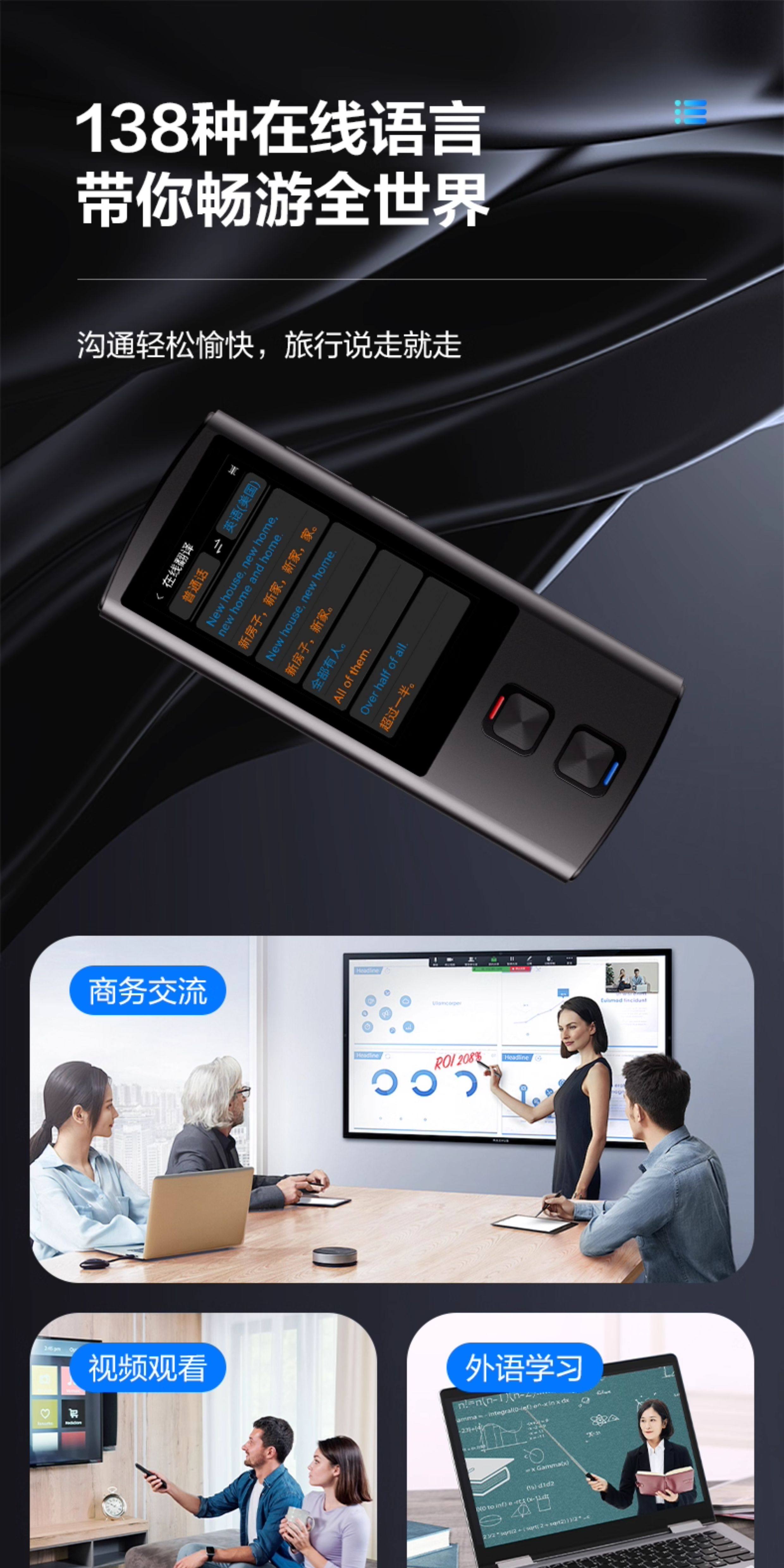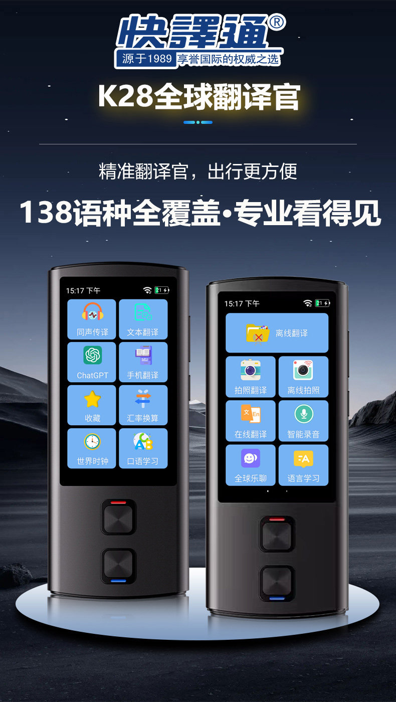 Quick Translator K28 Portable Instant Translator Simultaneous Interpretation 4.0Ai Global Multi-Language Multi-Language Translation for Various Industries Travel Abroad Oral Voice Translation Subtitles Photo Translation Magic Device