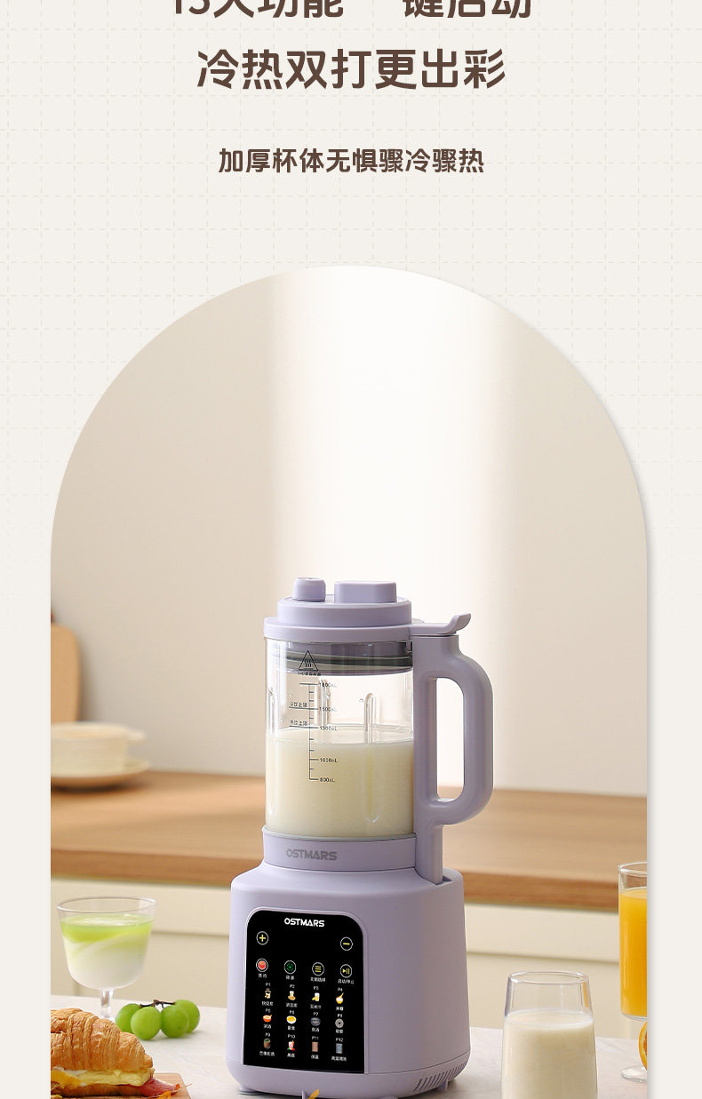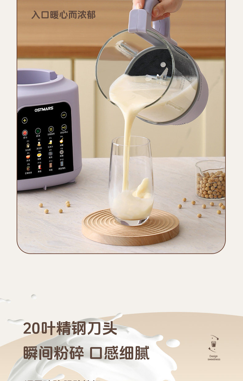 German Ostmars Blender for Home Use, Large Capacity, Fully Automatic, Low-Noise, Multifunctional Soy Milk Maker, No Filtering Needed