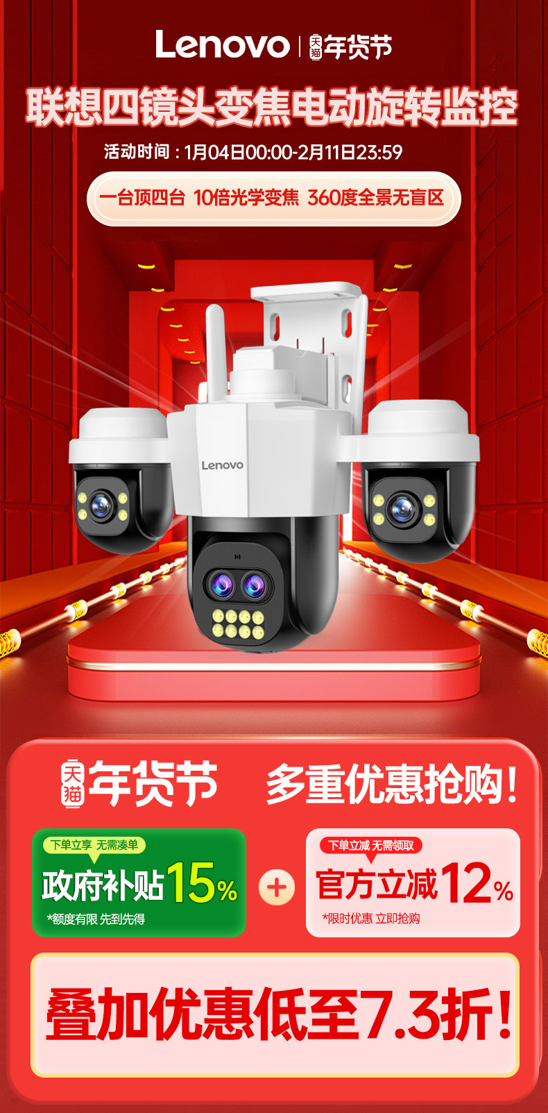 Lenovo Camera 360-Degree No Blind Spots Home Use Mobile Phone Remote No Network Required Monitor Outdoor High-Definition Night Vision