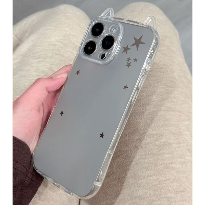 Casual Cat Ears and Stars Design for Holding Photos, Suitable for Apple 17/16Pro Phone Case iPhone 15 /14 Transparent 13/12 Simple 11 Soft Case