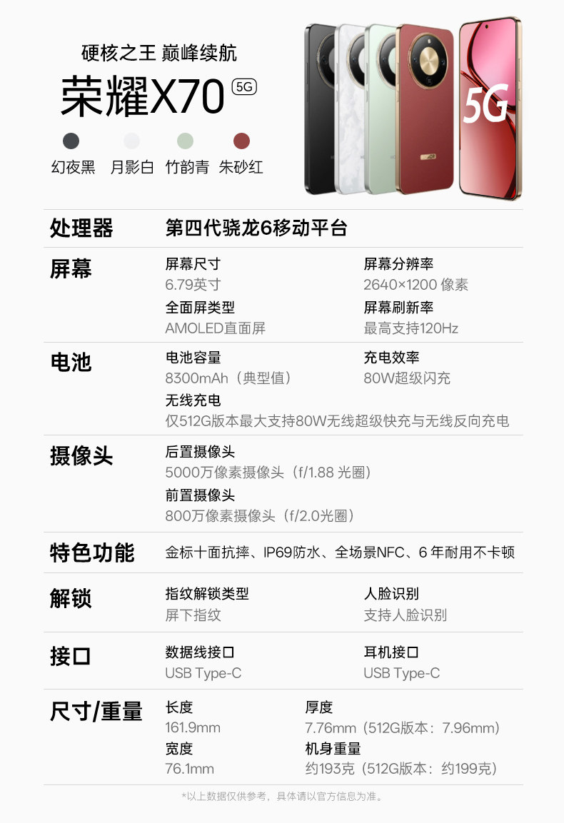 New Mobile Phone Honor X70 12+512Gb Gold Standard Ten-Sided Drop-Resistant 5g Eye-Protection Straight Screen Full Network Flagship Phone Ip69 Waterproof Long Battery Life All-Scenario Nfc Student Smartphone X70I