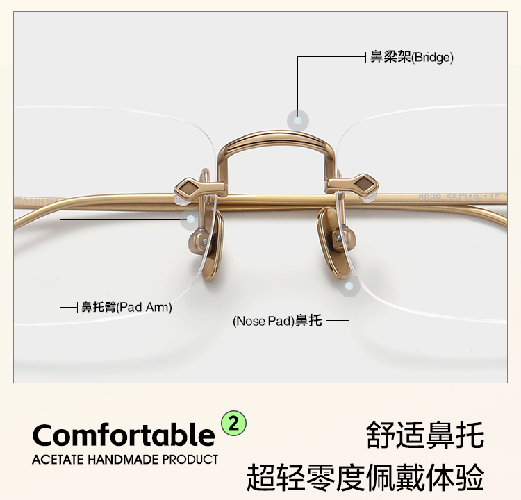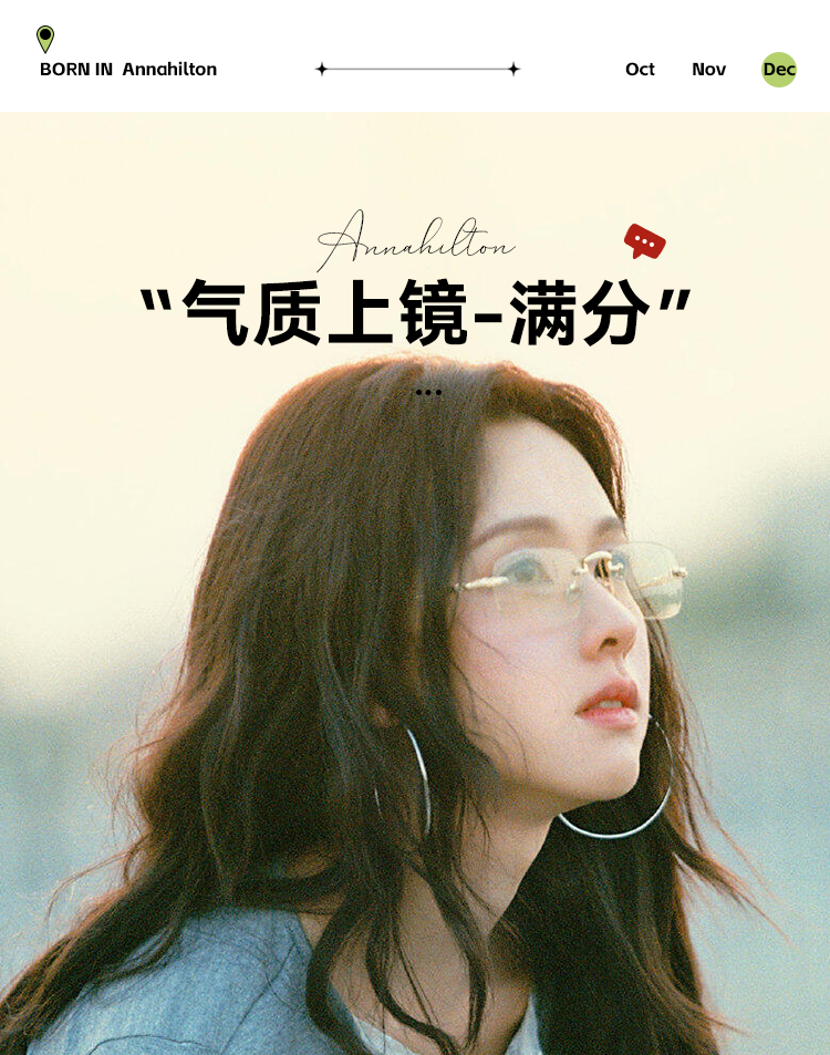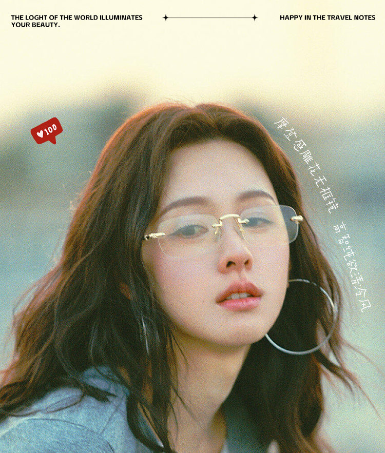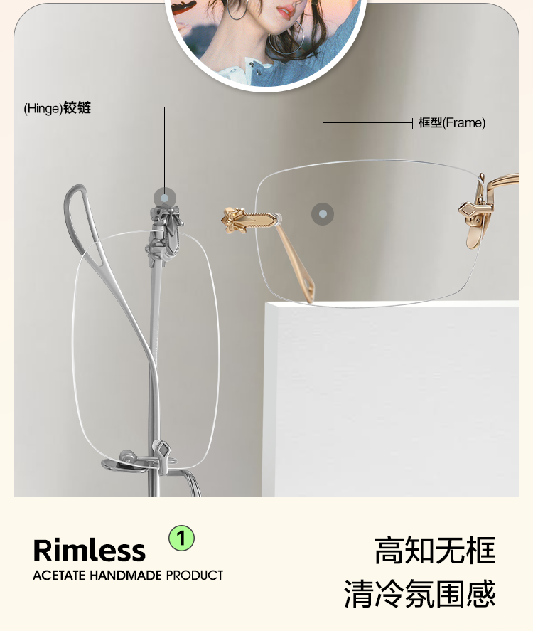 Malark&Annahilton Chen Duling Rimless Glasses, Ultra-Light Pure Titanium, Myopia Prescription Available, Model Anna08099
