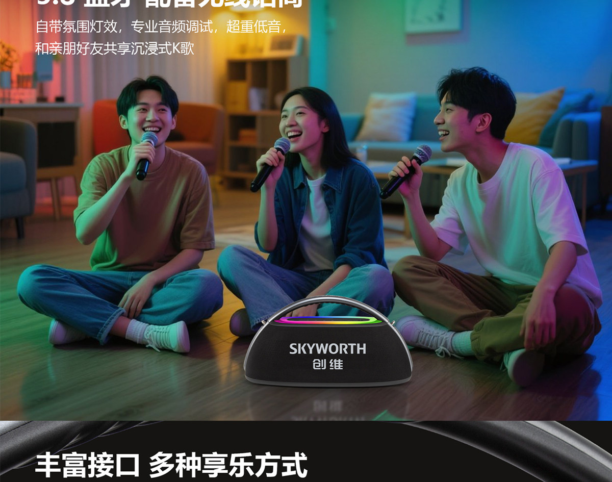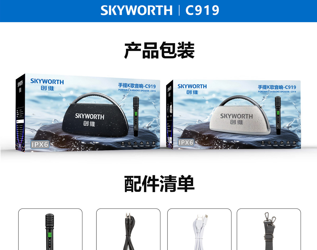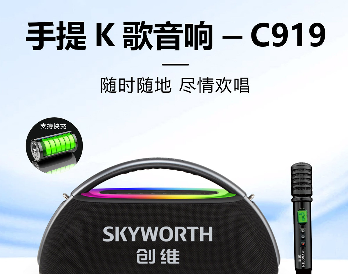 Skyworth C919 Portable Outdoor Karaoke Speaker with Microphone, Integrated Bluetooth Speaker, Subwoofer, High Volume, High-End