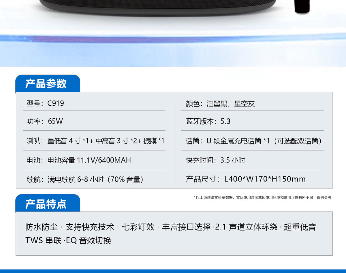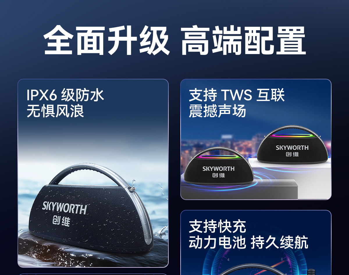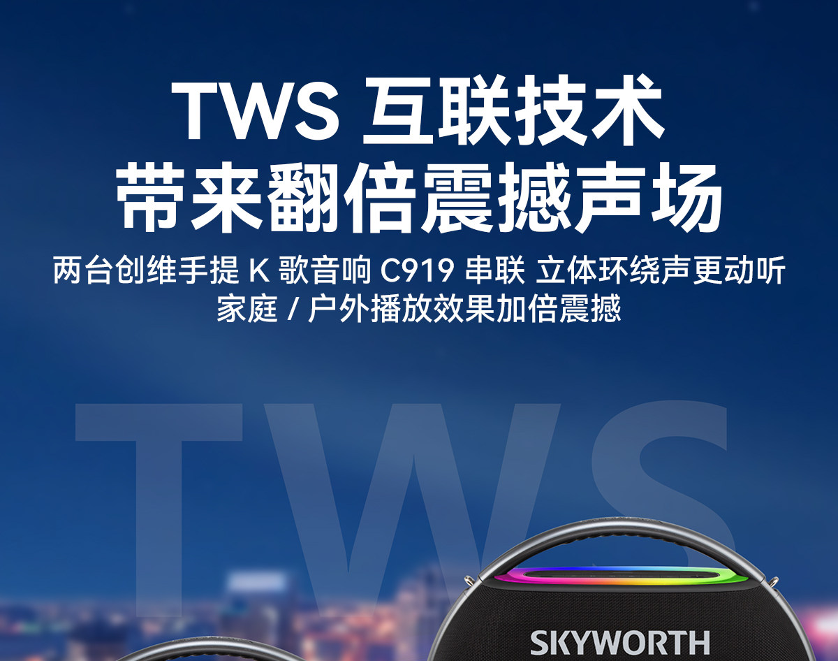 Skyworth C919 Portable Outdoor Karaoke Speaker with Microphone, Integrated Bluetooth Speaker, Subwoofer, High Volume, High-End