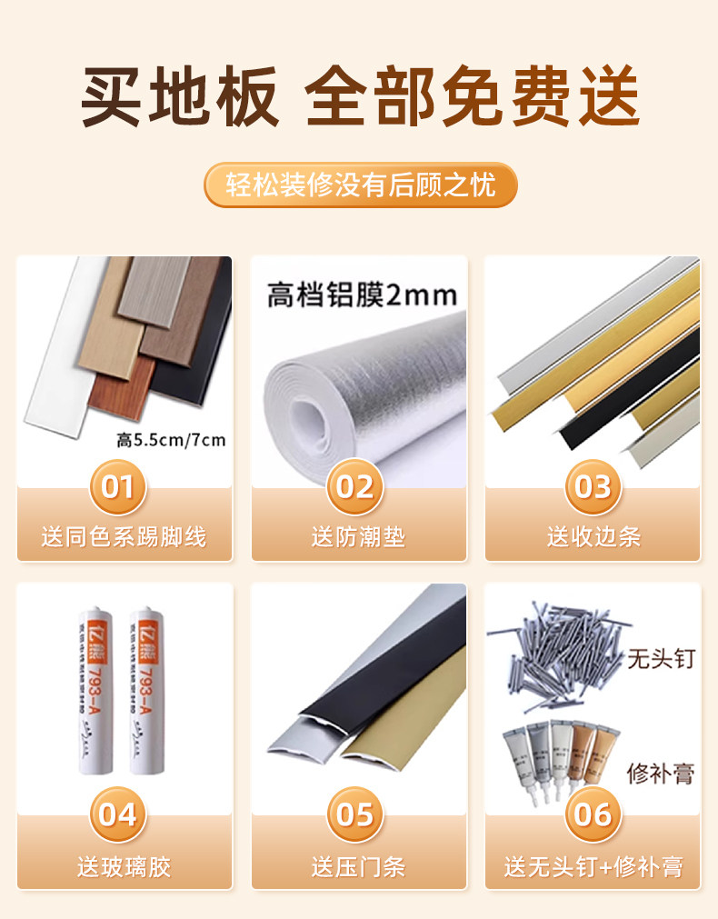 | Installation Auxiliary Material Package | Moisture-Proof Film + Edge Strip + Baseboard |