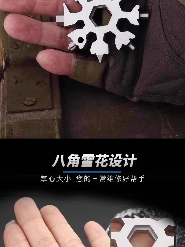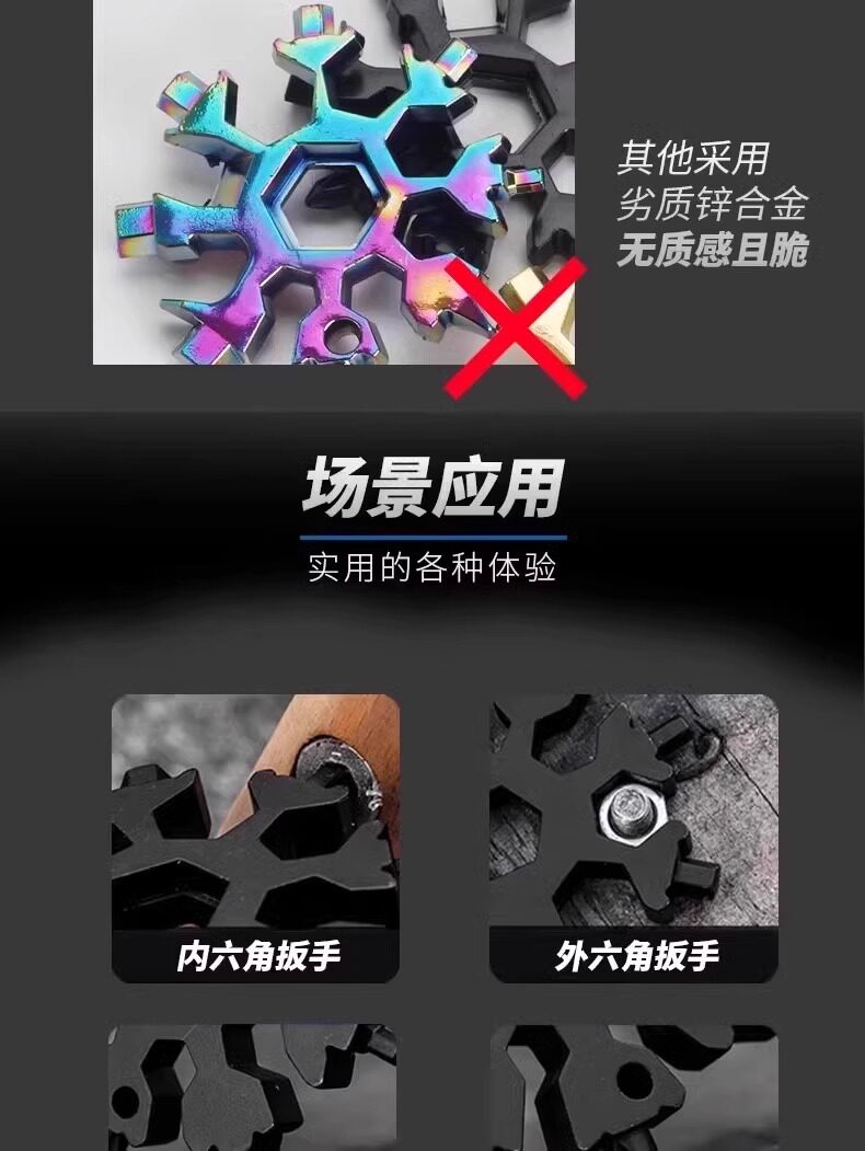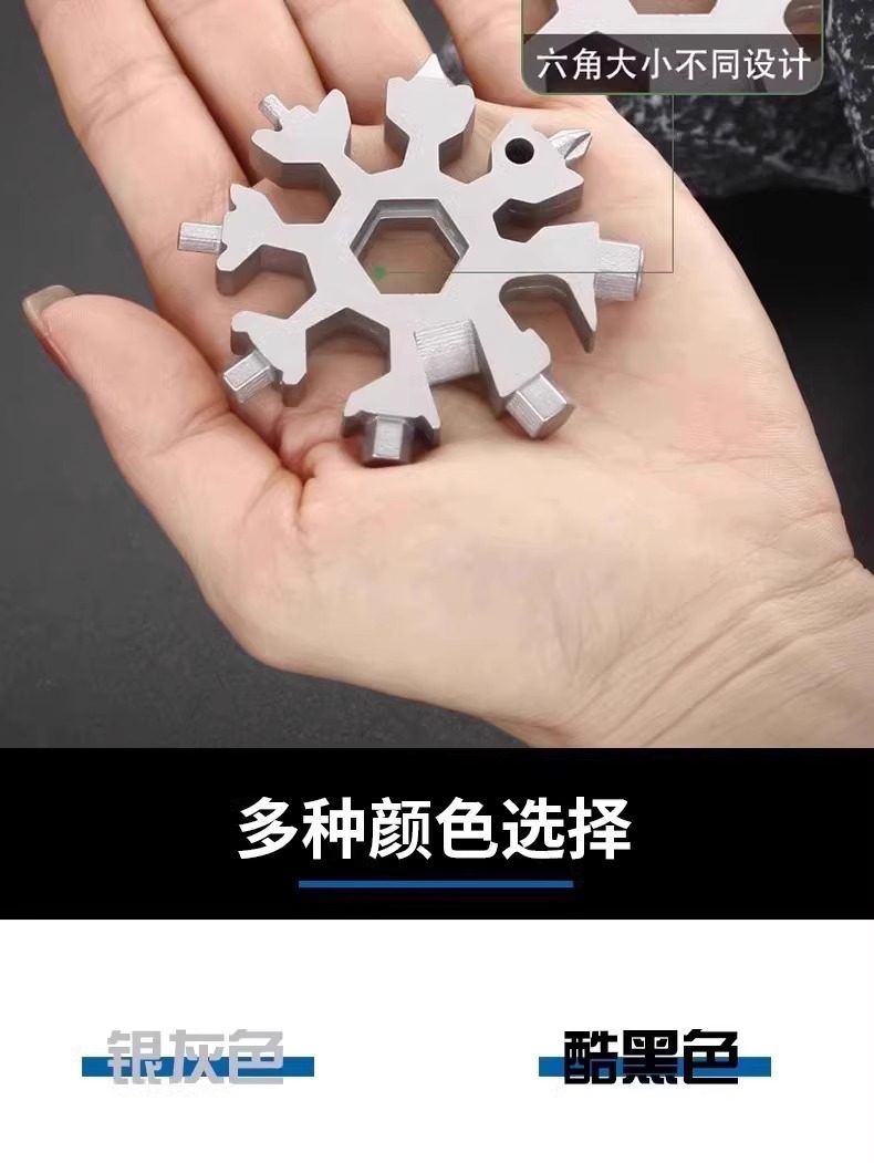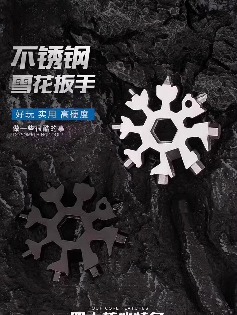 Multifunctional Stainless Steel Snowflake Wrench Screwdriver Keychain Stainless Steel Portable 18-in-1 Universal Wrench Convenient