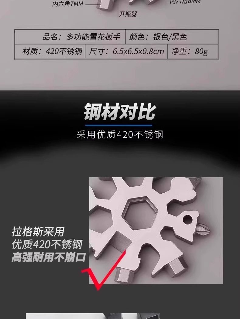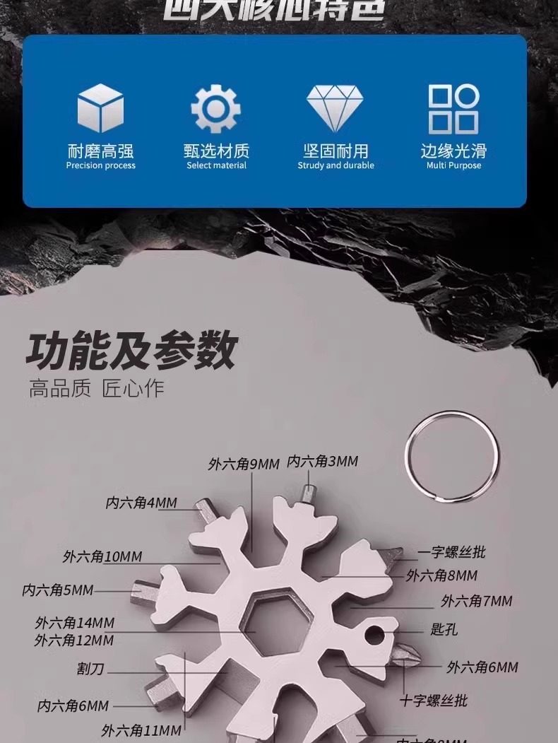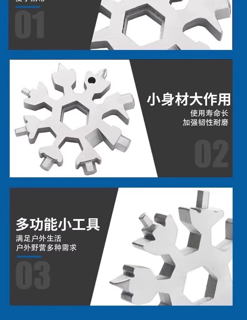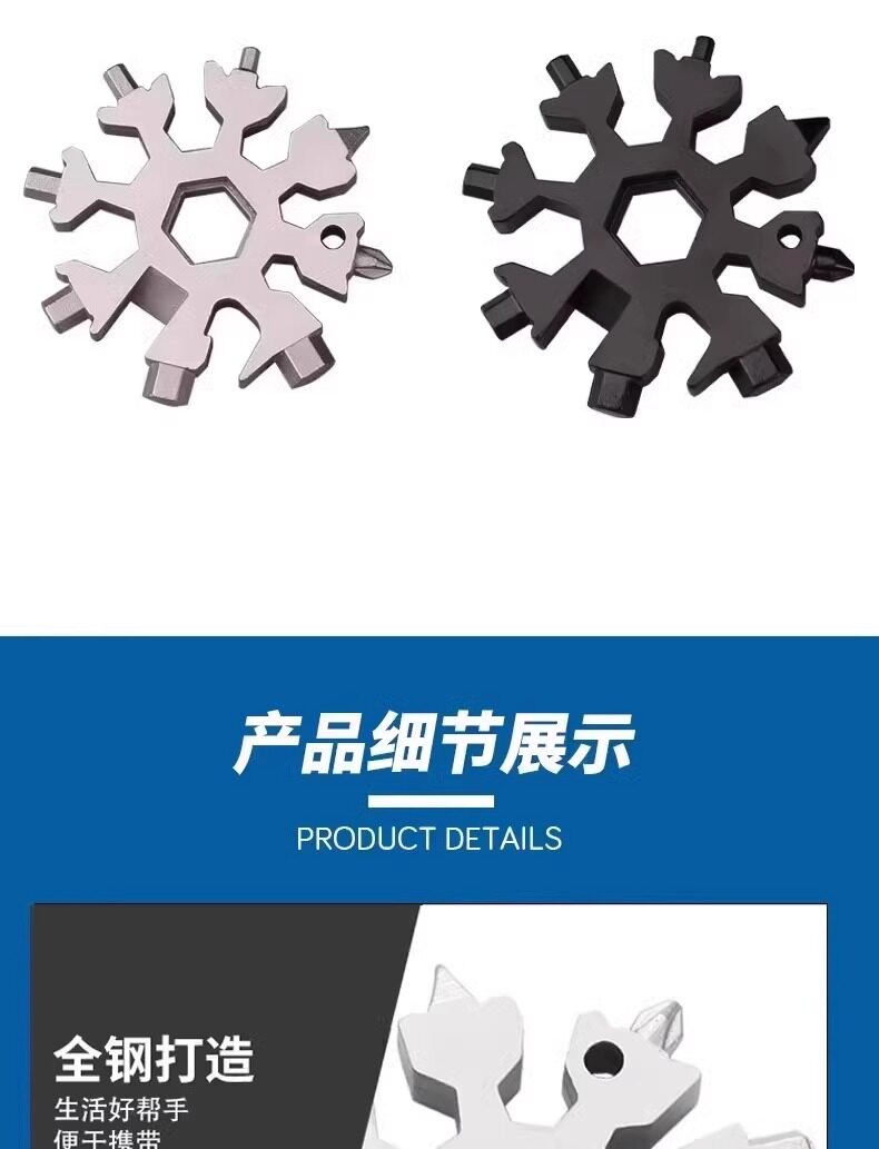 Multifunctional Stainless Steel Snowflake Wrench Screwdriver Keychain Stainless Steel Portable 18-in-1 Universal Wrench Convenient