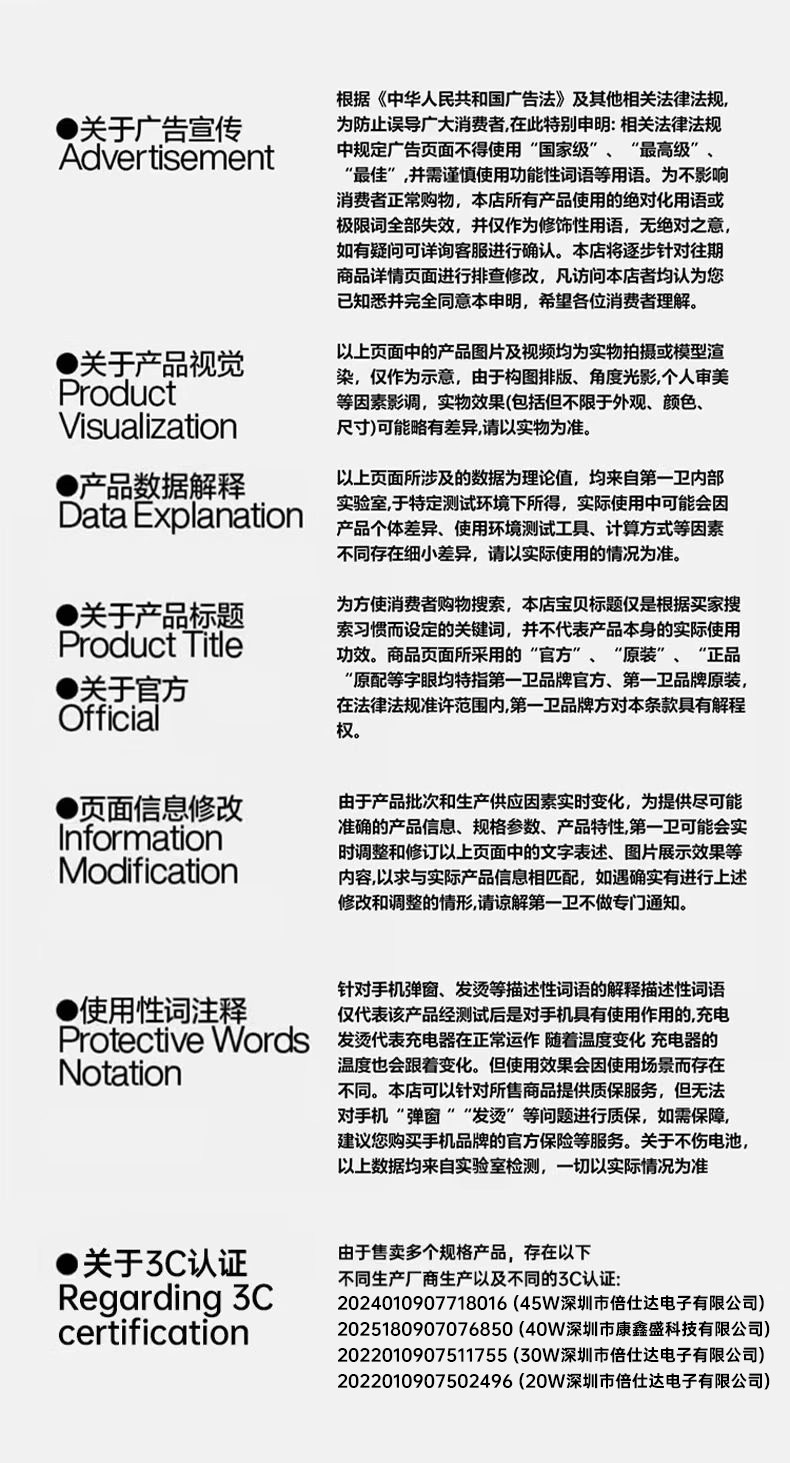 | Model | [National 3C Certification] Applicable to Apple 45W Fast Charging |