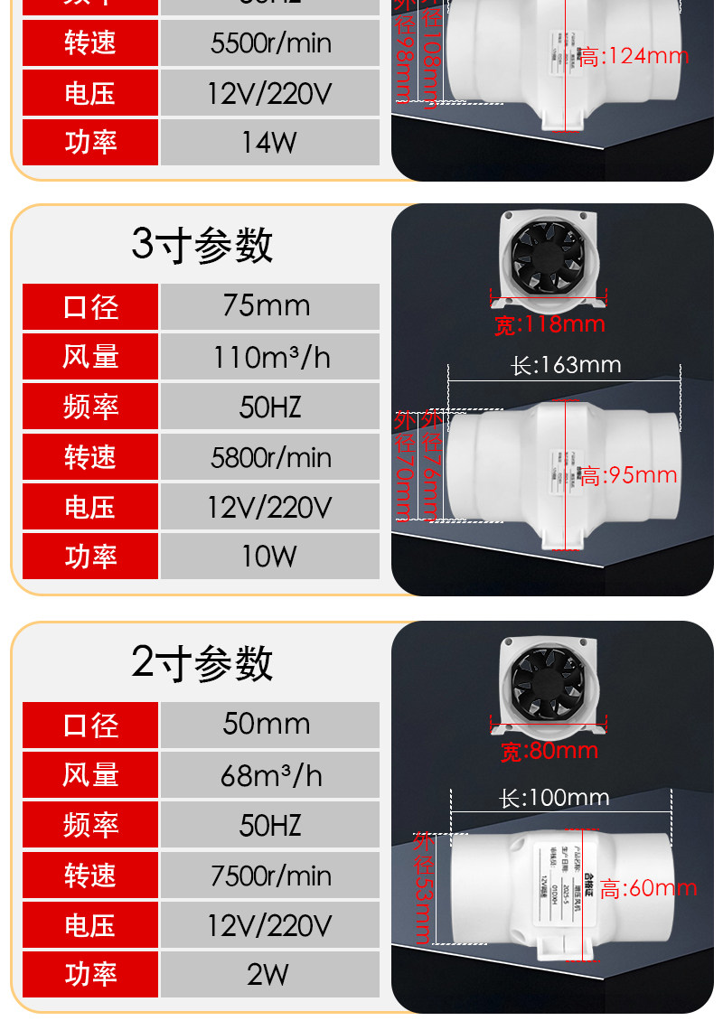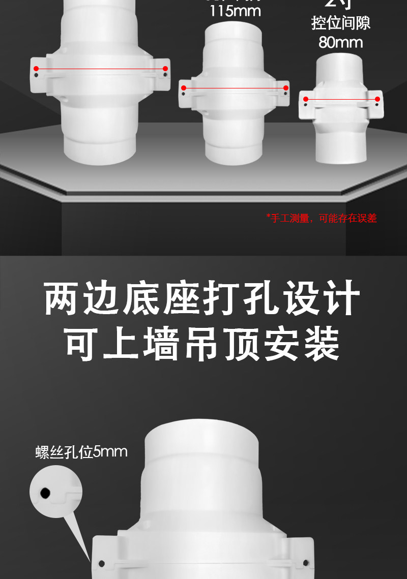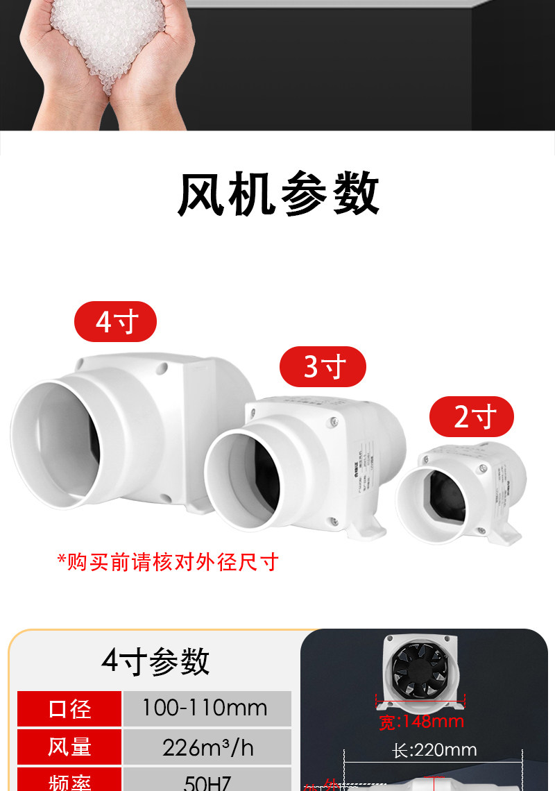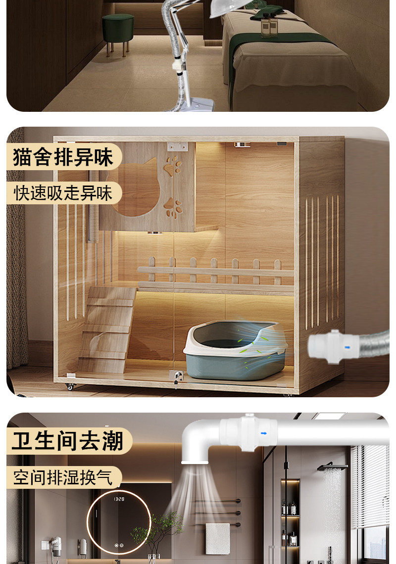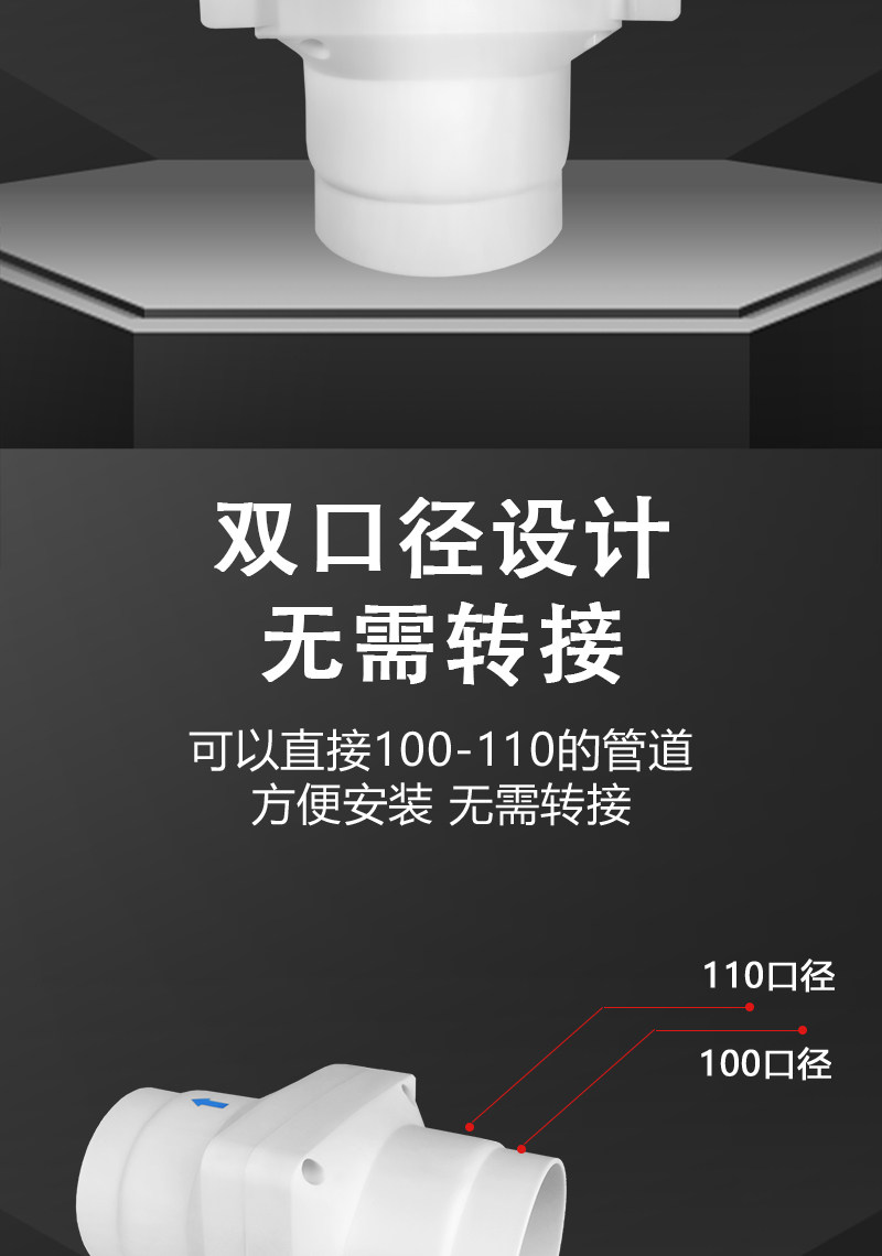 Small Duct Fan Exhaust Fan 5075110Pvc Moxibustion Bathroom Air Conditioning Hole Booster Ventilation Fan Exhaust Fan