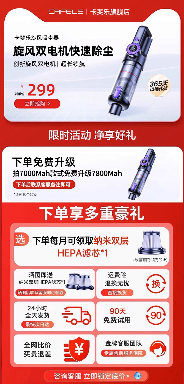 | Color Classification | [Top Cyclone Model] Dual-Purpose for Car and Homeâ 15000Pa Super Suction Powerâ Side Spin Dust and Gas Separationâ 80Min Strong Battery Life,[Flagship Max Cyclone Model] Dual-Purpose for Car and Homeâ 16000Pa Super Suction Powerâ Side Spin Dust and Gas Separationâ 100Min Strong Battery Life.,Deluxe Edition [Upgraded Floor Brush] Top-Of-The-Line Powerful Suction Modelâ Home Cleaning Is More Worry-Free.,---Choose Any One to Enjoy the Following Rights---,Add to Favorites + Add to Cart = Enjoy Next-Day Deliveryâ Buy Today, Use Todayâ Contact Customer Service for Free Shipping Insurance,[Limited Time Gift] Order Today and Get a Complete Set of Home and Car Vacuum Cleaners,[2026 Epic New Product] Dual Motors â Dust and Gas Separation System â Intelligent Variable Frequency Vacuum Cleaner..,[1-Year Nationwide Joint Warranty] Free Replacementâ 90 Days Free Trial.,The Suction Power Is Real and Measurableâ Body Marked Parametersâ Patented Dust Removal Award-Winning Modelâ Absorb Cat Hairâ Can Be Illuminated |