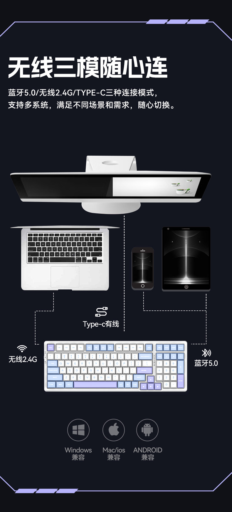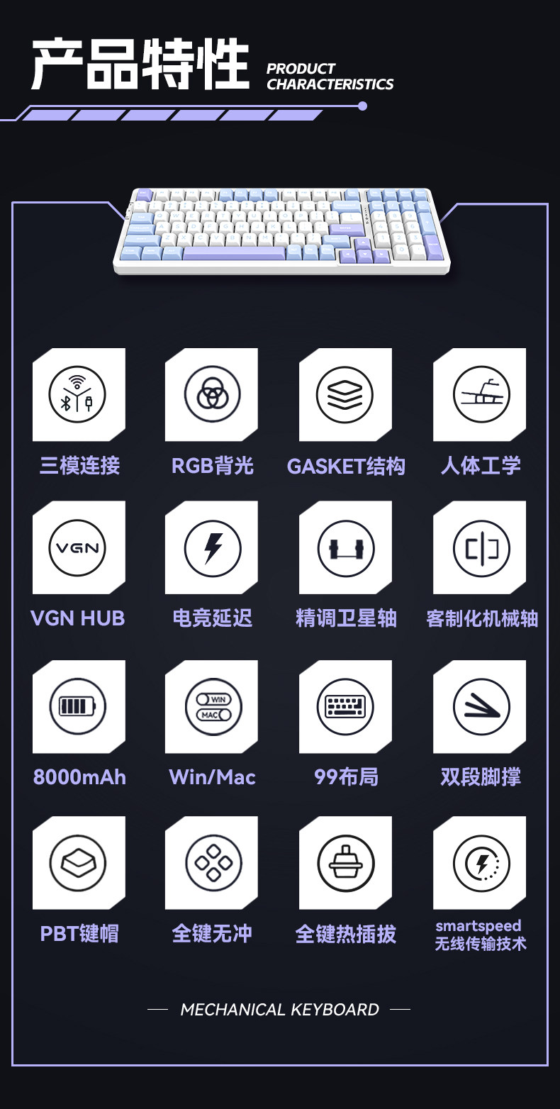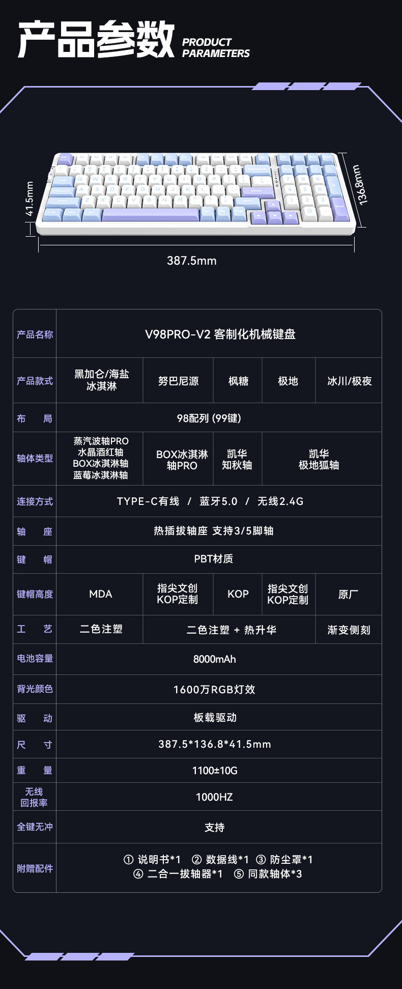 Vgn V98Prov2 Polar Fox Three-Mode Hot-Swappable Bluetooth Gasket Wireless Customized Gaming Mechanical Keyboard