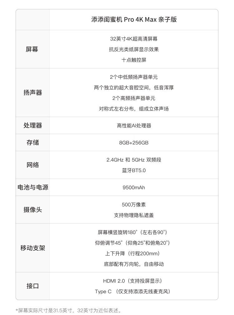 | Color Classification | ă256Gă 32inch Pro 4K Max[Inquiry Gift],ă256Gă 32inch Pro 4K Max Family Edition [Inquire for a Gift] |