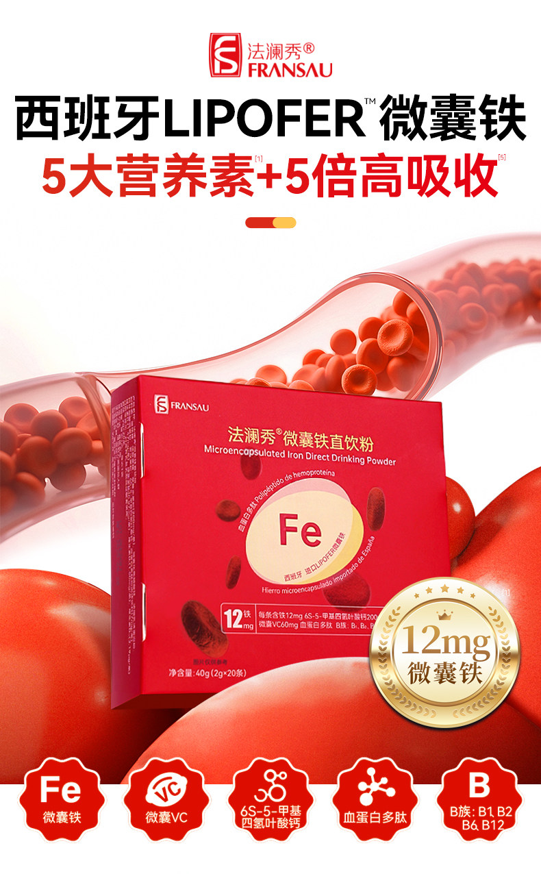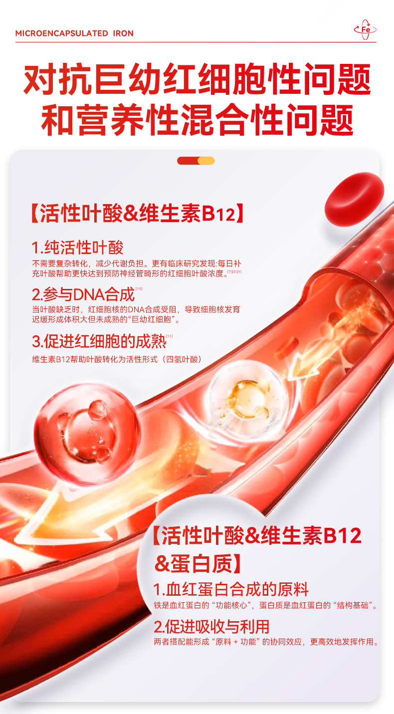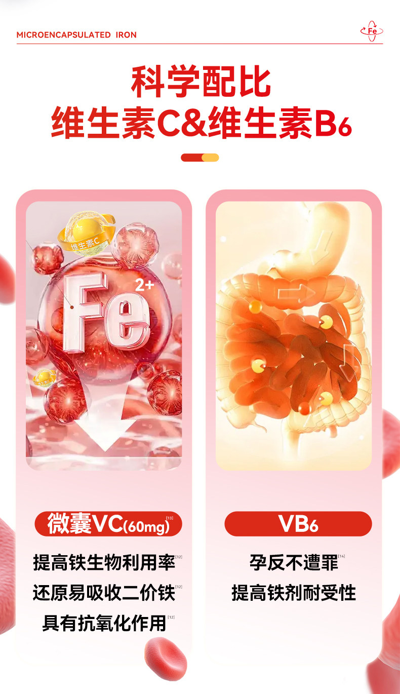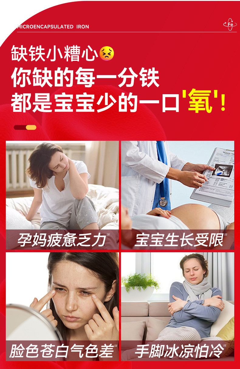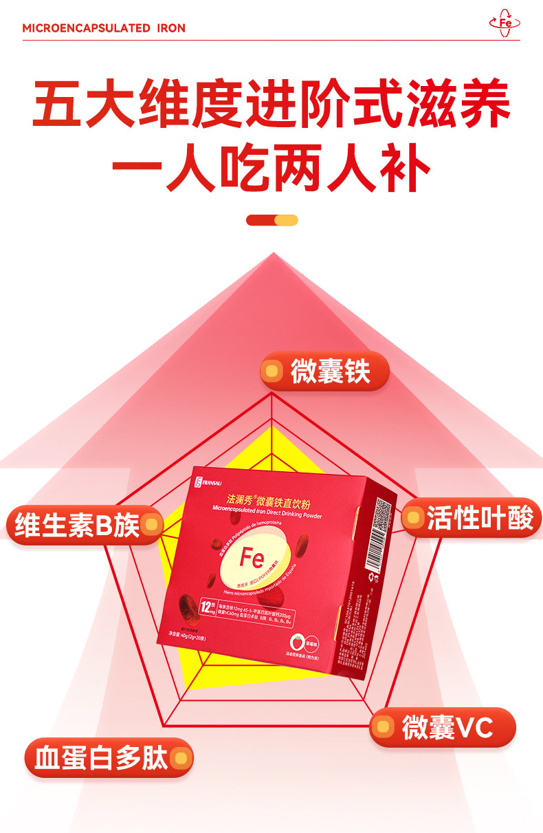 Falanxiu Iron Supplement for Pregnant Women, Iron Deficiency, Active Folic Acid, Women's Vitality, Blood, Lactation Period, Vitamins, Non-Gummy Supplement