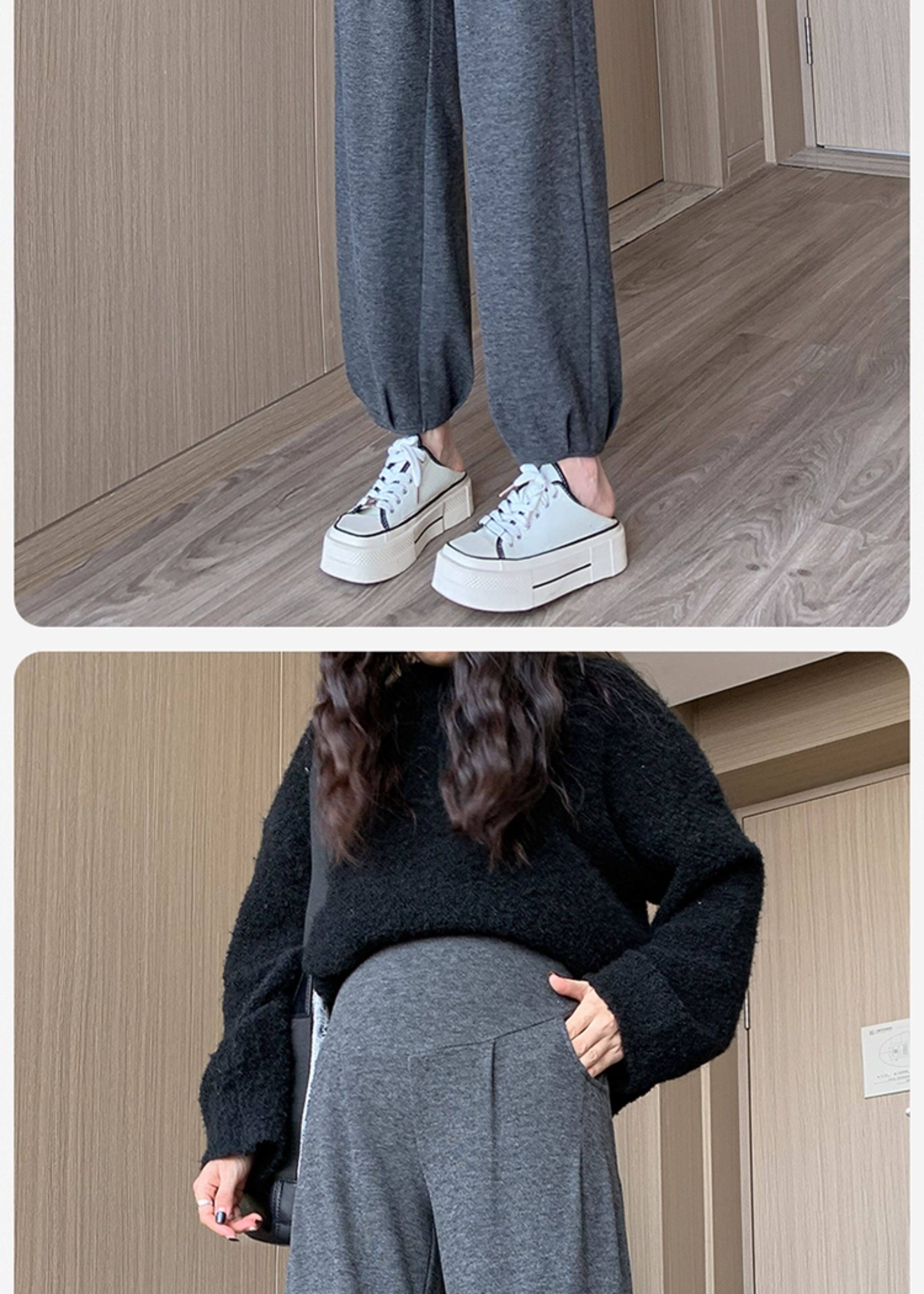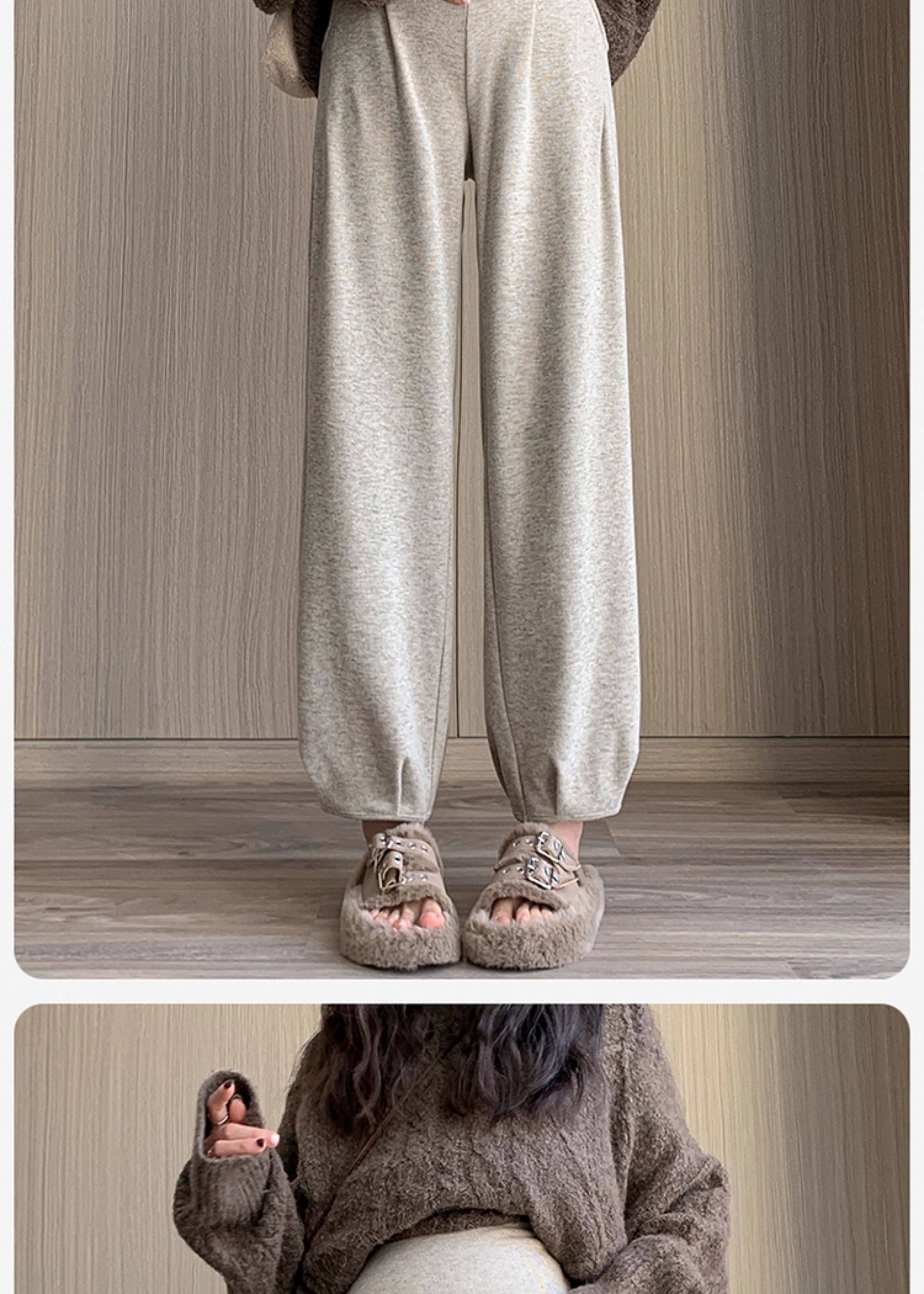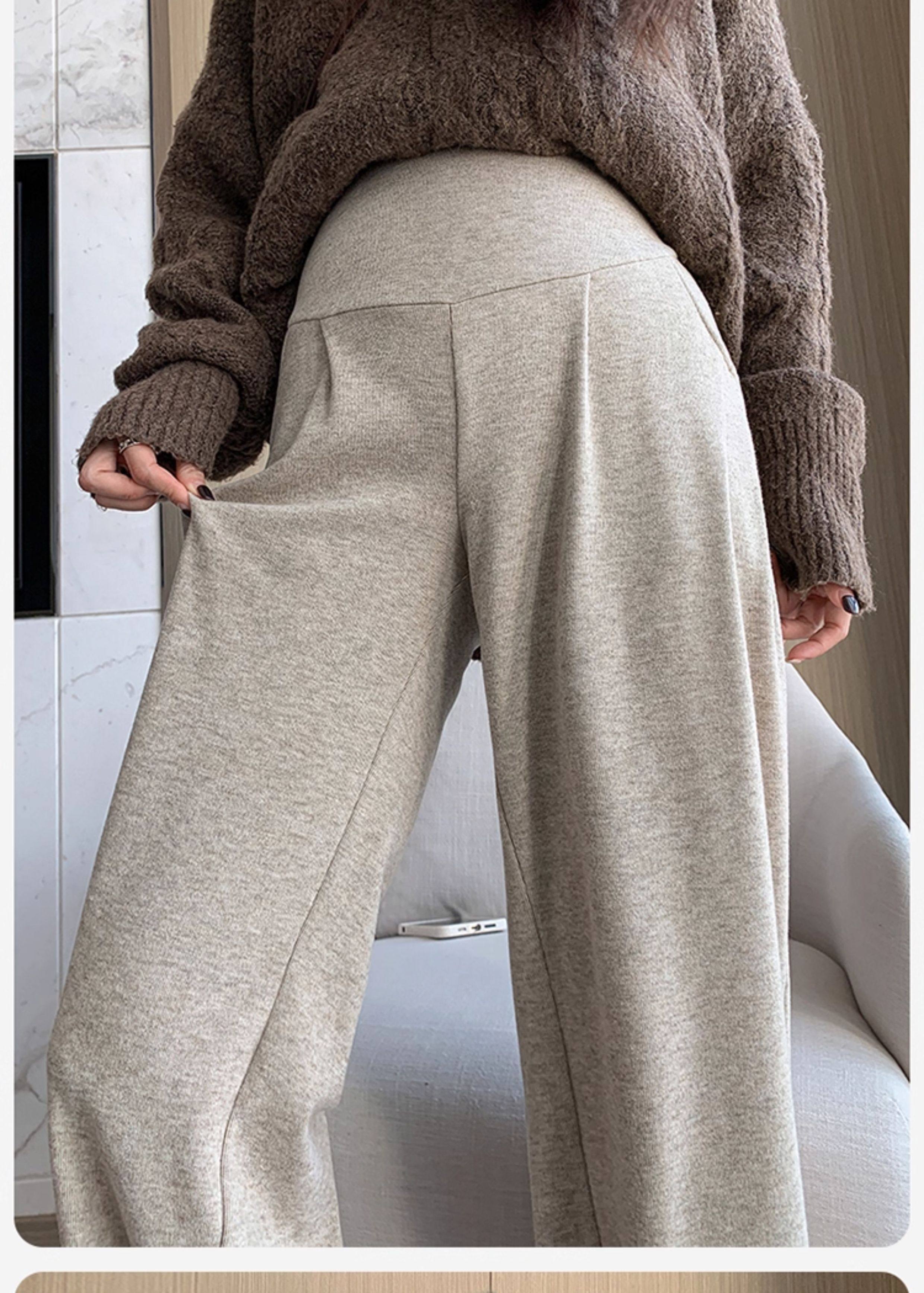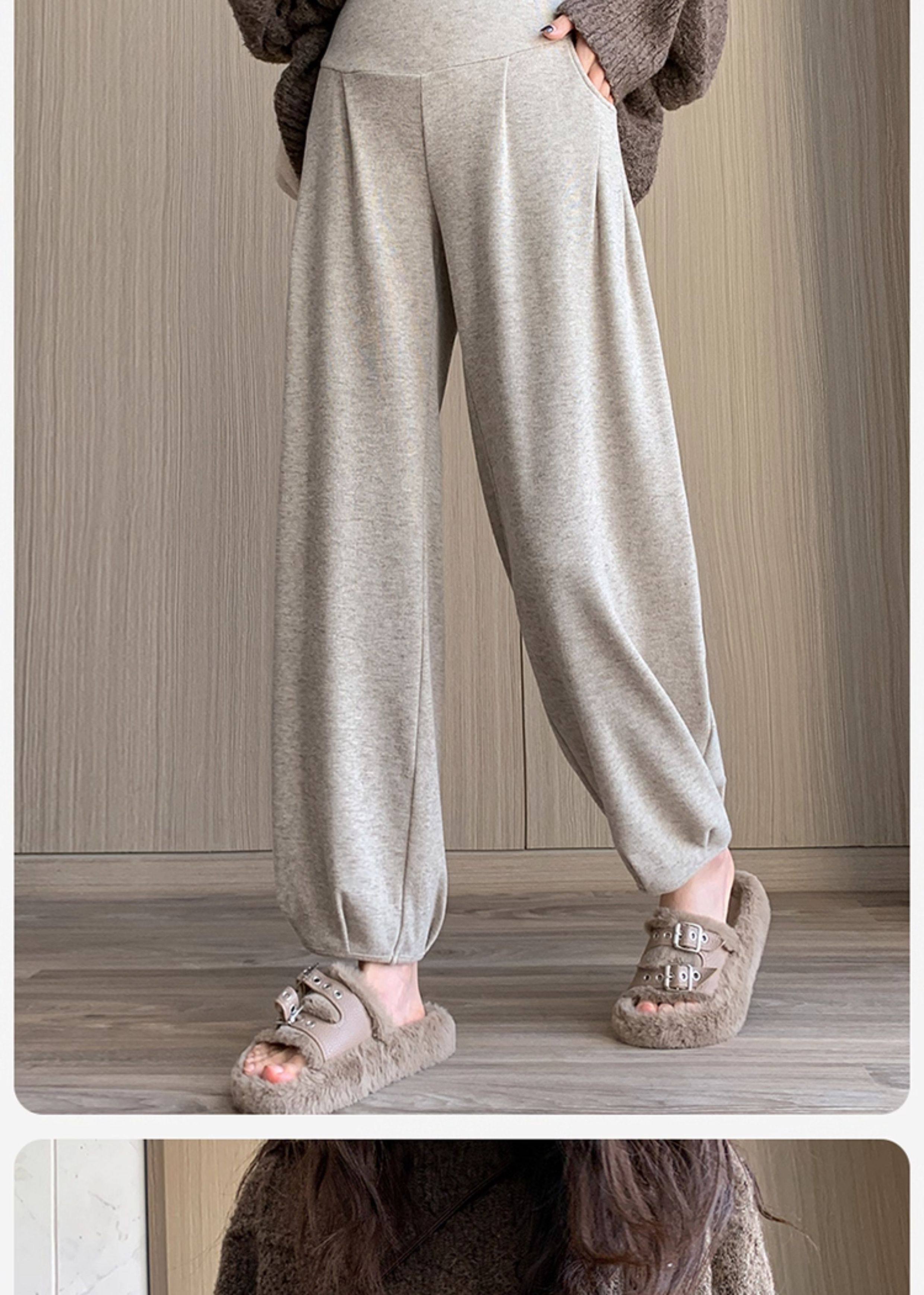 Maternity Pants for Autumn and Winter, Fleece-Lined and Thickened, Suitable for Wearing Outside, Casual Jogger Pants for Winter Pregnancy, Non-Constricting on the Belly, Cuffed Sweatpants