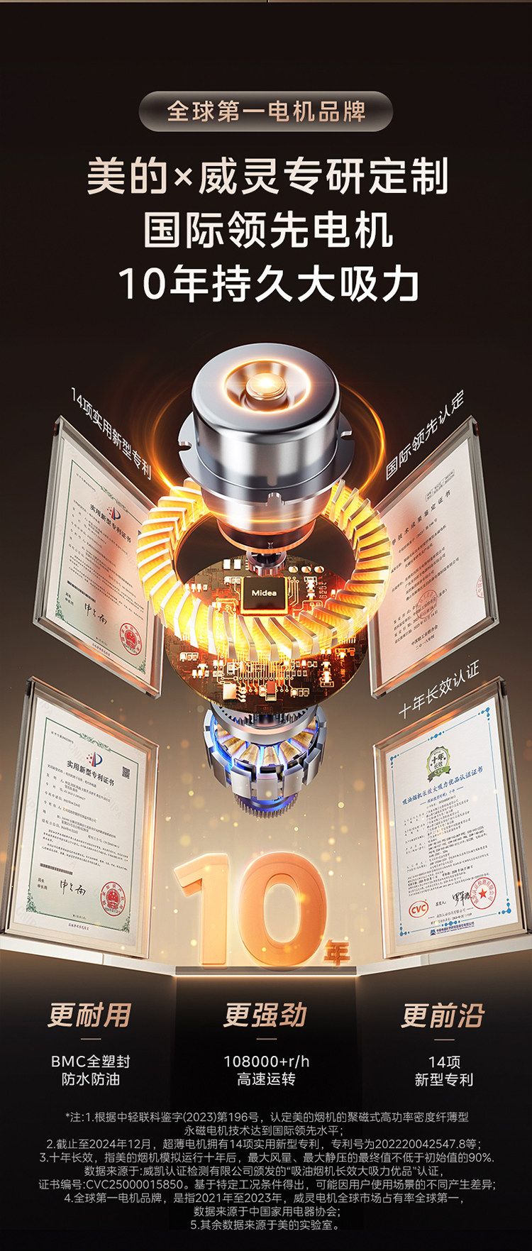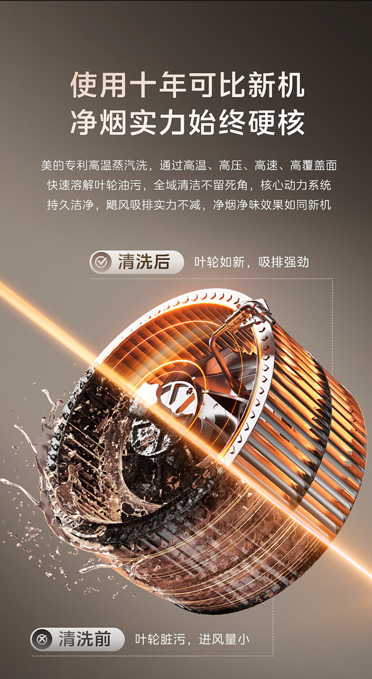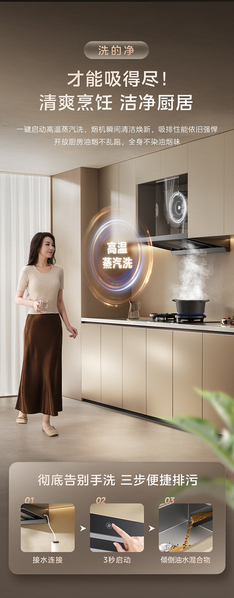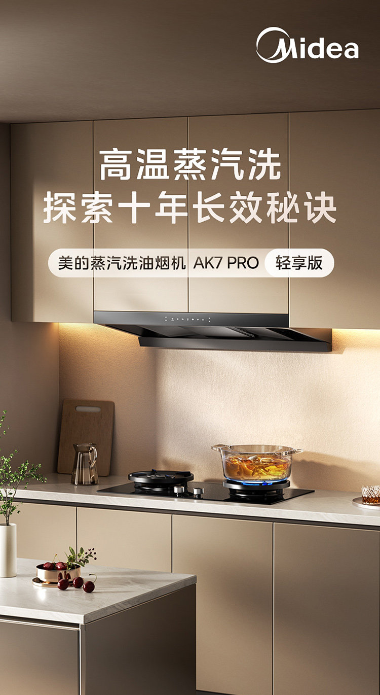 Midea Ak7Pro Light Edition Kitchen Range Hood for Home Use, High Suction, Ultra-Thin Ak7T Steam Cleaning Oil Absorber