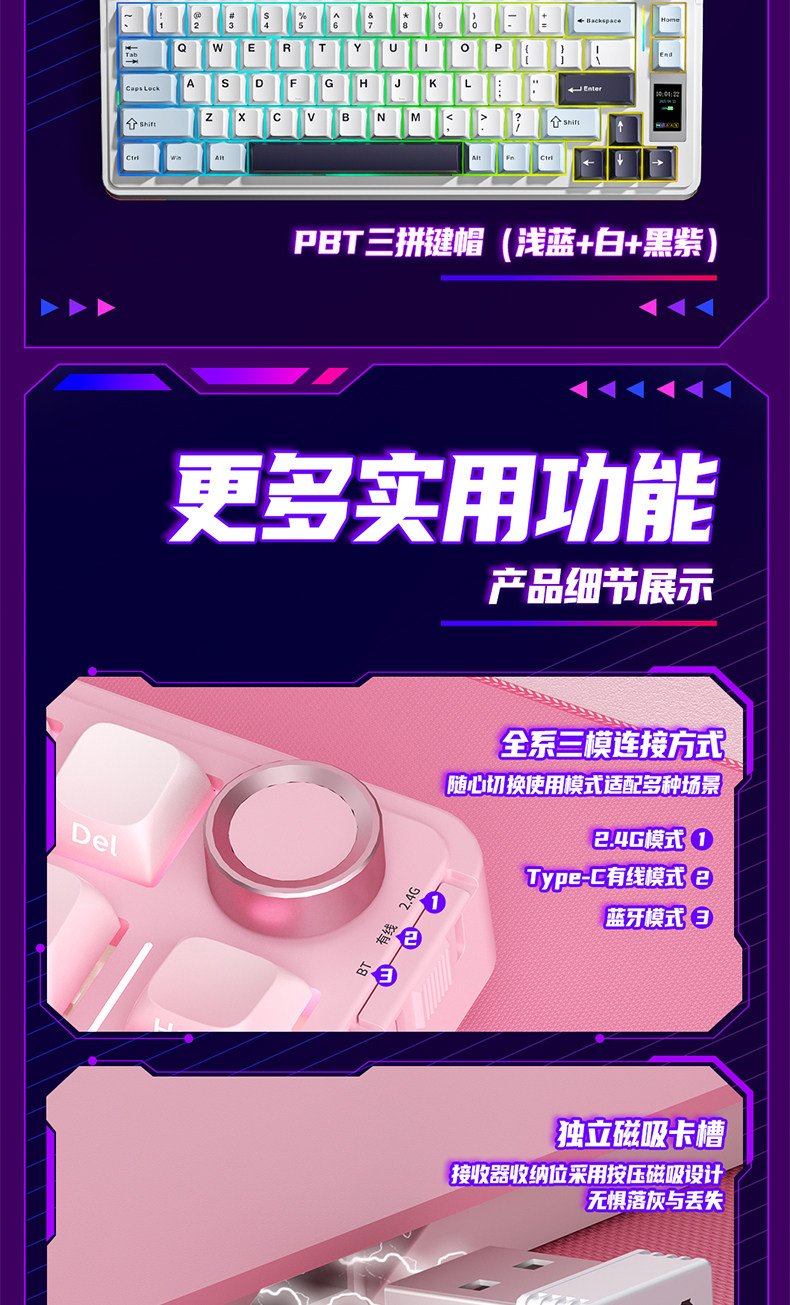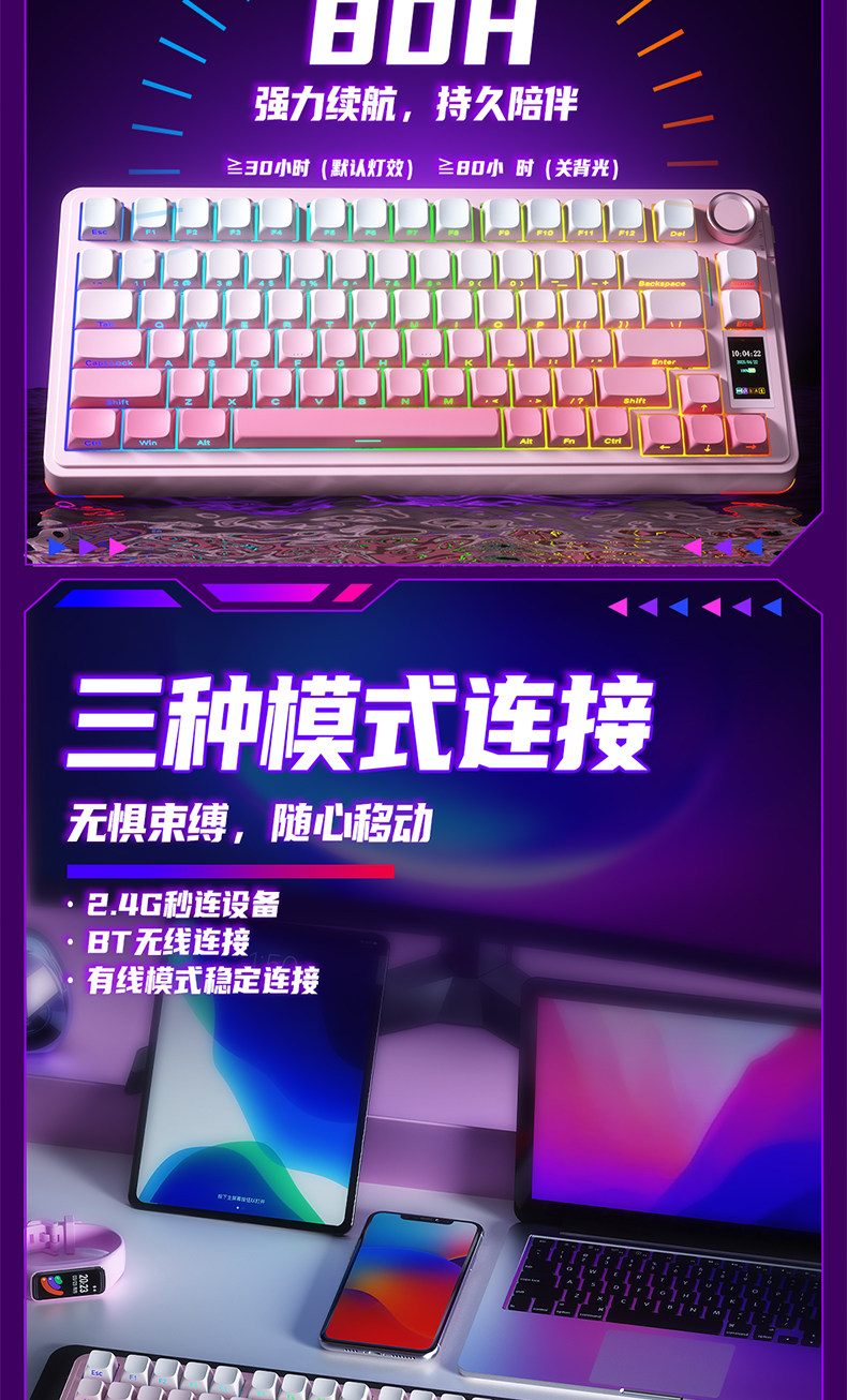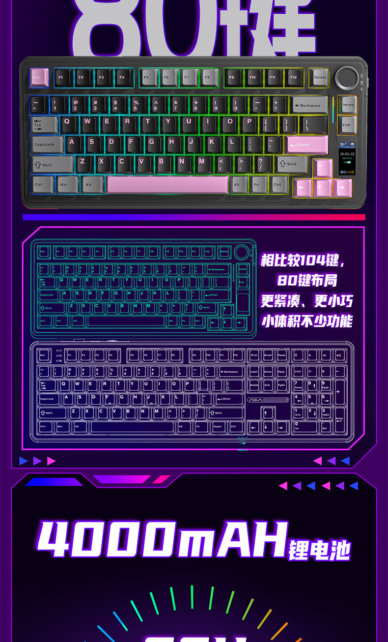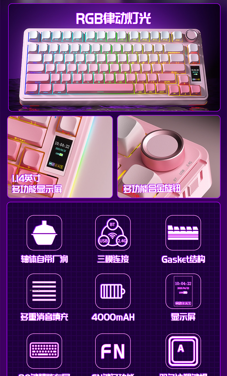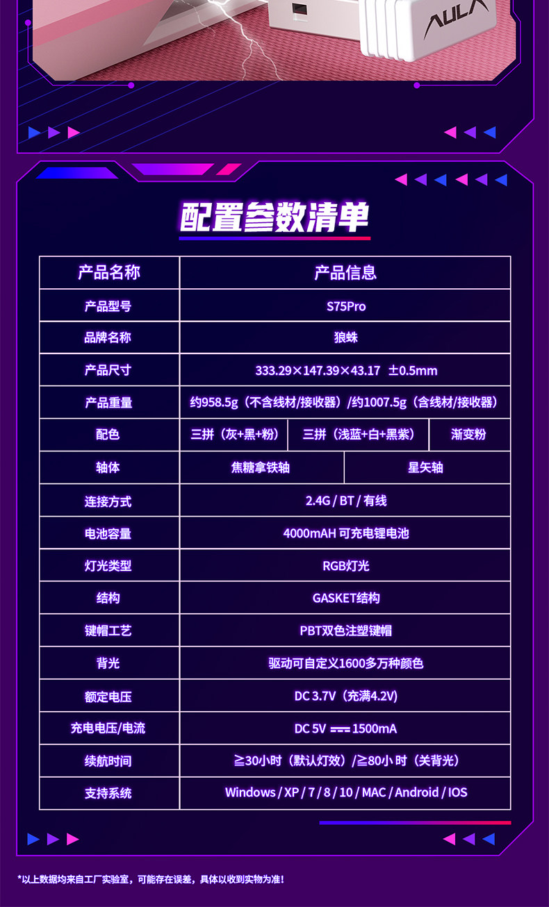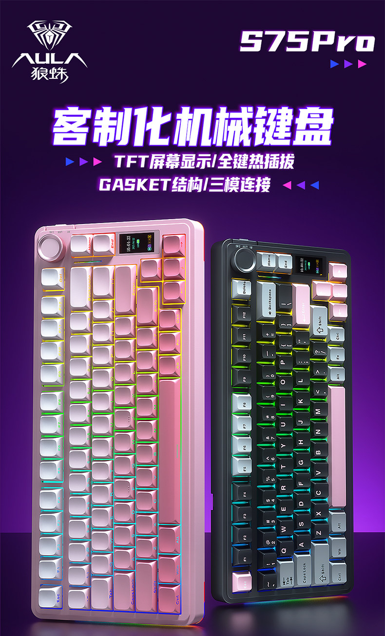 Wolf Spider S75Pro Wireless Three-Mode Mechanical Keyboard Customized Gasket Structure for E-Sports, Gaming, and Office Use