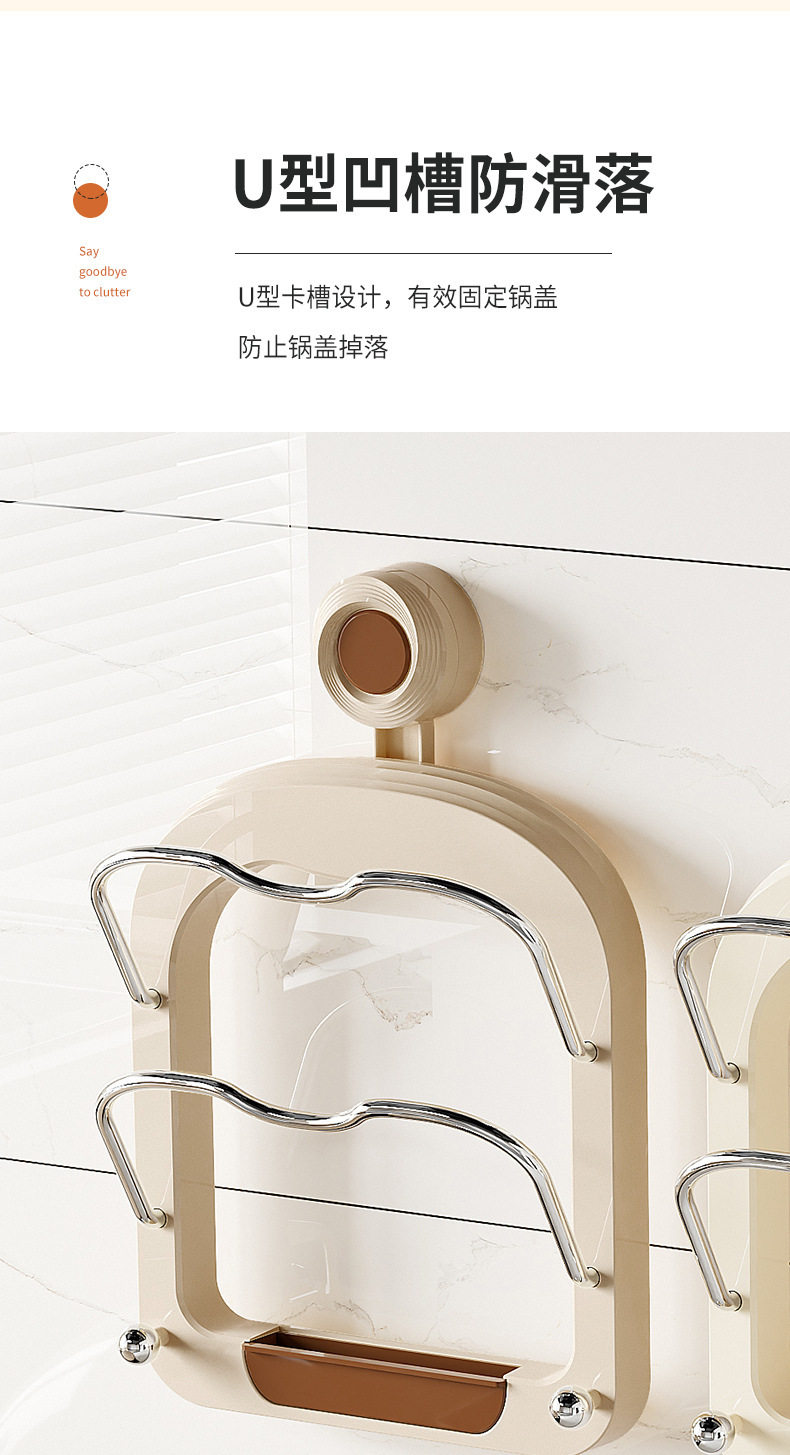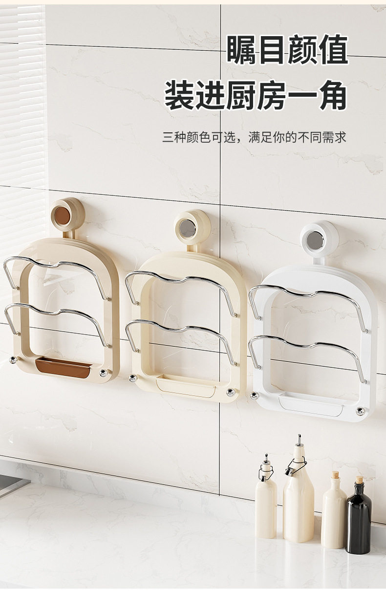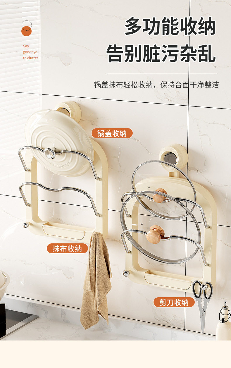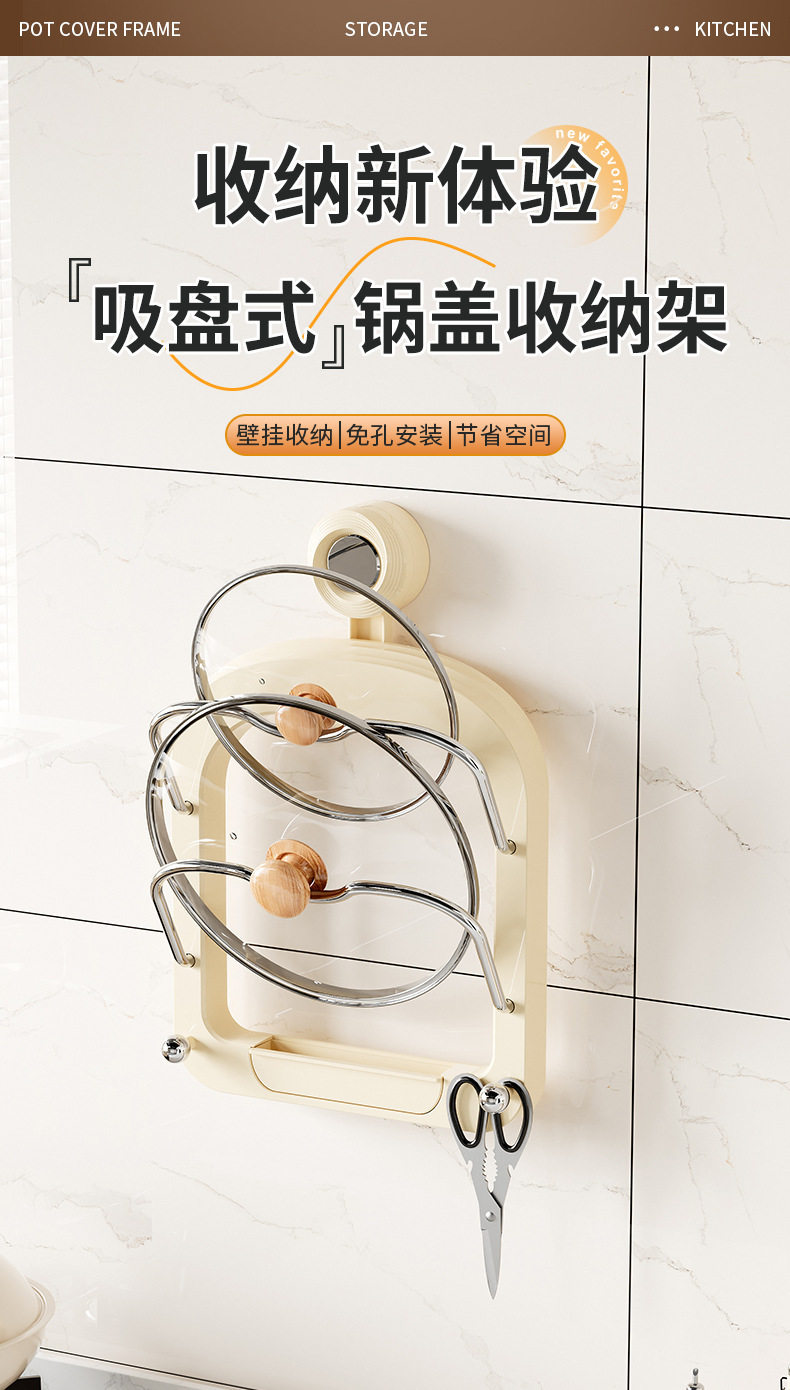 No-Drill Suction Cup Double-Layer Pot Lid Rack Kitchen Storage Rack Wall-Mounted Cutting Board Holder Multifunctional Wall Storage