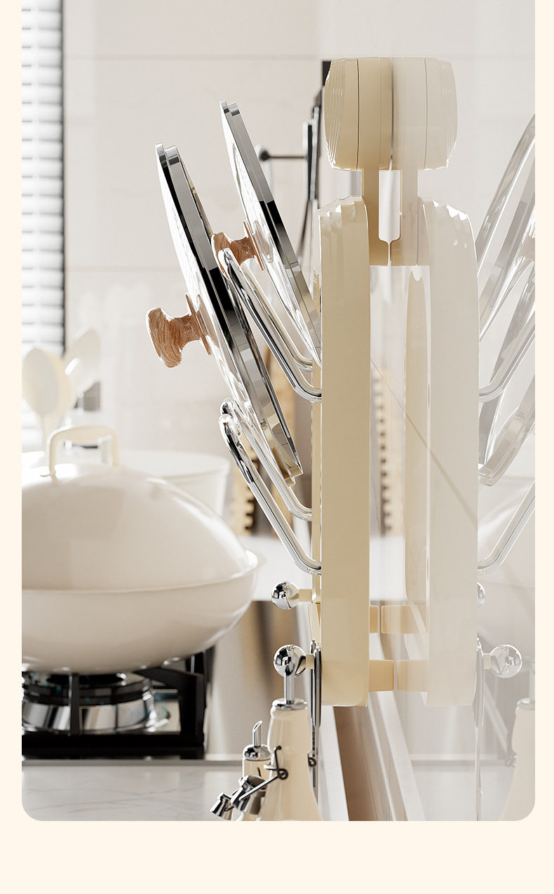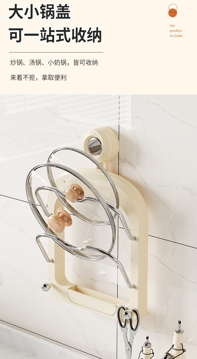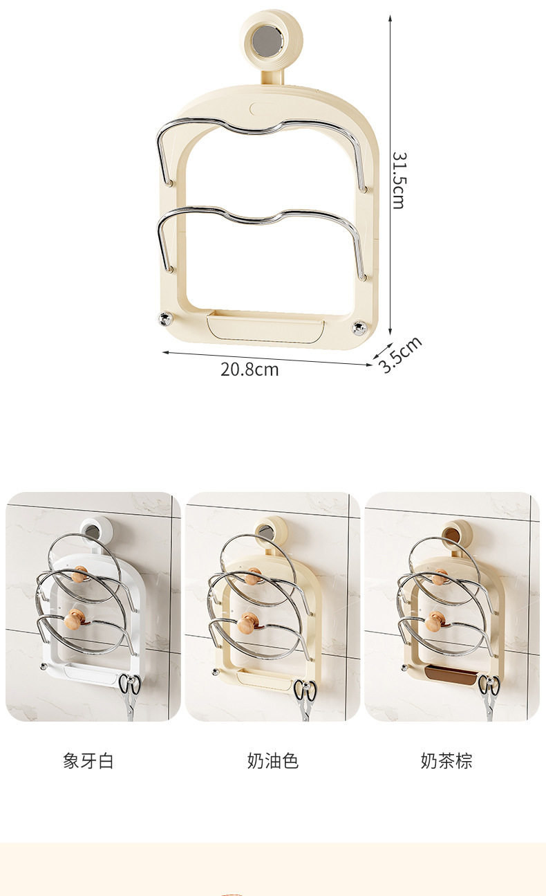 No-Drill Suction Cup Double-Layer Pot Lid Rack Kitchen Storage Rack Wall-Mounted Cutting Board Holder Multifunctional Wall Storage