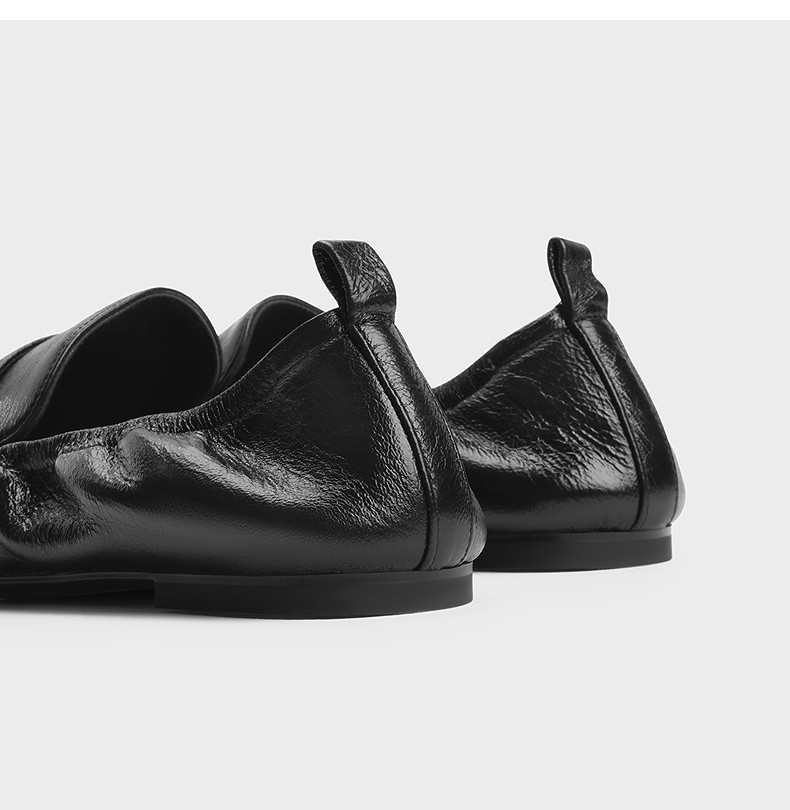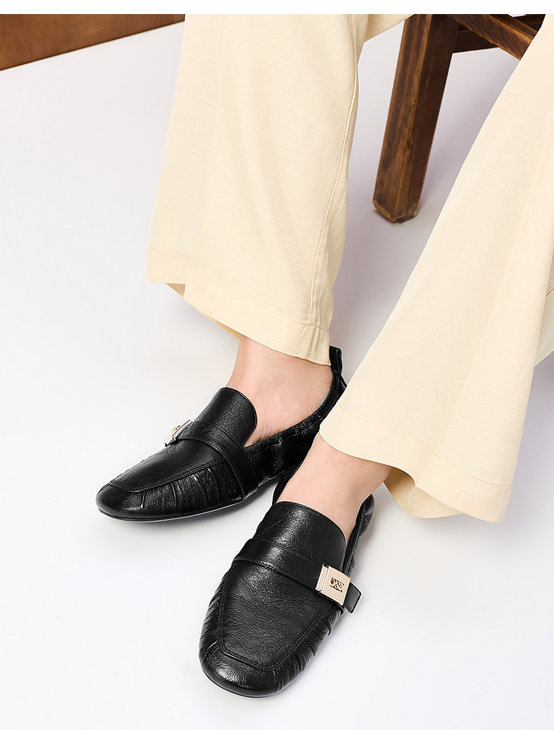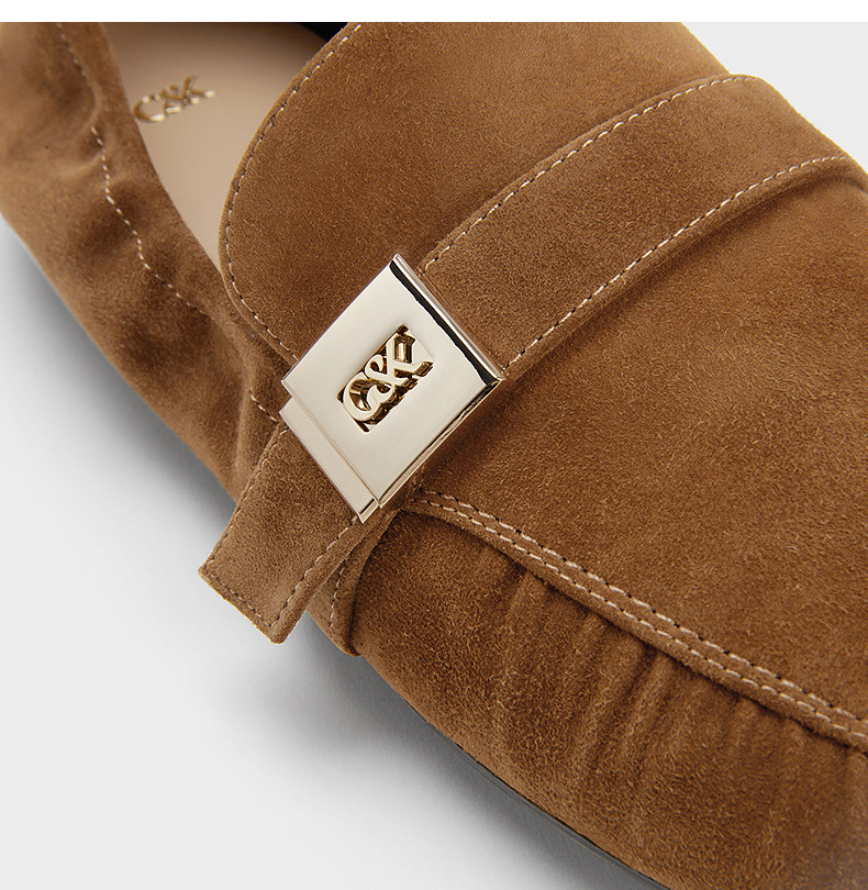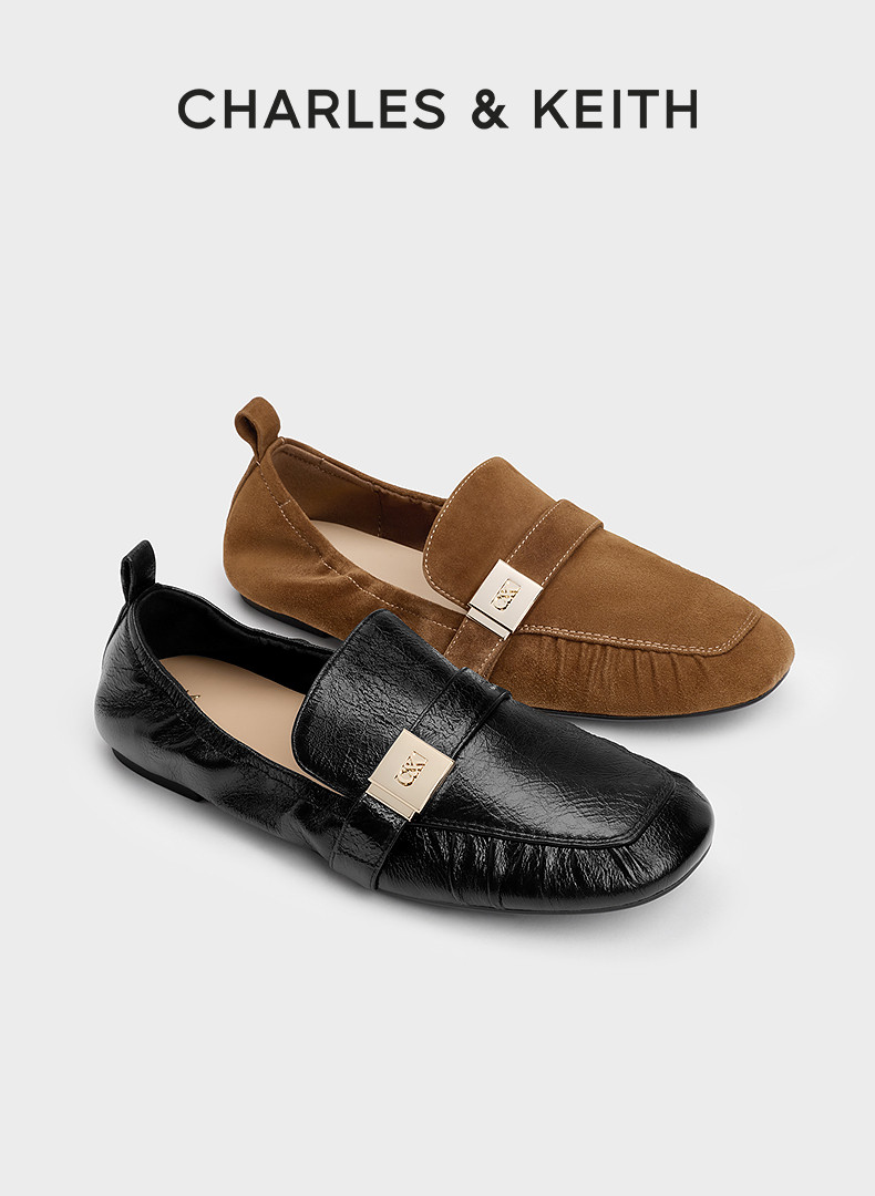 Charles&Keith25 New Autum Collection Sl1-71900021 Goatskin Metal Buckle Flats Pleated Loafers