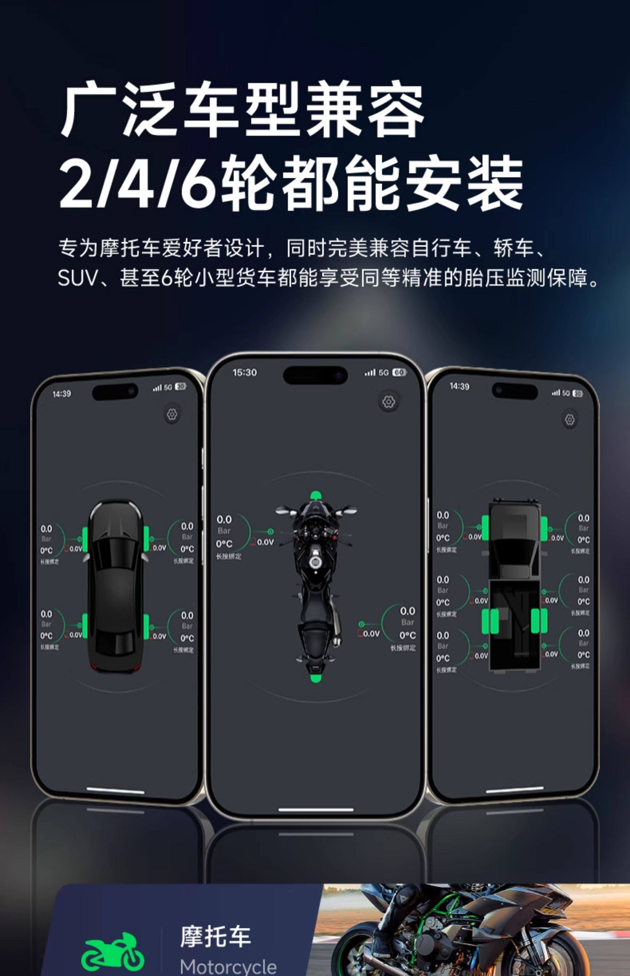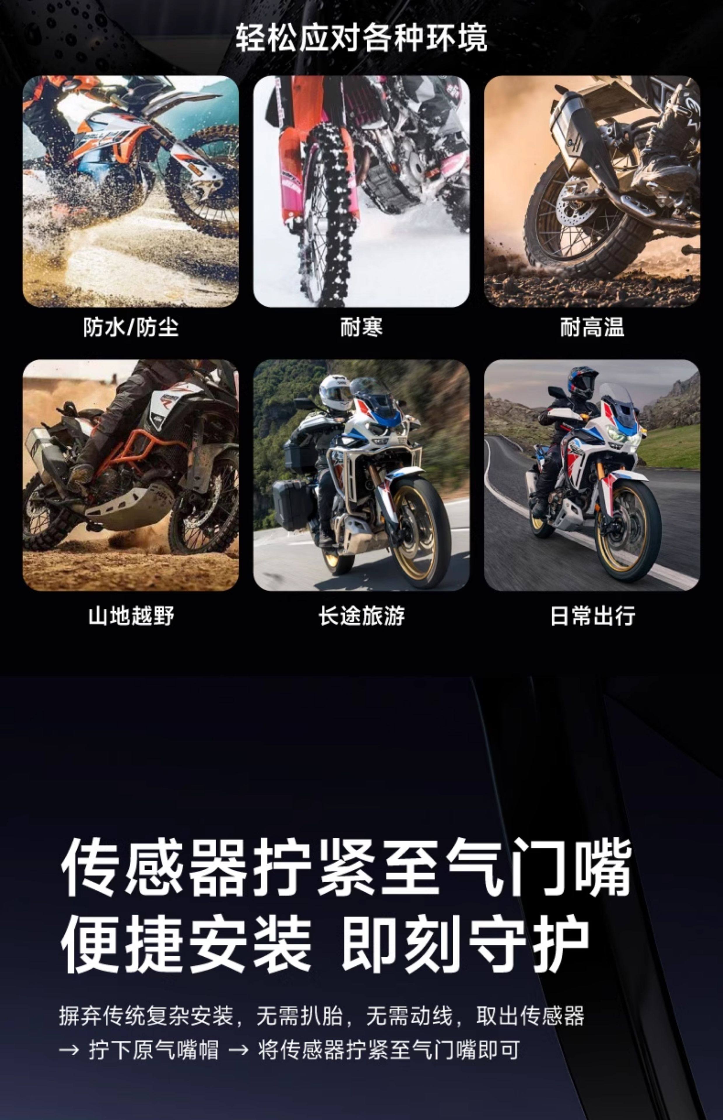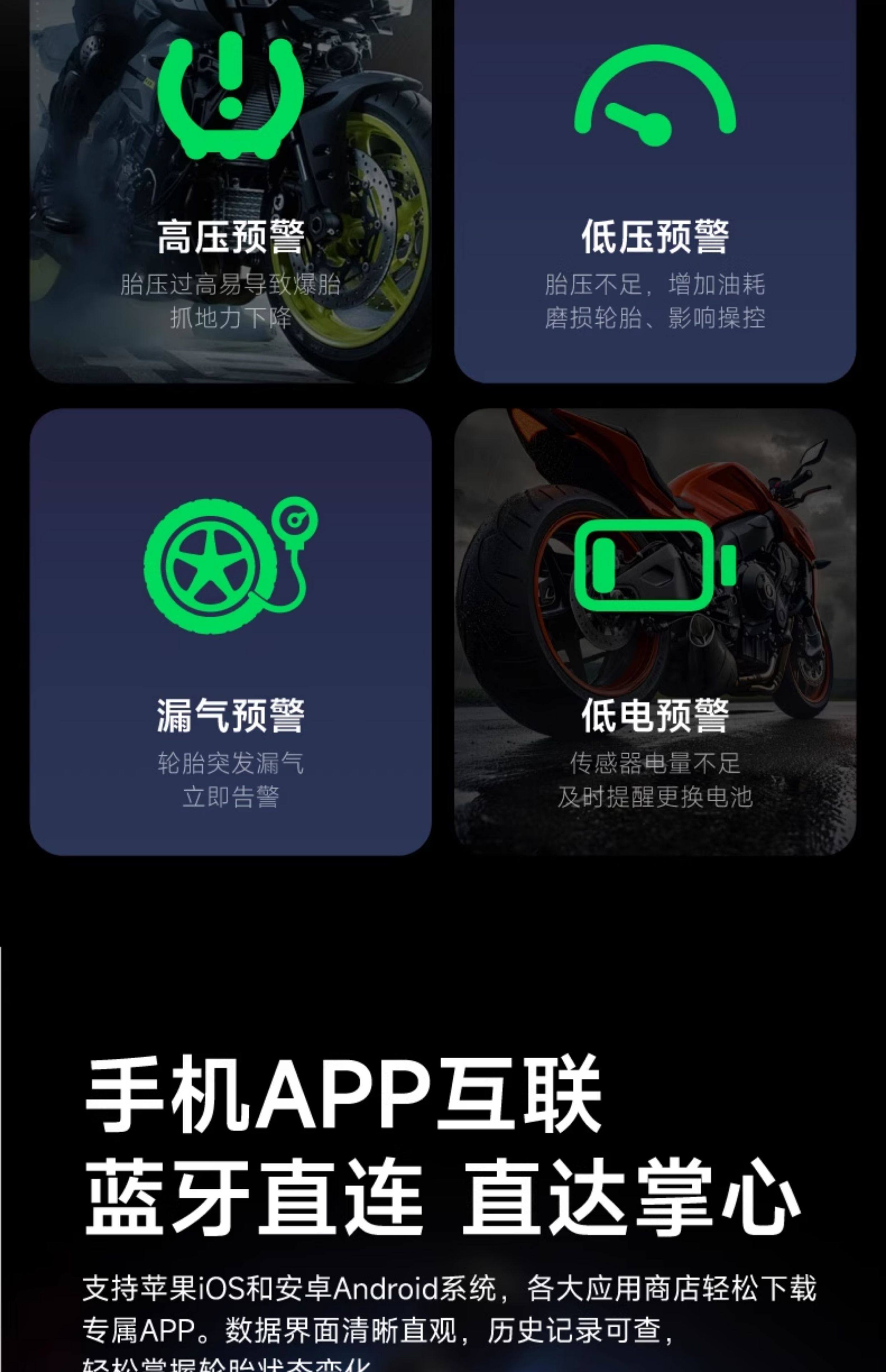 Motorcycle Tire Pressure Monitor Does Not Require Charging, Real-Time Warning for Motorcycles and Electric Vehicles, External Tire Temperature Detector