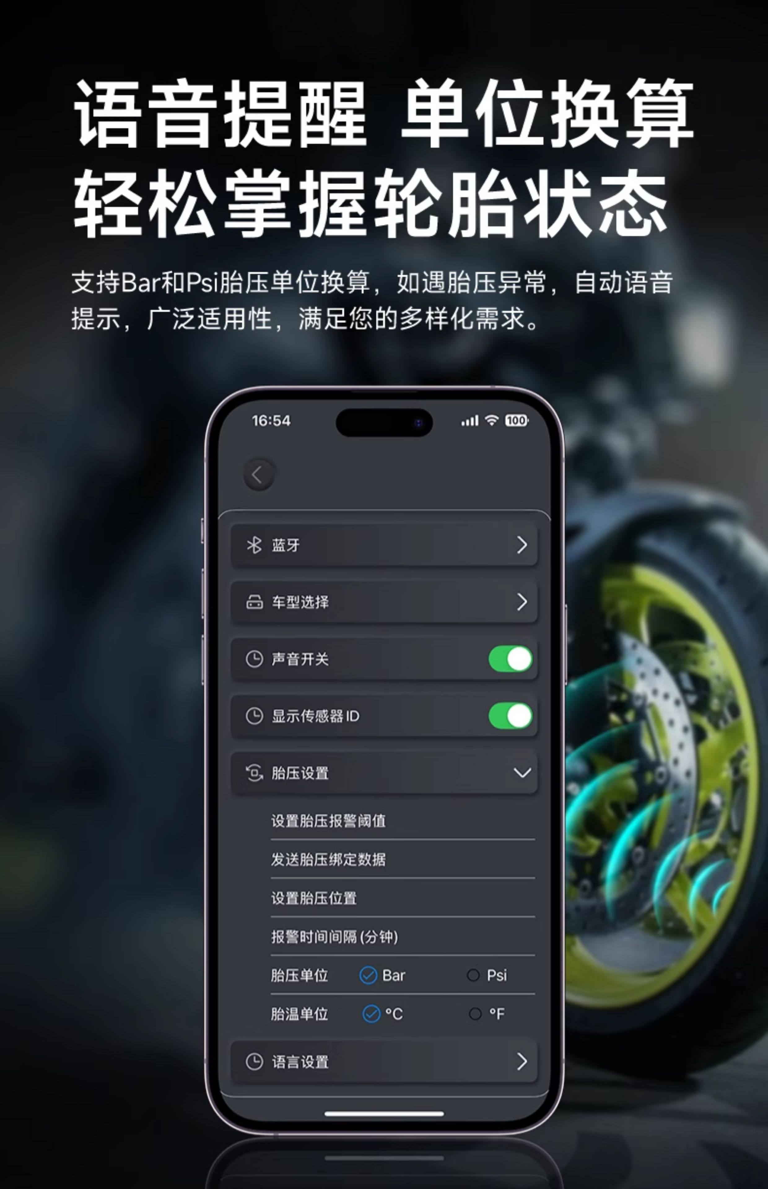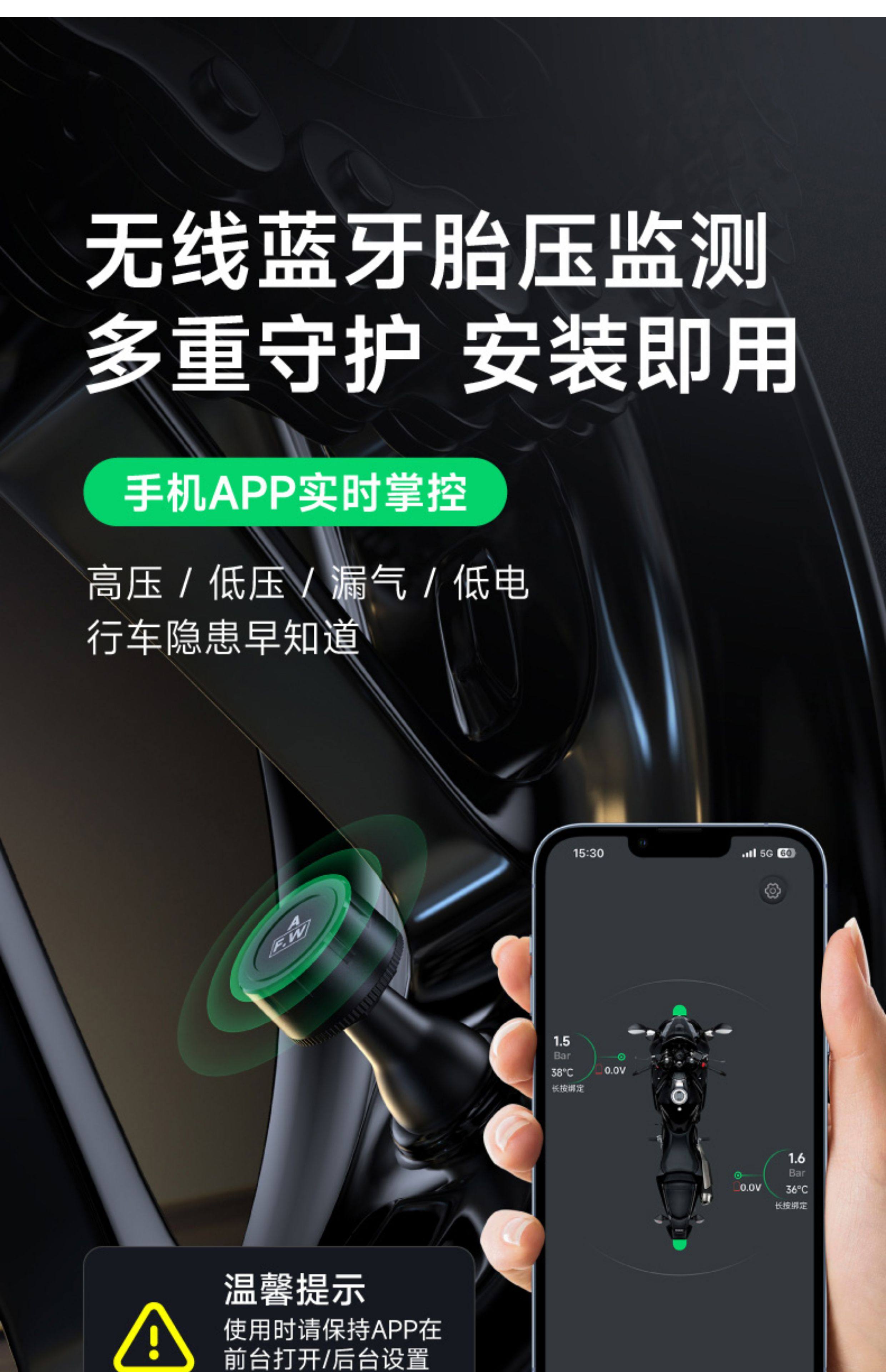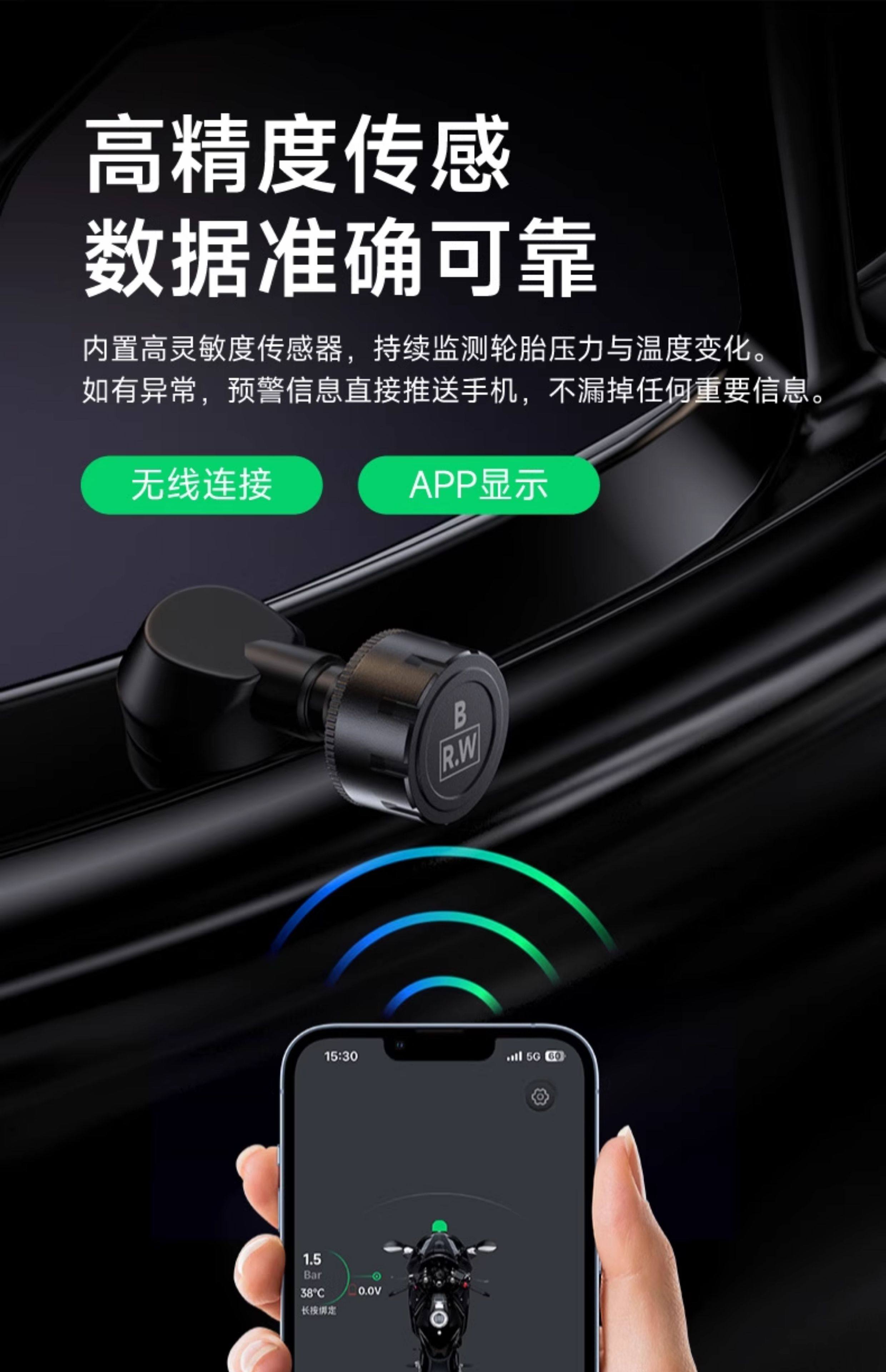 Motorcycle Tire Pressure Monitor Does Not Require Charging, Real-Time Warning for Motorcycles and Electric Vehicles, External Tire Temperature Detector