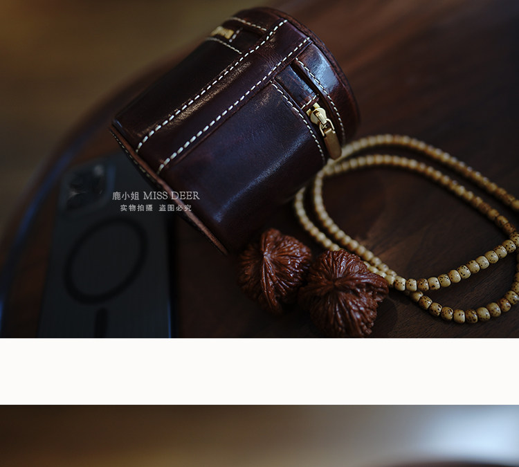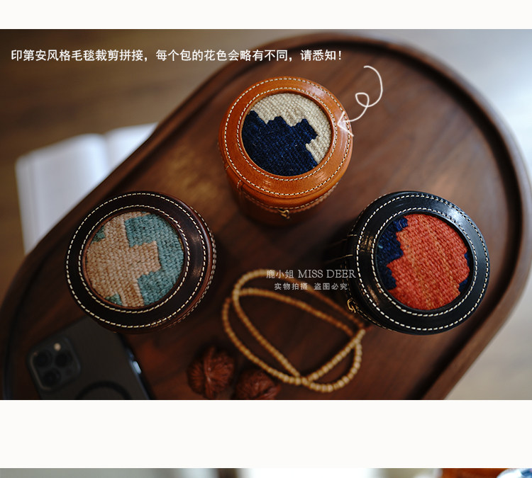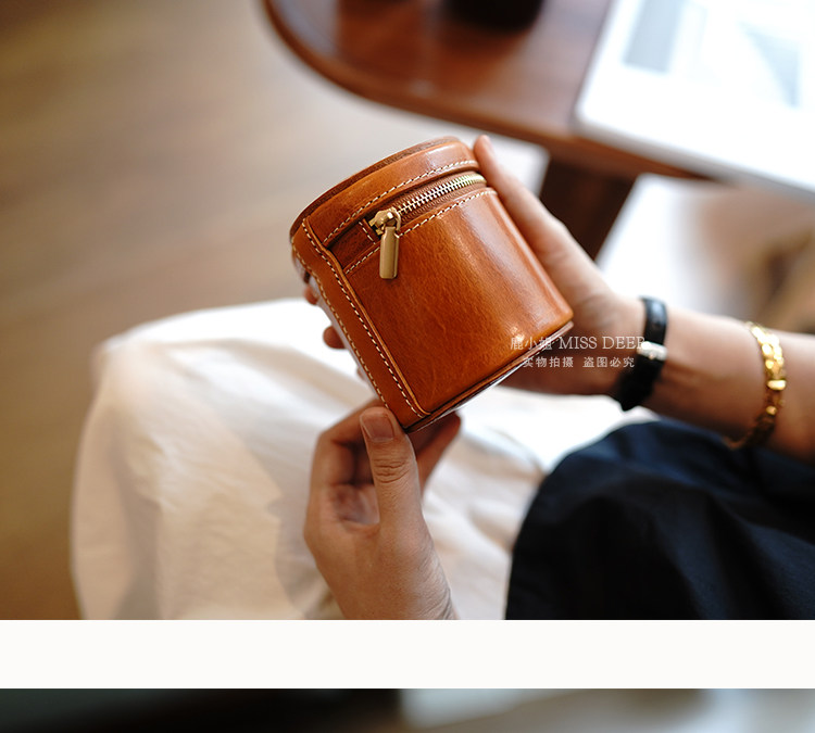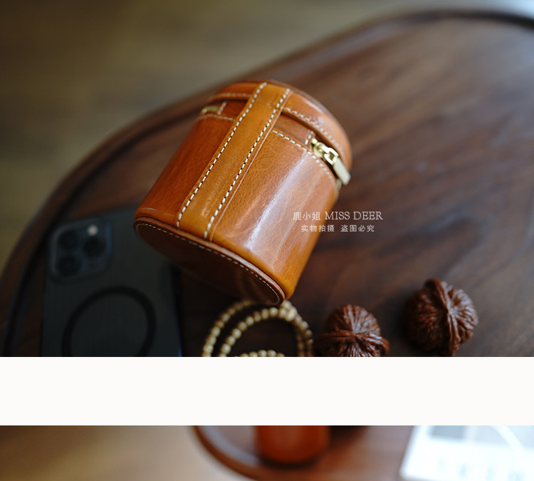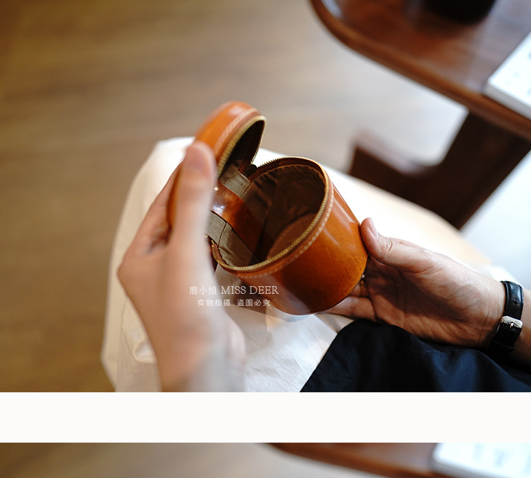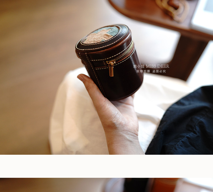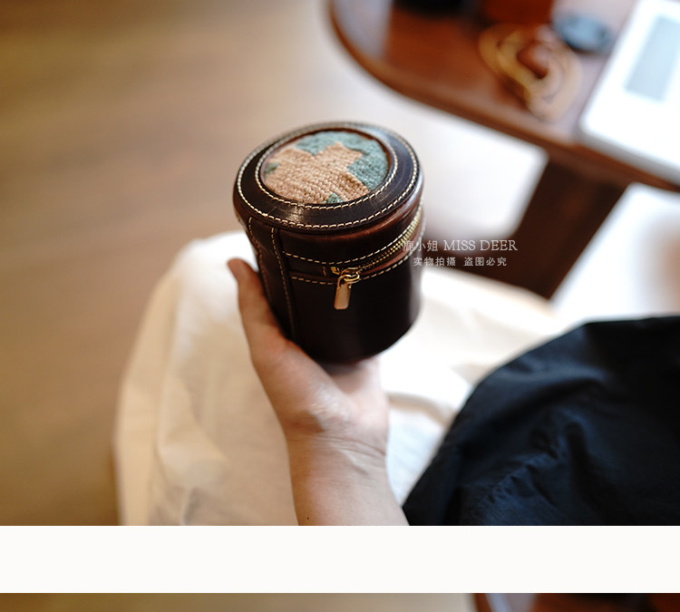 Vintage Handmade Vegetable-Tanned Leather Blanket Patchwork Jewelry Box Large Capacity Portable Genuine Leather Walnut Craft Storage Bag