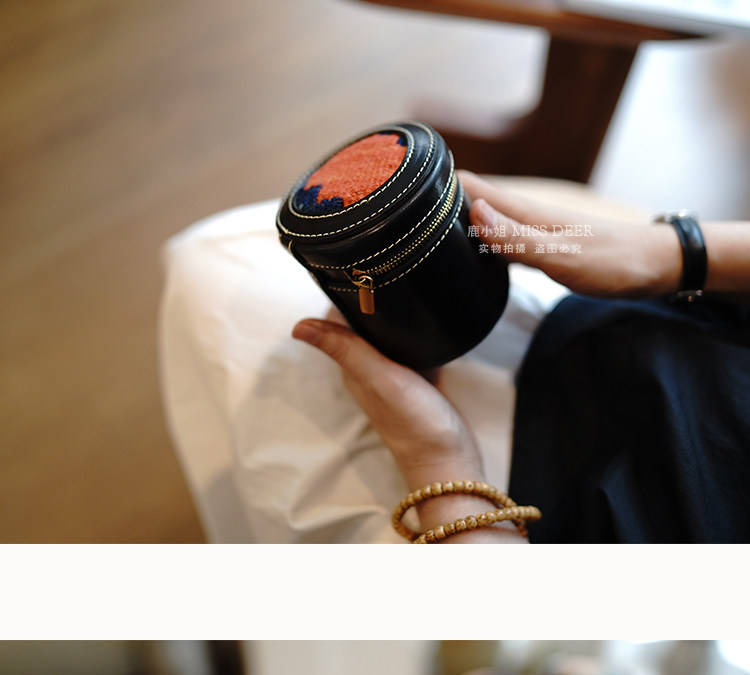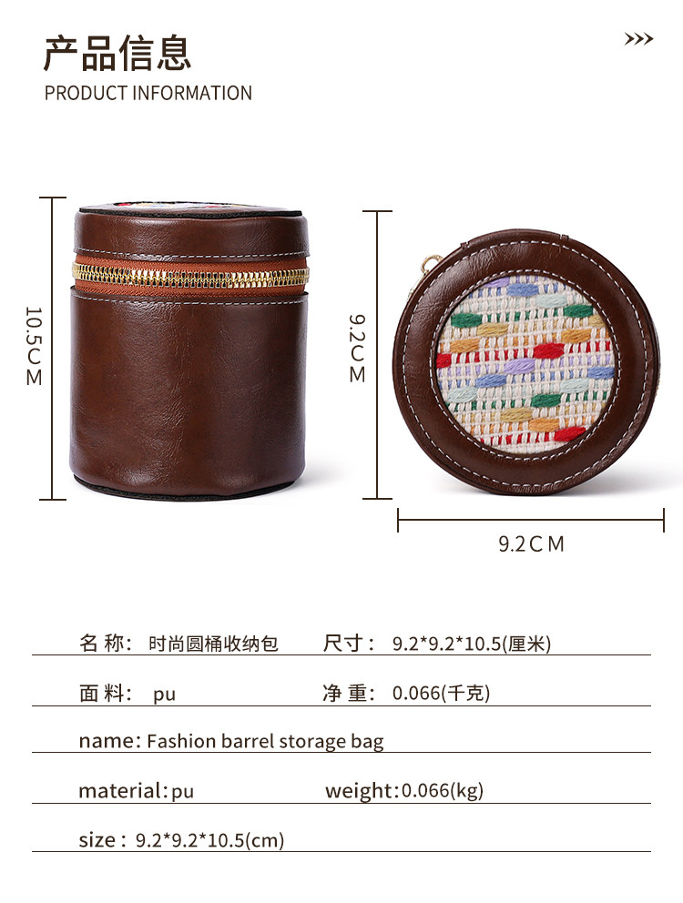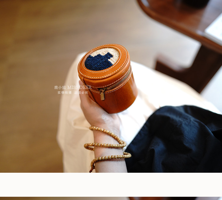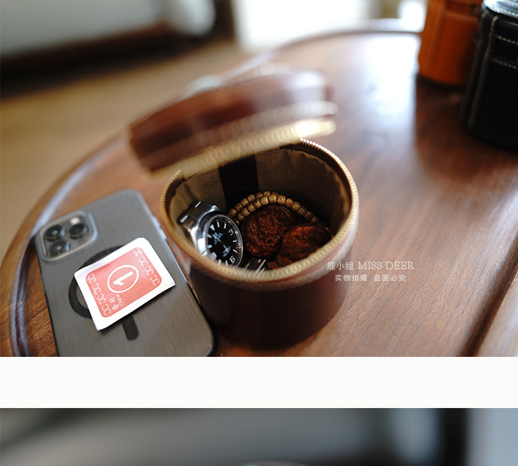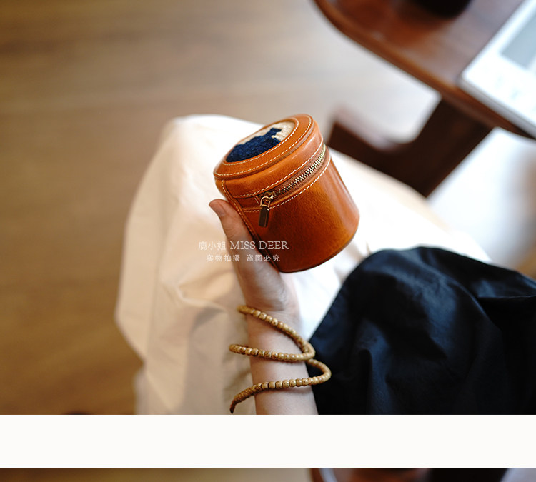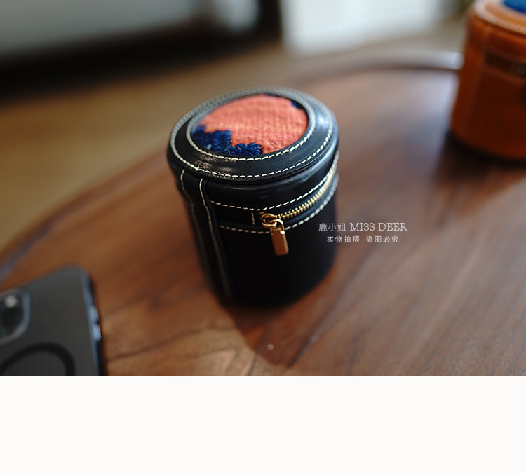 Vintage Handmade Vegetable-Tanned Leather Blanket Patchwork Jewelry Box Large Capacity Portable Genuine Leather Walnut Craft Storage Bag