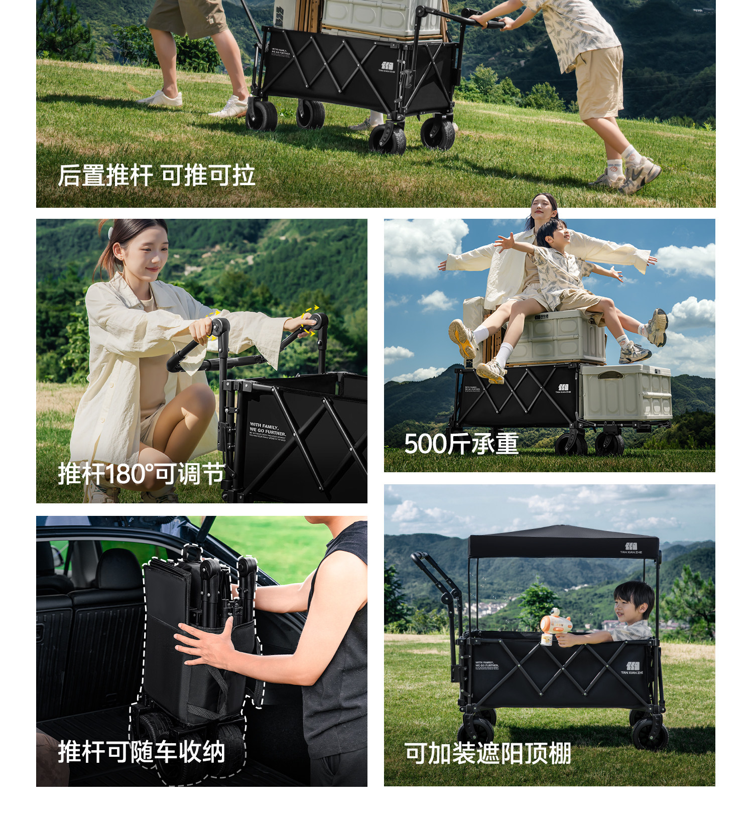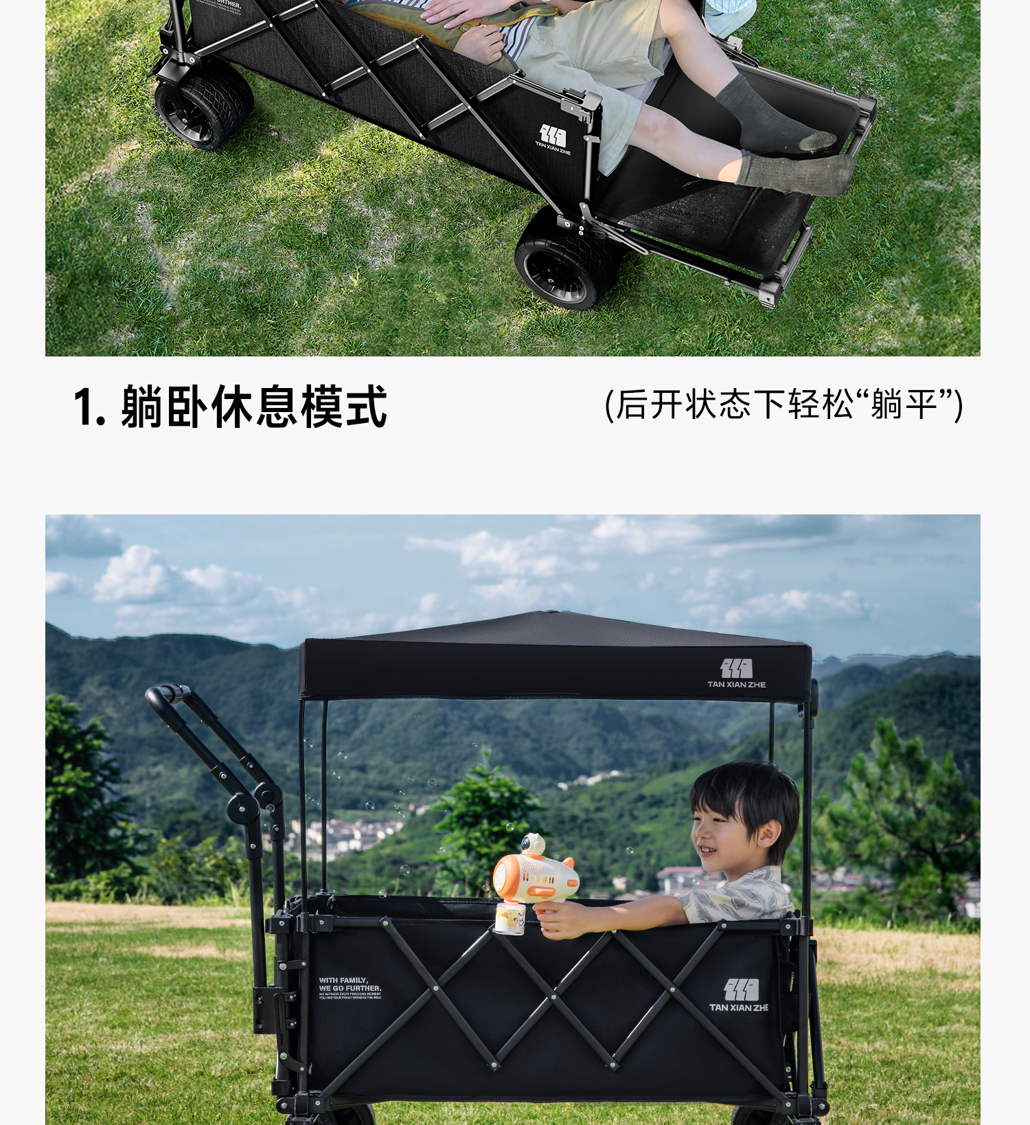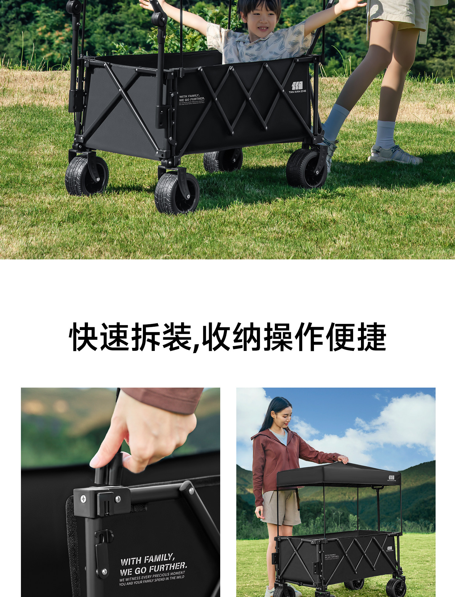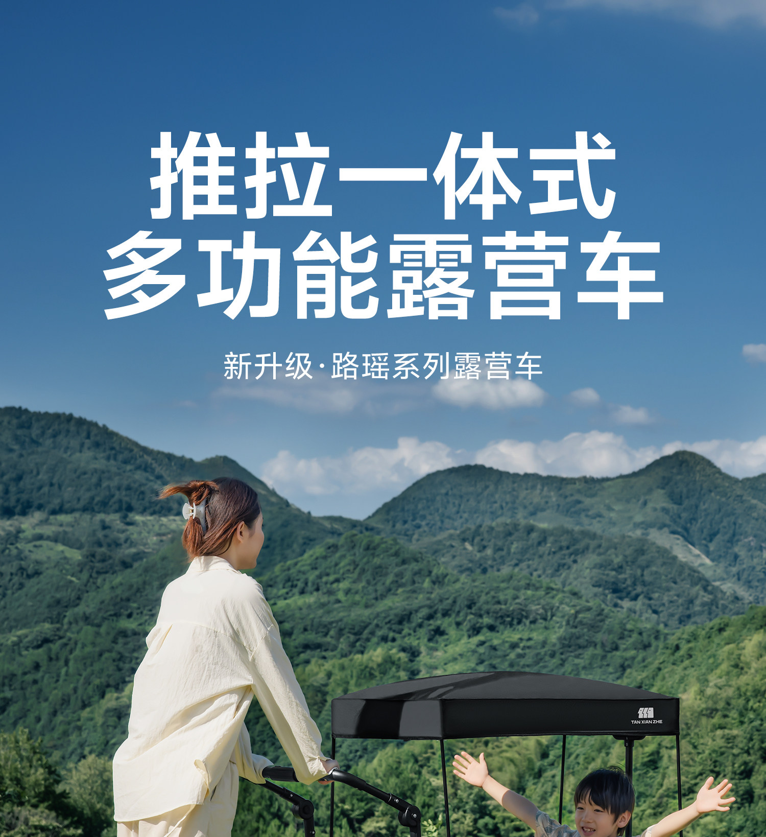 Explorer Camping Cart with Push Rod, Outdoor Foldable Children's Reclining Picnic Camping Sunshade Hand-Pushed Camp Trailer
