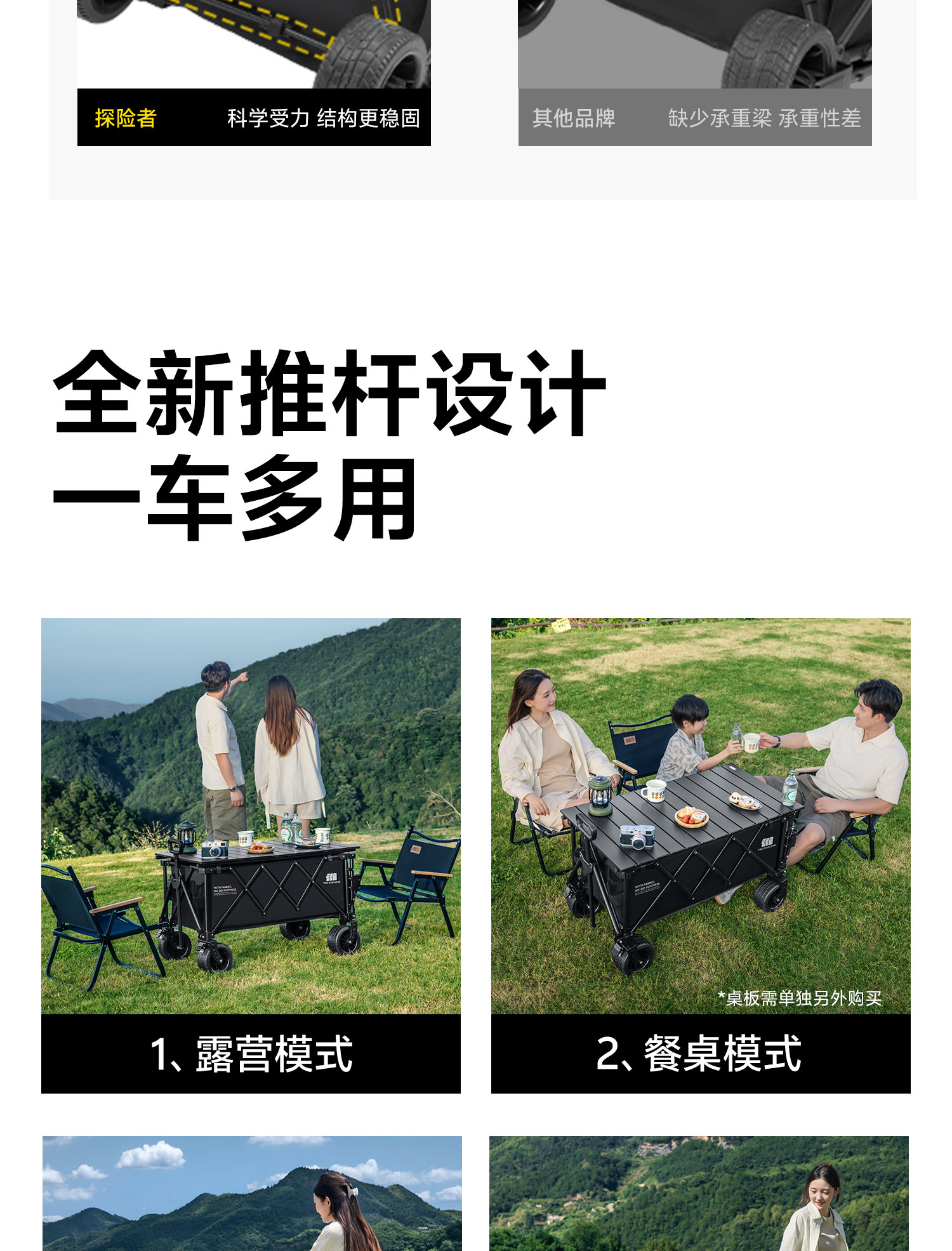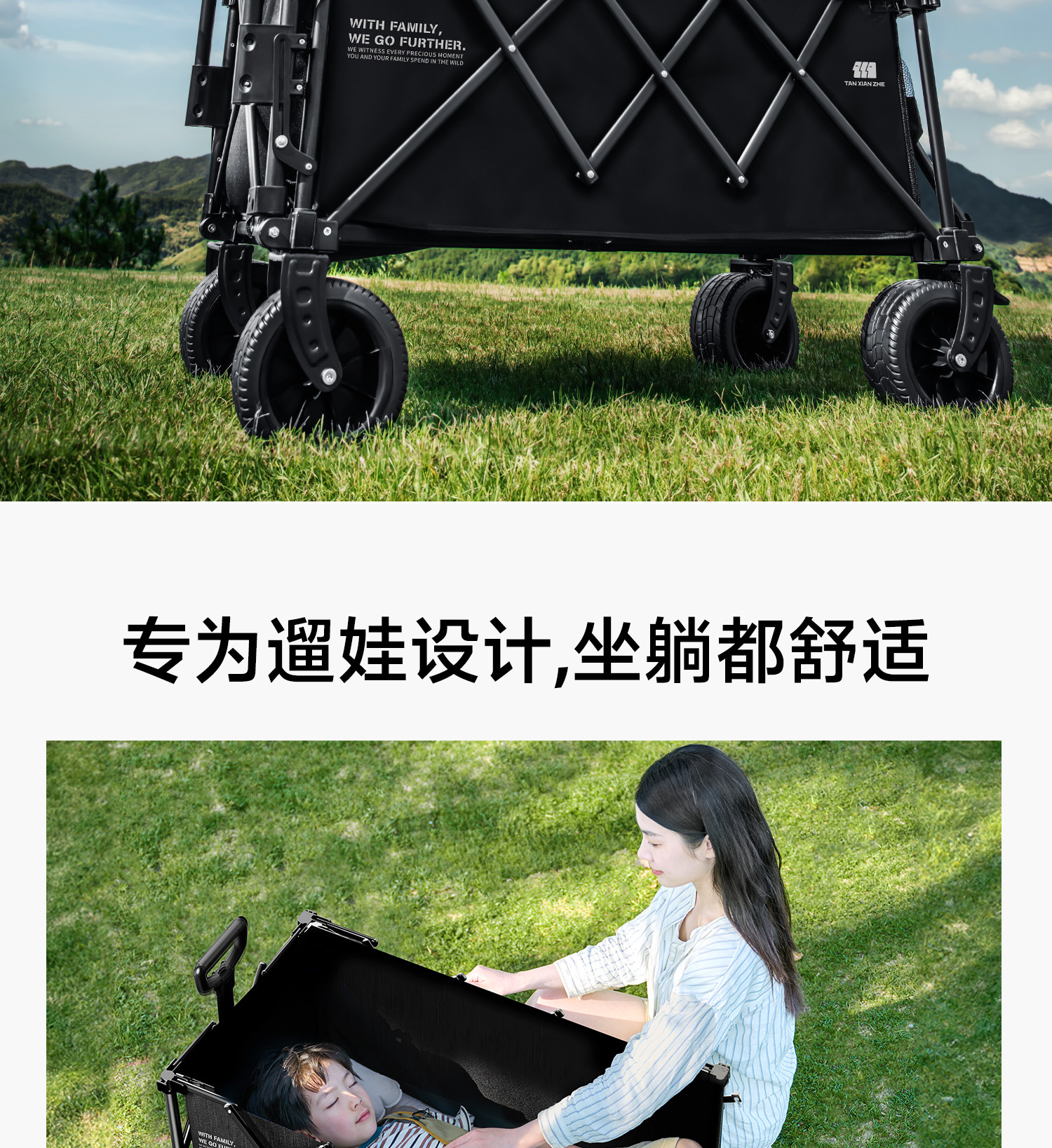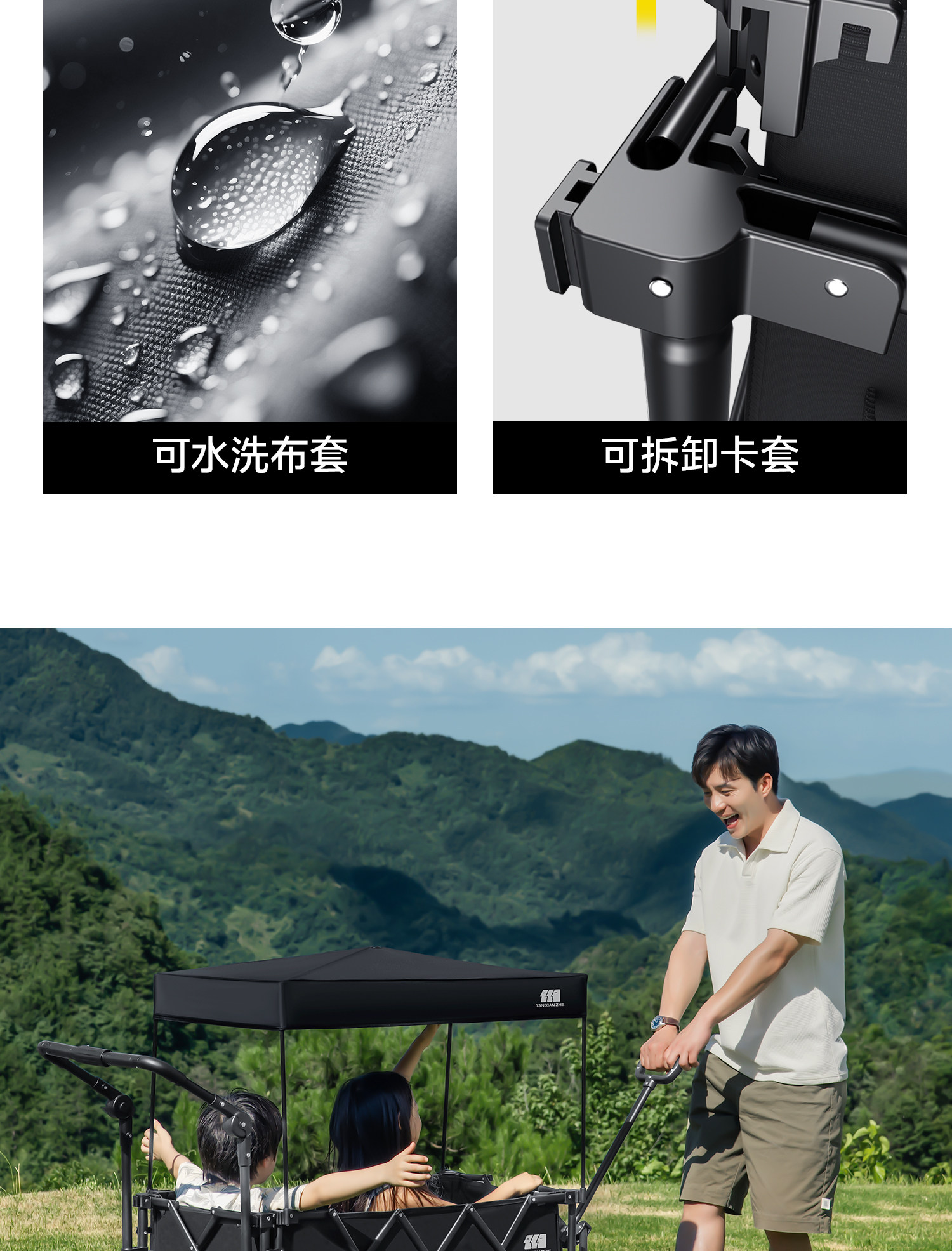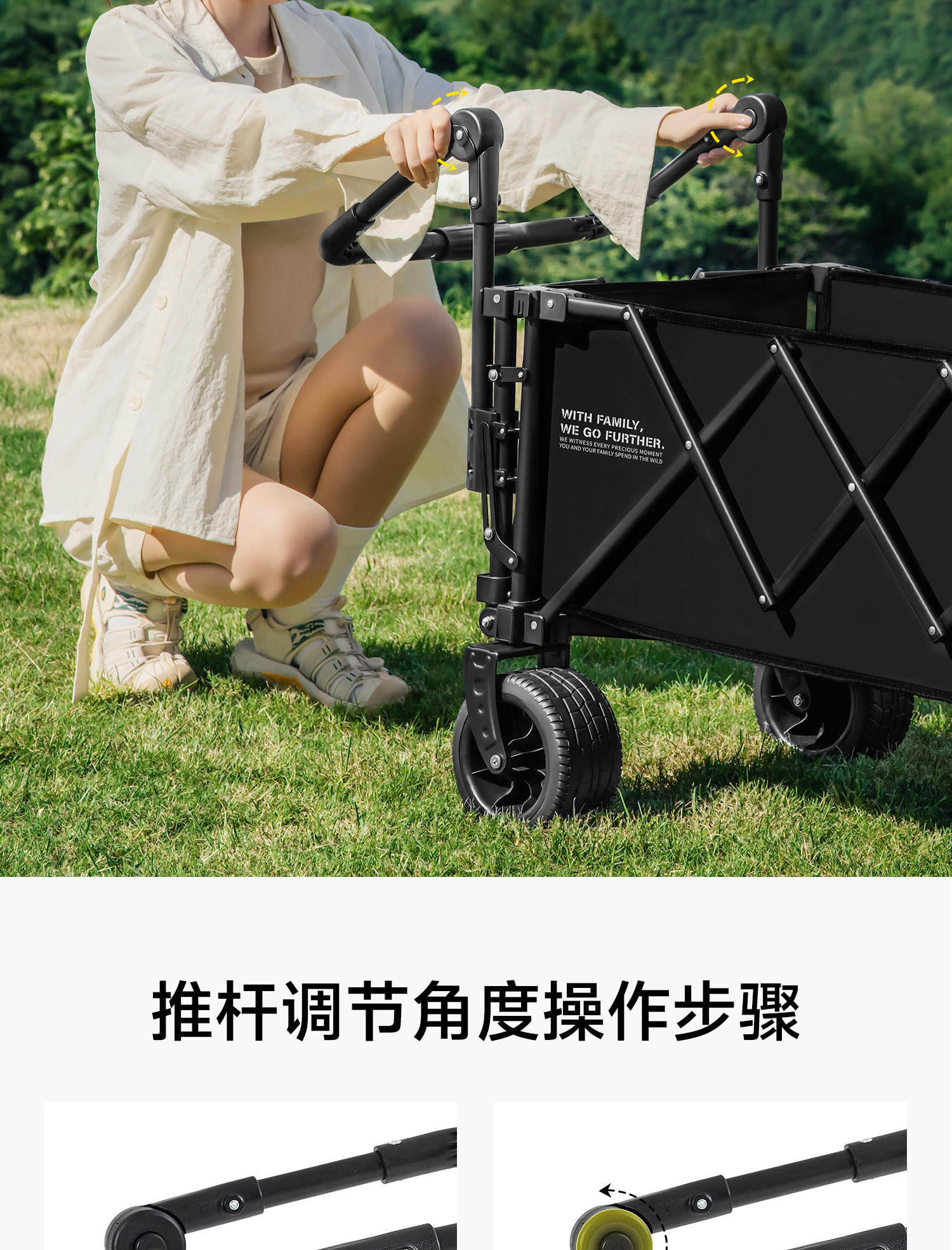 Explorer Camping Cart with Push Rod, Outdoor Foldable Children's Reclining Picnic Camping Sunshade Hand-Pushed Camp Trailer