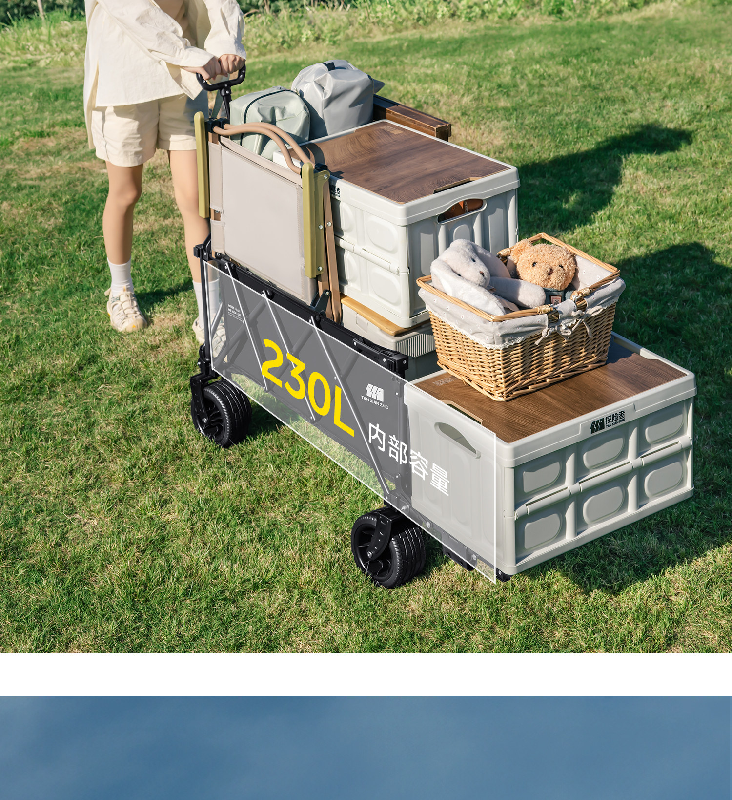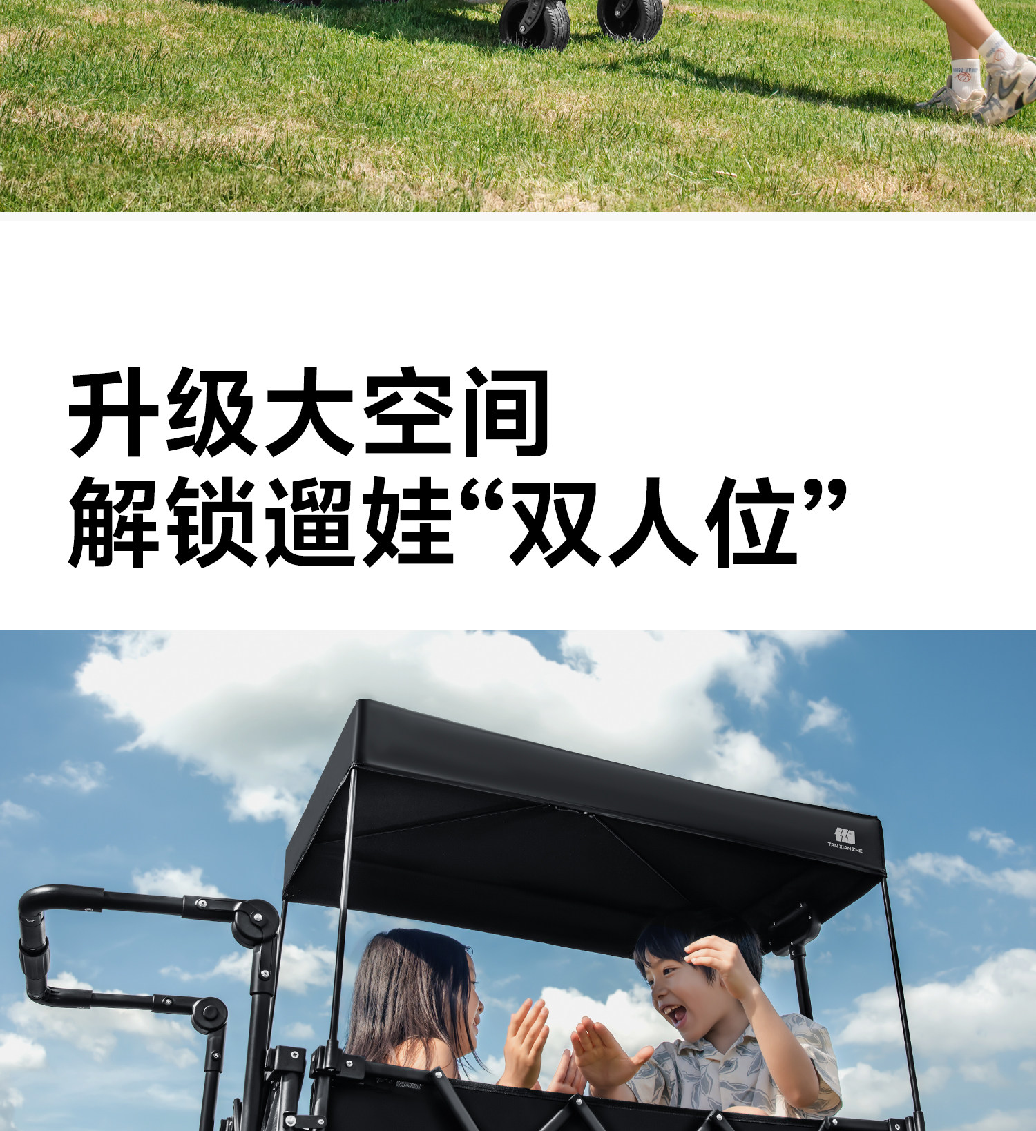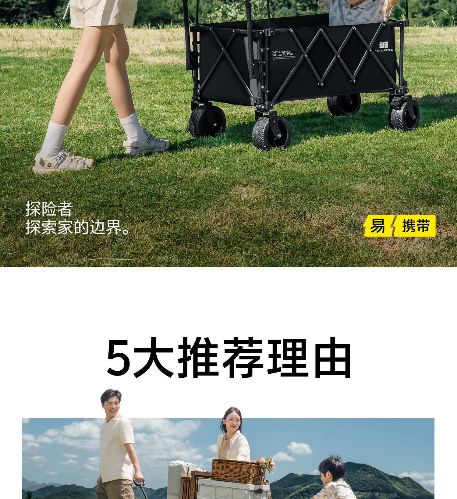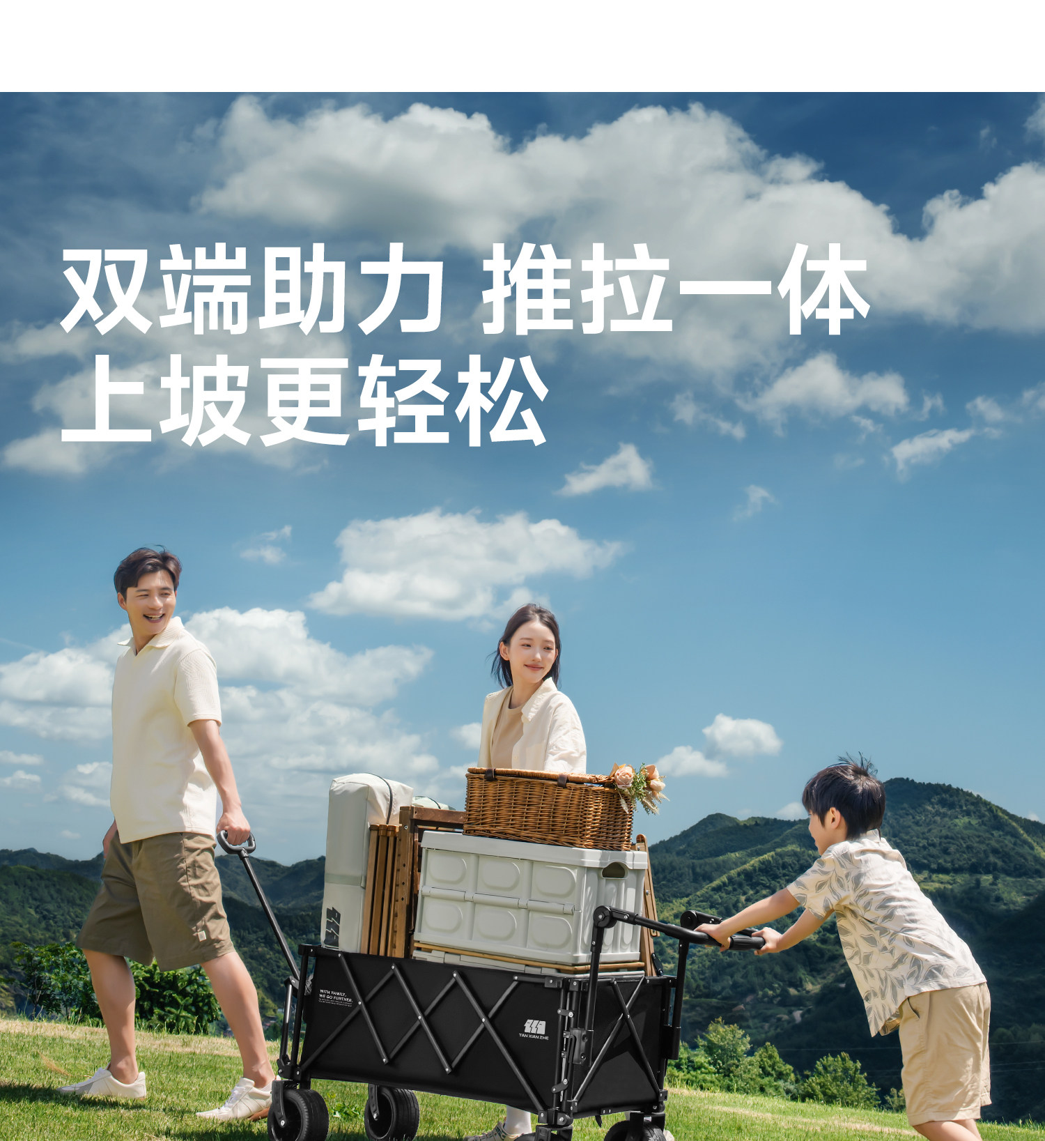 Explorer Camping Cart with Push Rod, Outdoor Foldable Children's Reclining Picnic Camping Sunshade Hand-Pushed Camp Trailer